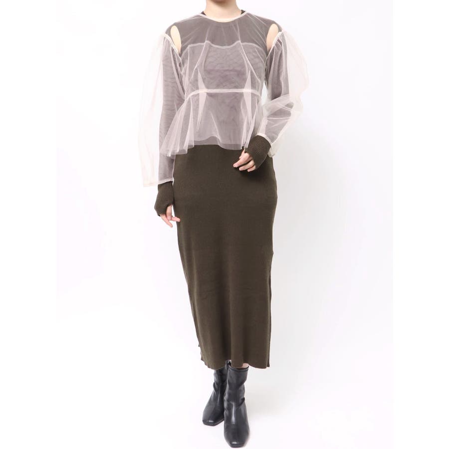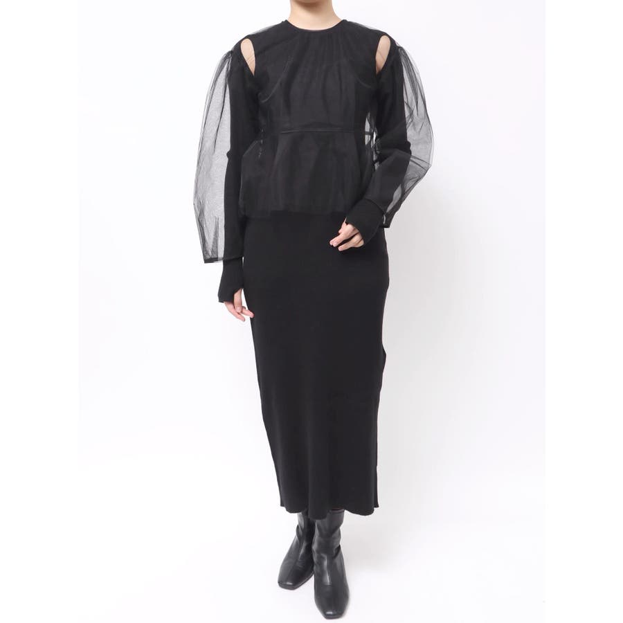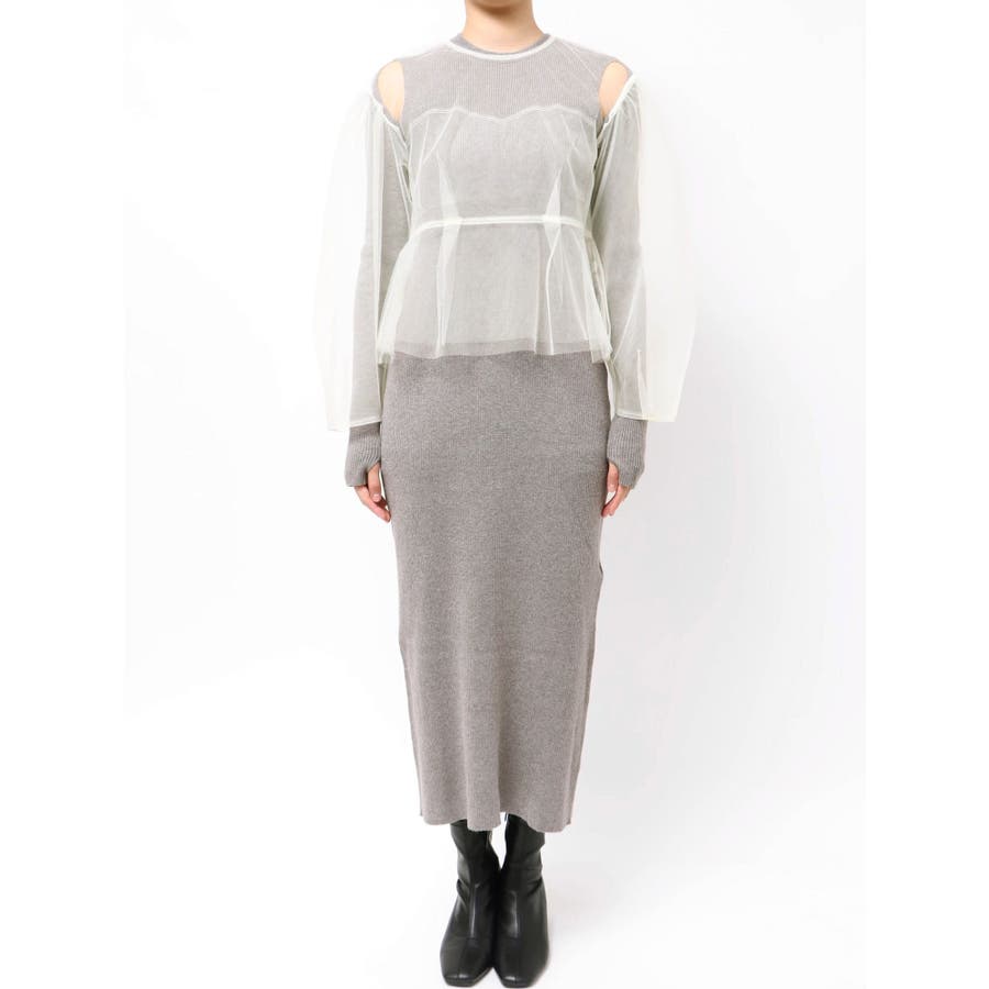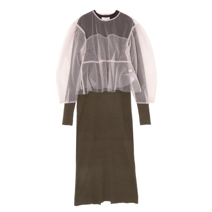 【OUNNOUN】チュールブラウスレイヤードワンピ