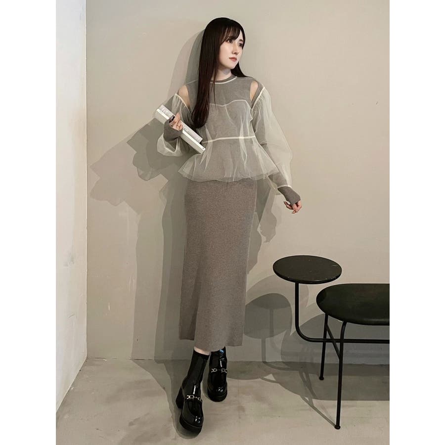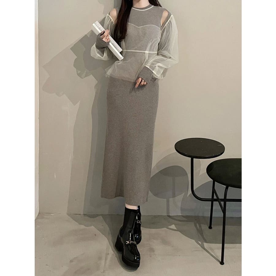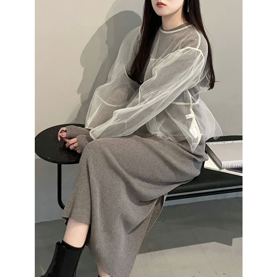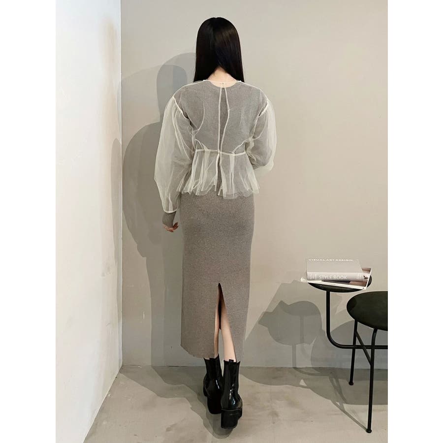 【OUNNOUN】チュールブラウスレイヤードワンピ
