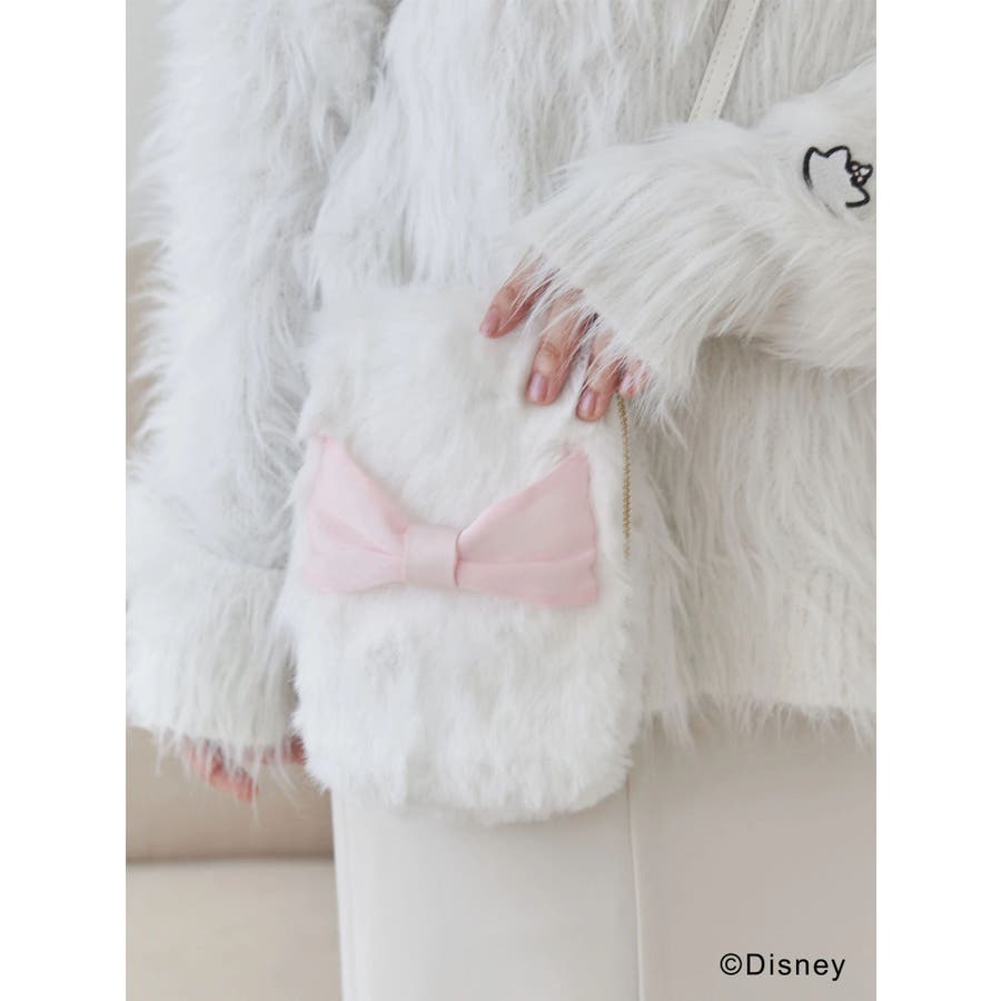 ディズニー・アニメーション映画『おしゃれキャット』の子猫、マリーをモチーフにデザインされた、ふわふわファー×リボンが可愛いショルダーバッグ。 思わず抱きしめたくなるようなやわらかいエコファー素材に、マリーをイメージしたピンクリボンをあしらったデザインがポイントです。 背面にはマリーのエンボスデザイン入りで、さりげなく大人可愛いポイントも。 スマホや小物を入れるのにちょうどいいサイズ感で、コーデにsweetなアクセントをプラスしてくれます。 中にはカードポケットと内ポケットがあり、背面にもスマホが入れられるポケットもあり、ショルダーストラップはサイズ調整可能で、機能性も抜群。 冬のコーデをふわっと可愛く仕上げてくれる、特別感たっぷりのアイテムです。