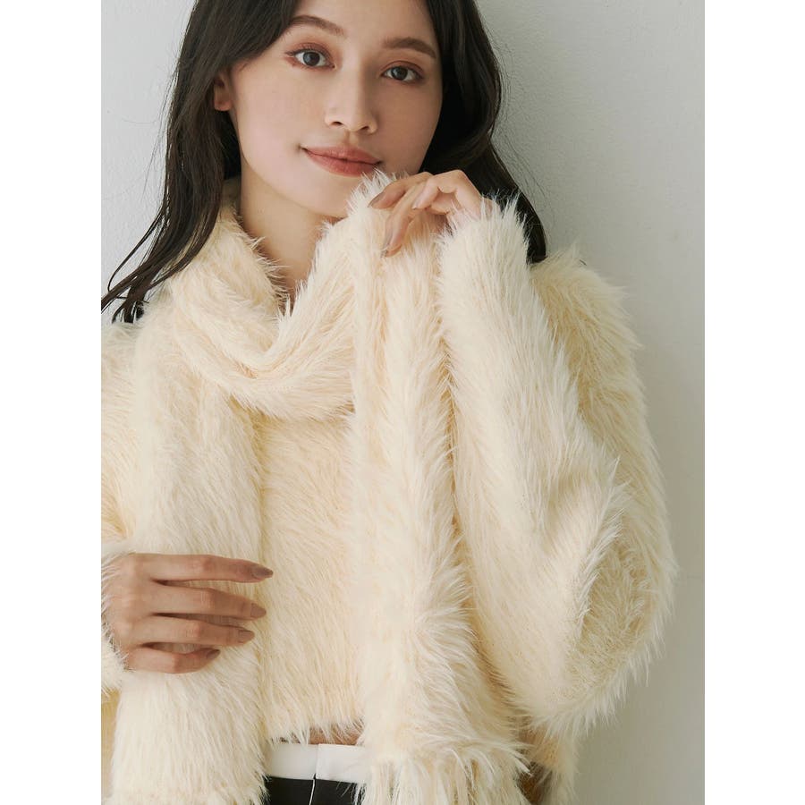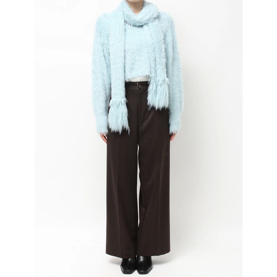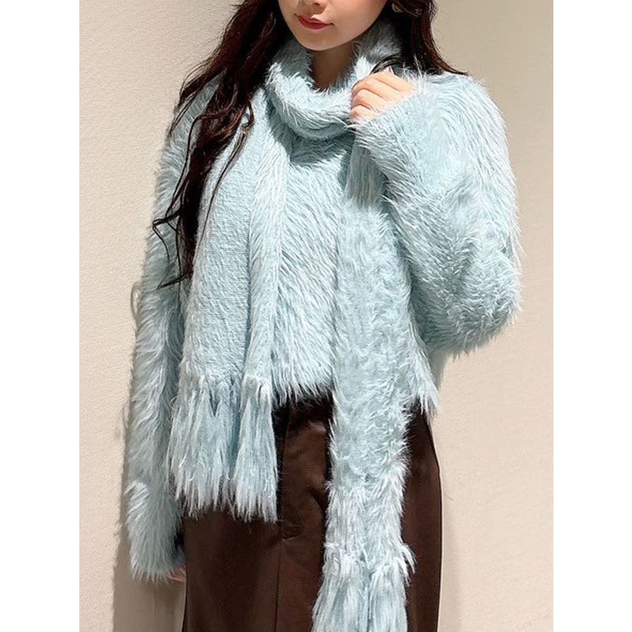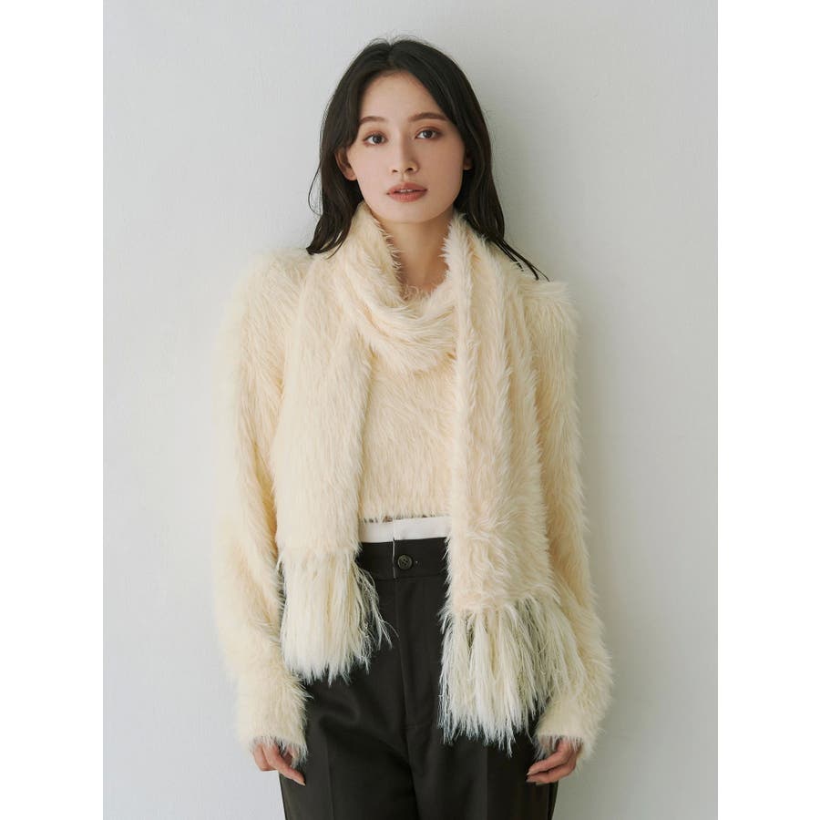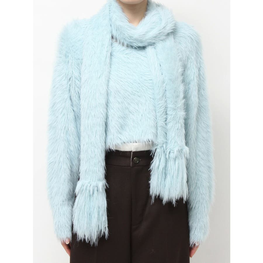 ロングシャギーのクロップドニットとマフラーがセットになったアイテム。 デコルテがスッキリと見えるVネックですが、同素材のマフラーを巻くことで首元の肌見せを調整することができます。 トレンドキーワードのマフラーは身に着けるのはもちろん、手に持つだけてもトレンドスタイリングに◎ ▼スタイリング パンツ合わせでトレンドの合わせや、ナローシルエットのセミフレアスカートとの相性も抜群。 ショートパンツや、フロッキーフレアスカートなど、着回し力のあるニットです。 ※着用画像は全てサンプルです。※詳細画像が正しい仕様となります。 ※着用画像はフラッシュの加減で実際の製品と色味等が異なる場合がございますので、生地のズームアップ画像をご確認ください。※ご利用の端末画面の設定により実際の商品と色味が異なる場合がございます。【商品特徴】透け感:なし伸縮性:あり生地の厚さ:普通サイズ感:ゆったり裏地:なしポケット:なし