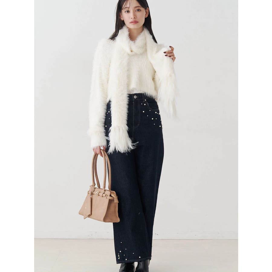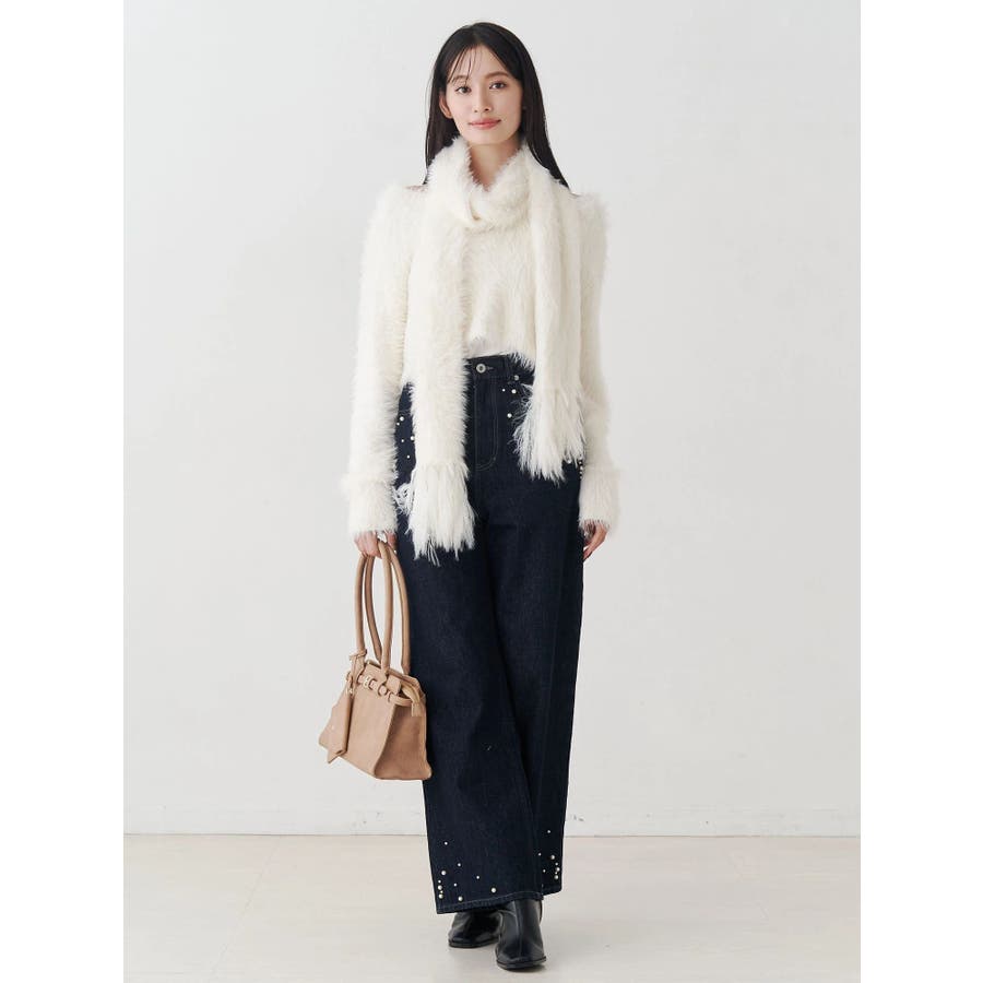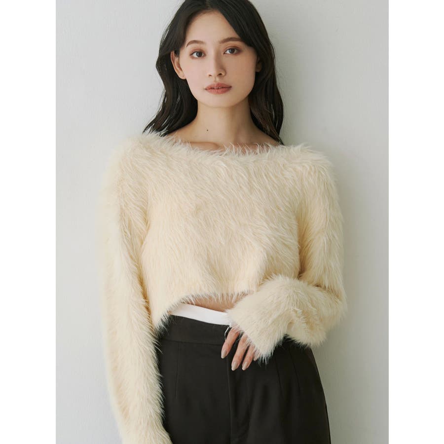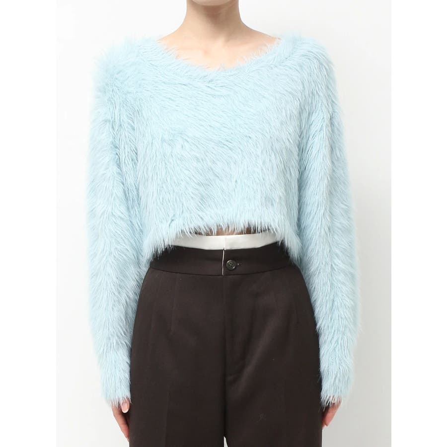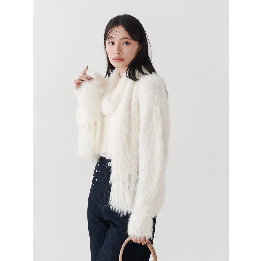 ロングシャギーのクロップドニットとマフラーがセットになったアイテム。 デコルテがスッキリと見えるVネックですが、同素材のマフラーを巻くことで首元の肌見せを調整することができます。 トレンドキーワードのマフラーは身に着けるのはもちろん、手に持つだけてもトレンドスタイリングに◎ ▼スタイリング パンツ合わせでトレンドの合わせや、ナローシルエットのセミフレアスカートとの相性も抜群。 ショートパンツや、フロッキーフレアスカートなど、着回し力のあるニットです。 ※着用画像は全てサンプルです。※詳細画像が正しい仕様となります。 ※着用画像はフラッシュの加減で実際の製品と色味等が異なる場合がございますので、生地のズームアップ画像をご確認ください。※ご利用の端末画面の設定により実際の商品と色味が異なる場合がございます。【商品特徴】透け感:なし伸縮性:あり生地の厚さ:普通サイズ感:ゆったり裏地:なしポケット:なし
