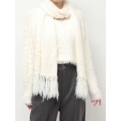 ロングシャギーのクロップドニットとマフラーがセットになったアイテム。 デコルテがスッキリと見えるVネックですが、同素材のマフラーを巻くことで首元の肌見せを調整することができます。 トレンドキーワードのマフラーは身に着けるのはもちろん、手に持つだけてもトレンドスタイリングに◎ ▼スタイリング パンツ合わせでトレンドの合わせや、ナローシルエットのセミフレアスカートとの相性も抜群。 ショートパンツや、フロッキーフレアスカートなど、着回し力のあるニットです。 ※着用画像は全てサンプルです。※詳細画像が正しい仕様となります。 ※着用画像はフラッシュの加減で実際の製品と色味等が異なる場合がございますので、生地のズームアップ画像をご確認ください。※ご利用の端末画面の設定により実際の商品と色味が異なる場合がございます。【商品特徴】透け感:なし伸縮性:あり生地の厚さ:普通サイズ感:ゆったり裏地:なしポケット:なし