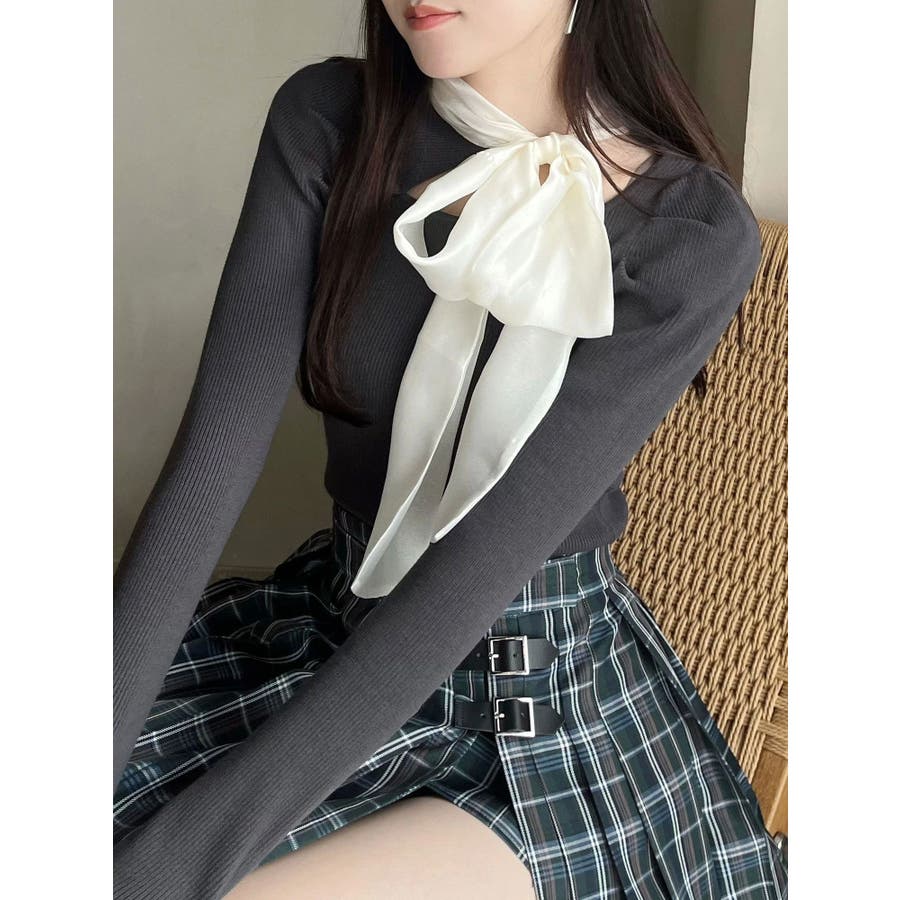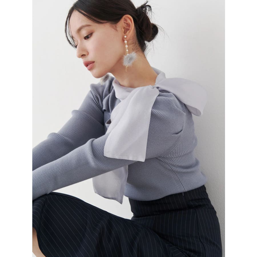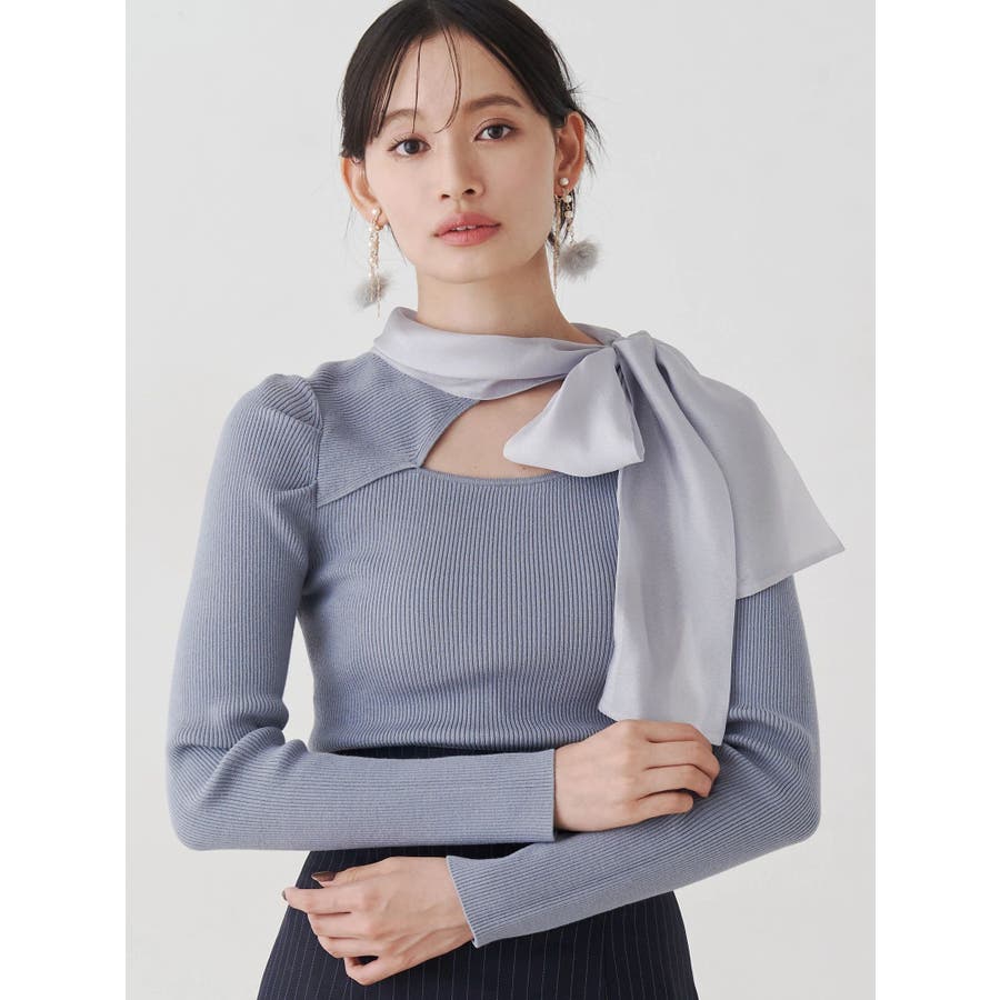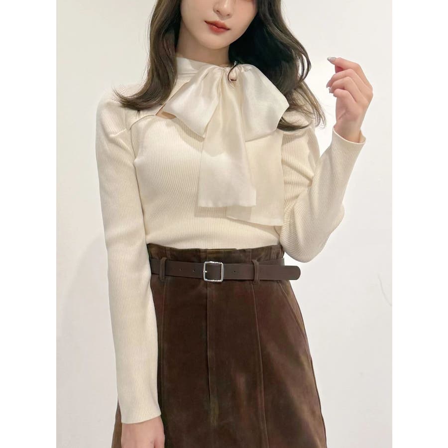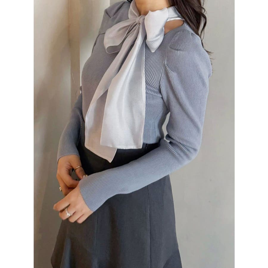 異素材リボンカットアウトニット