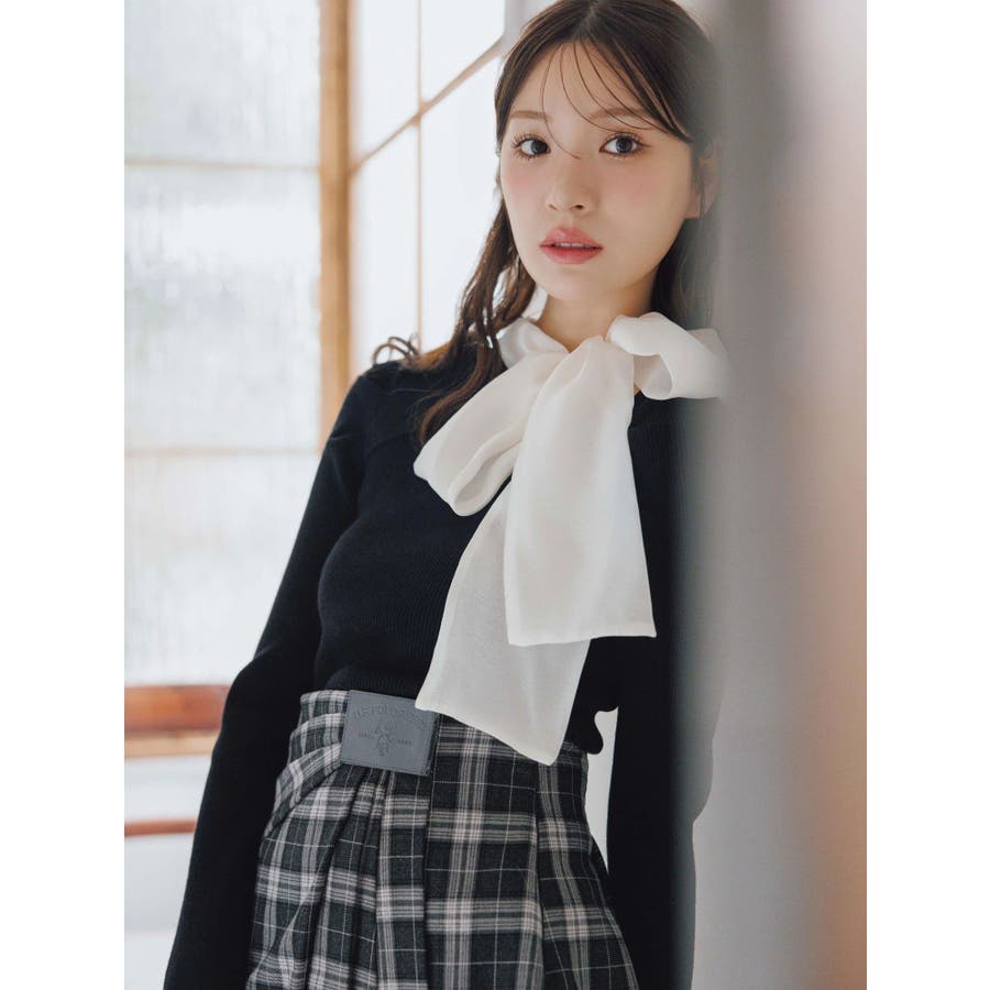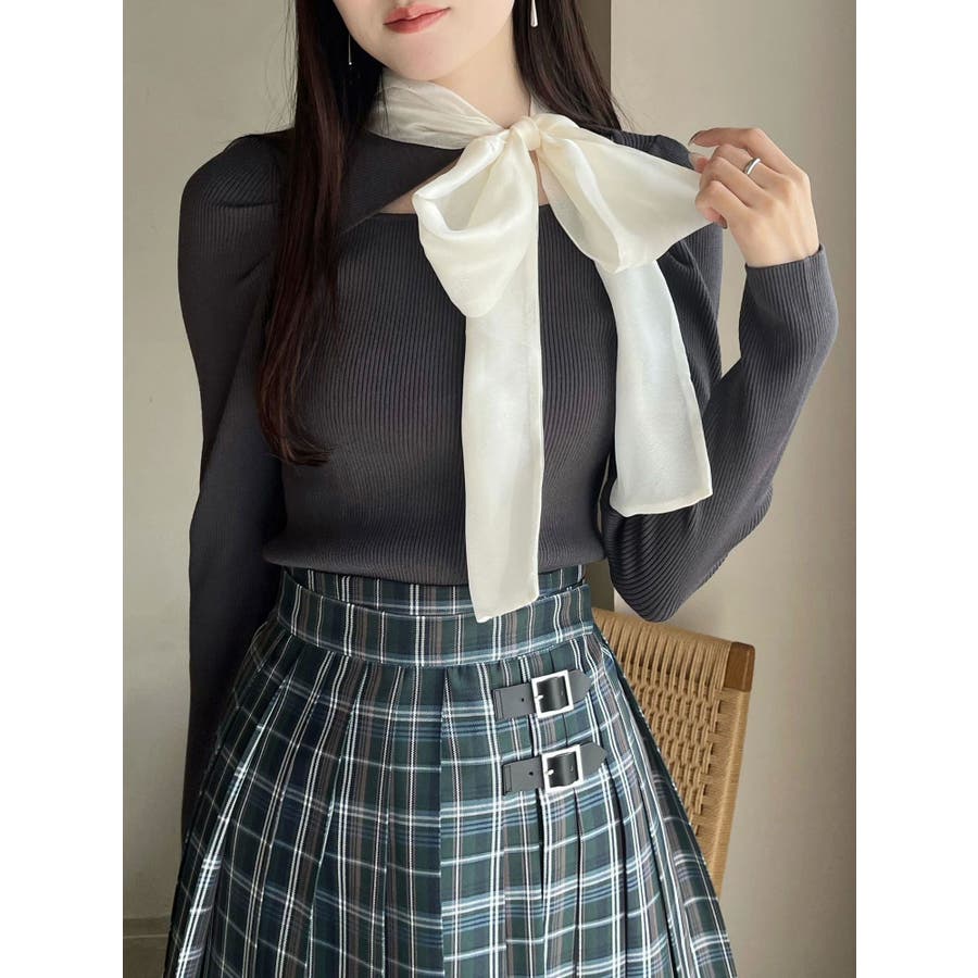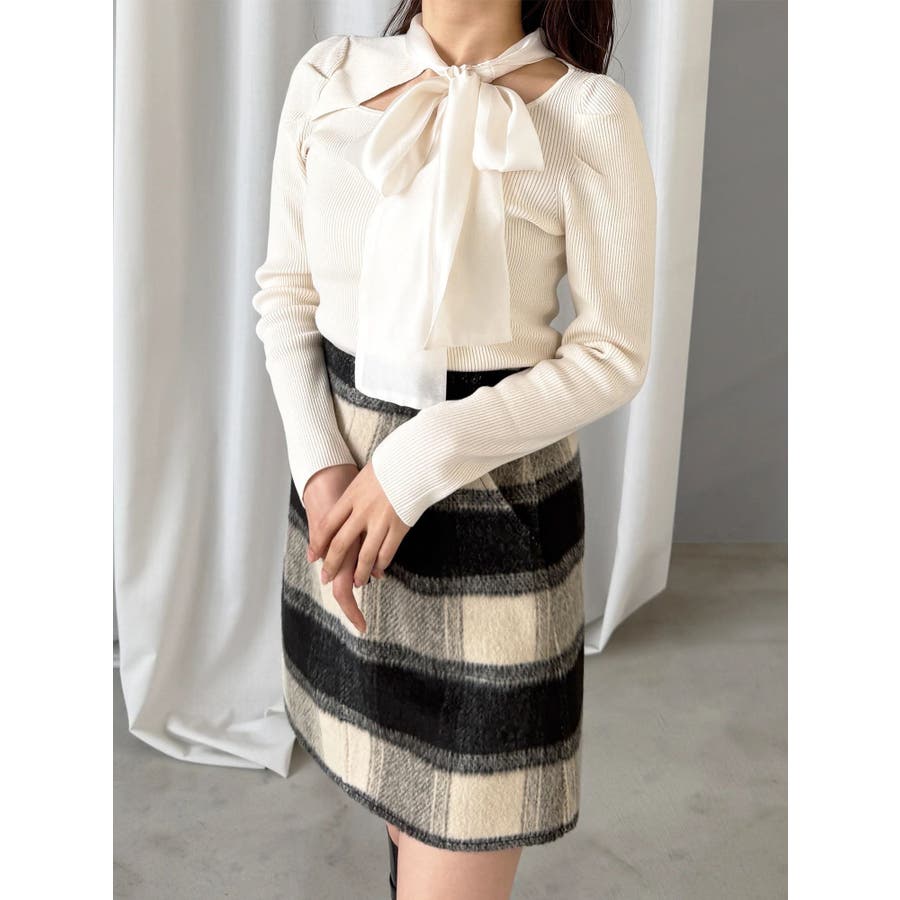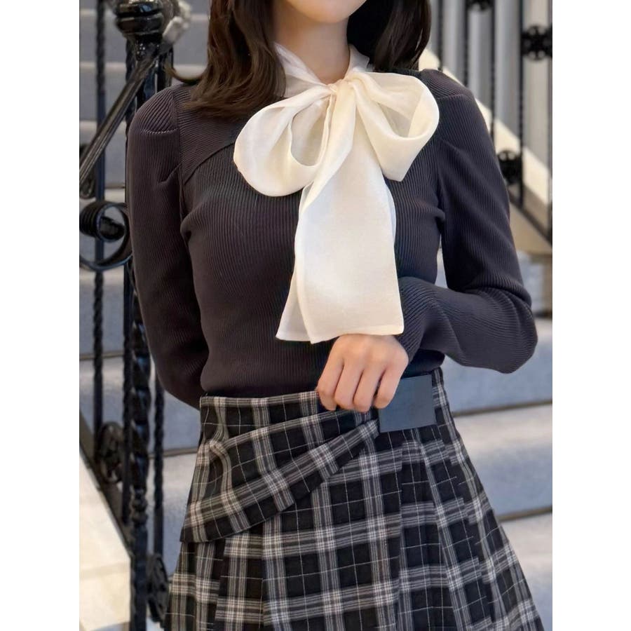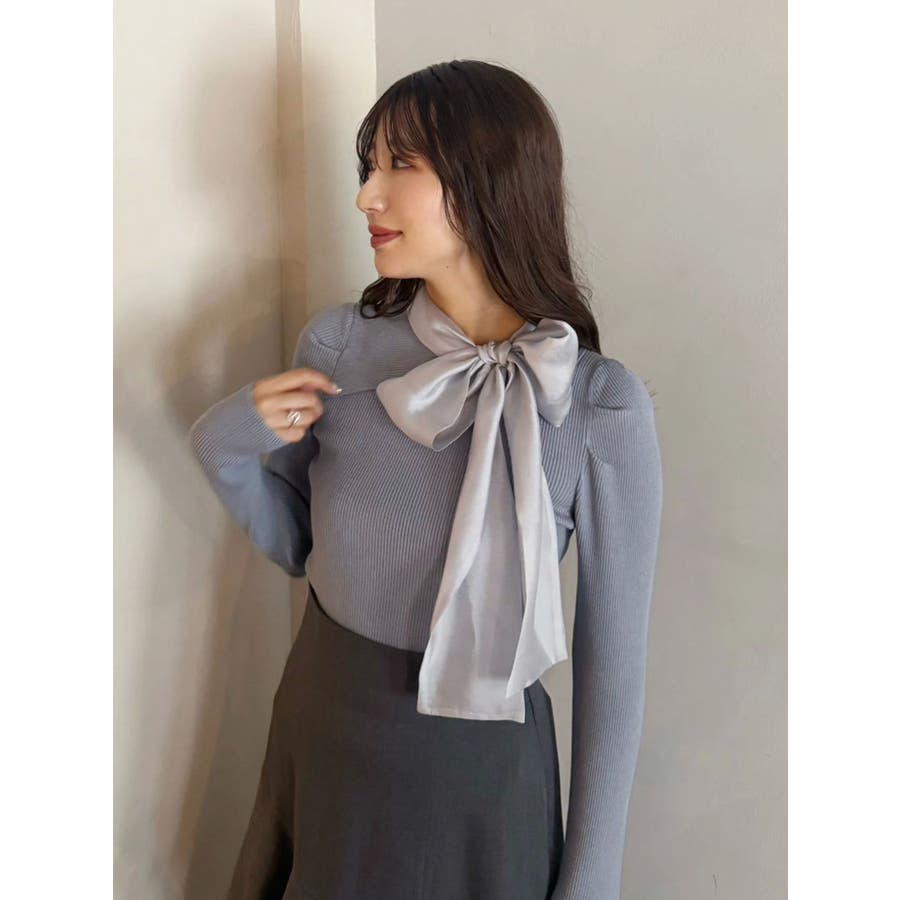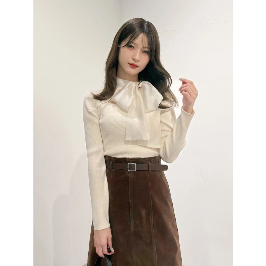 異素材リボンカットアウトニット