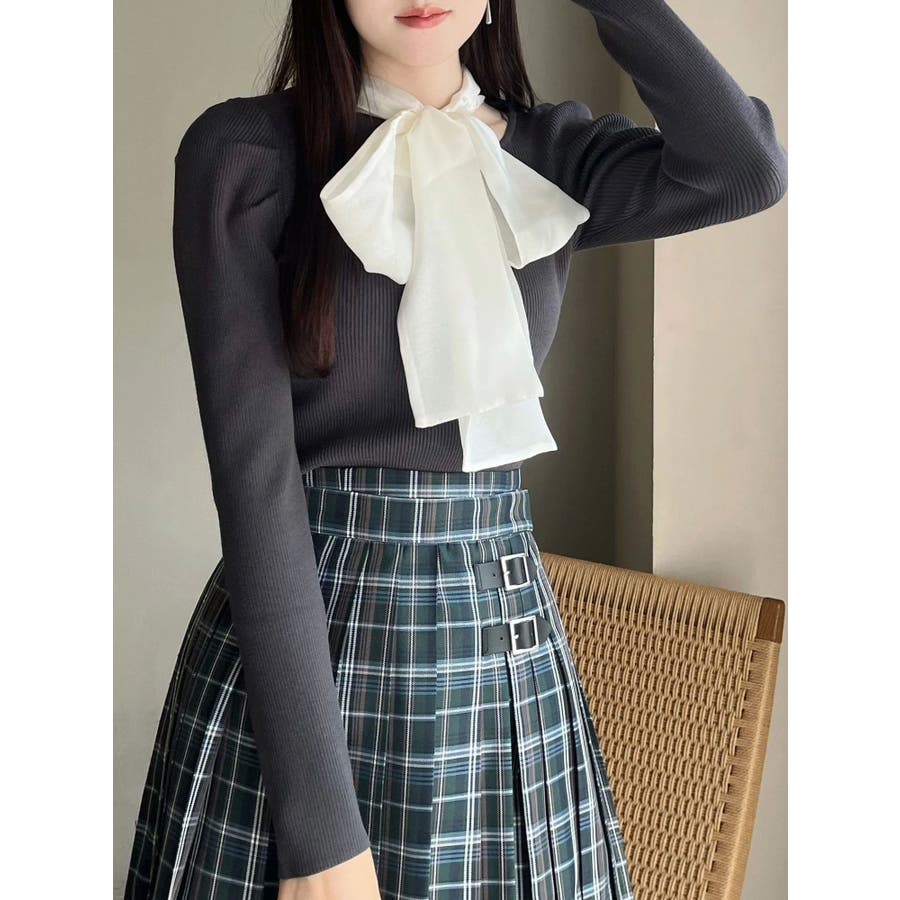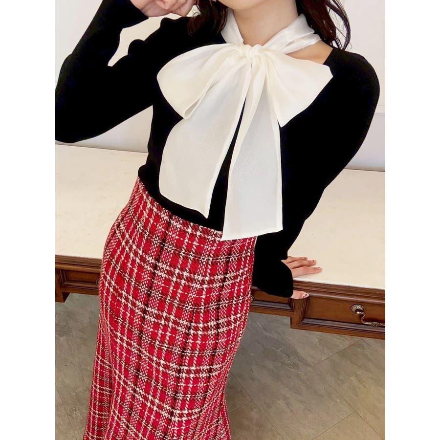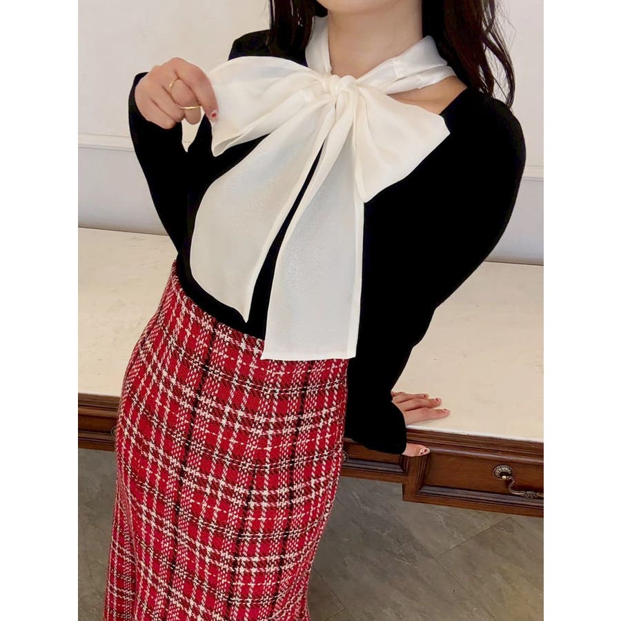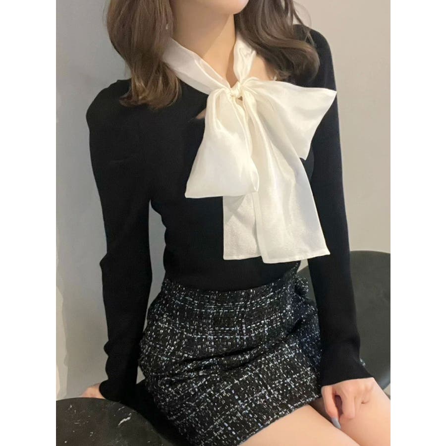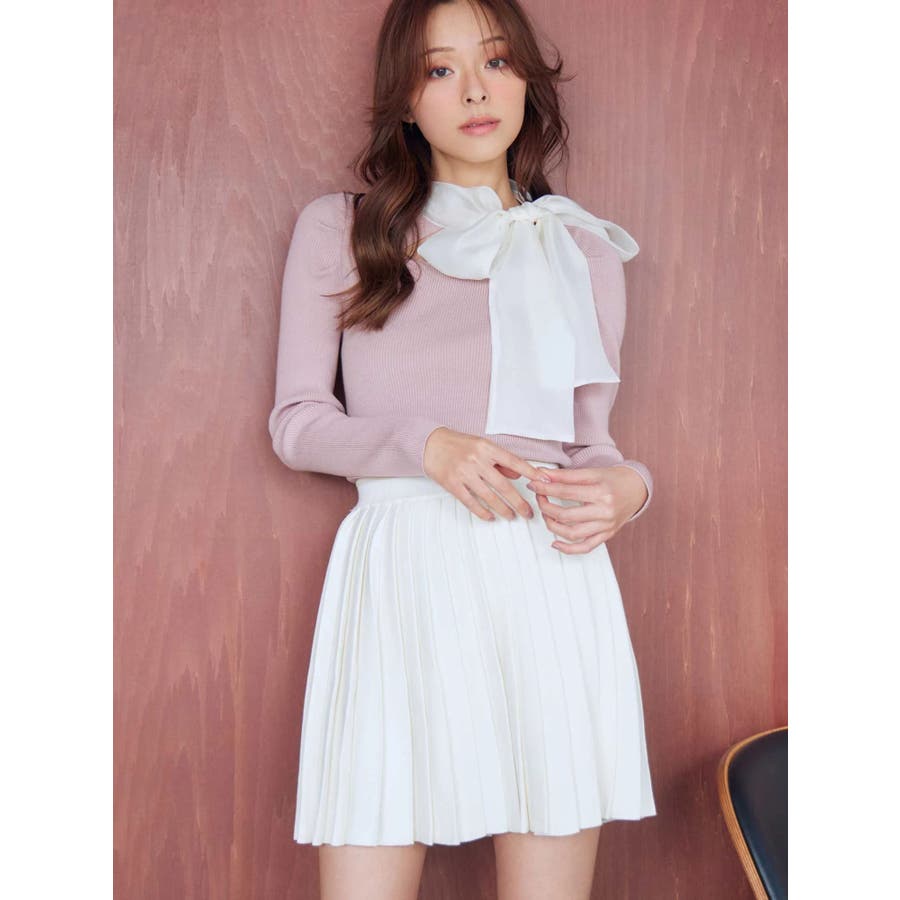 異素材リボンカットアウトニット