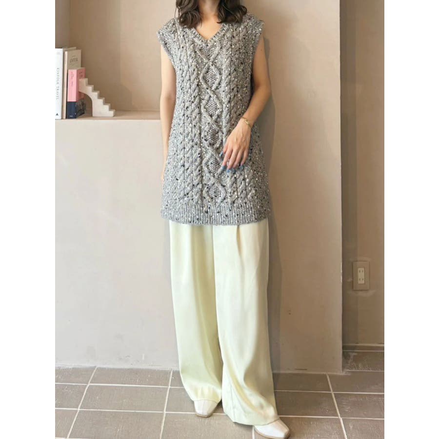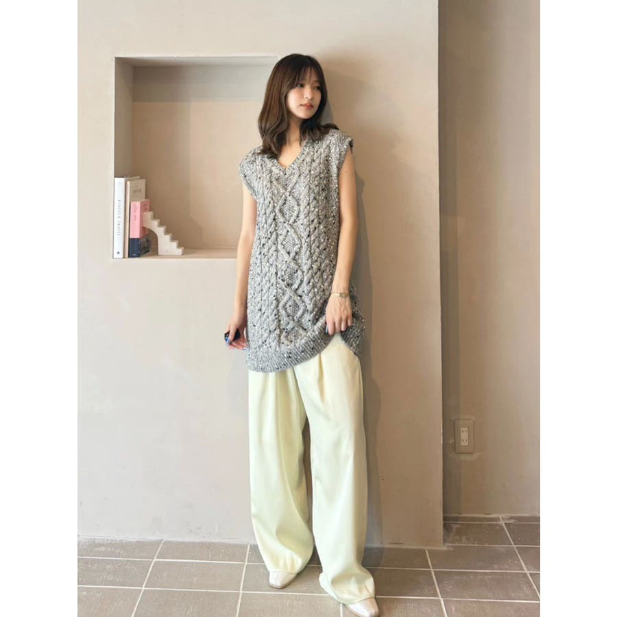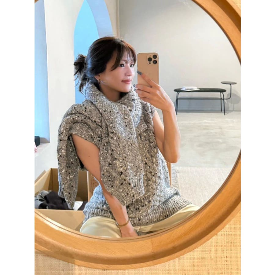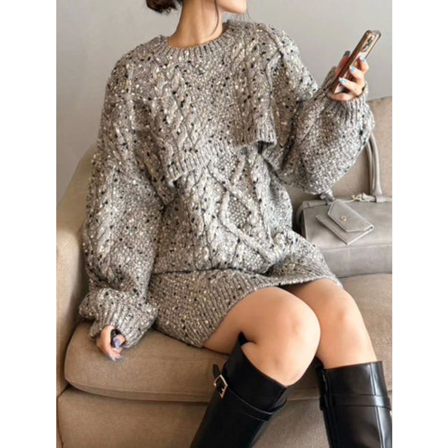 ラメを大胆に効かせた、他にはない特別感のあるツイード調ニットセット。ノースリーブのベストには、ツイードのような表情を持つ毛糸に、メッシュとラメ糸を引き揃えて使用。凹凸感のある編地が奥行きを演出し、光を受けてきらりと輝くラメが印象的なアクセントに。同素材のショート丈ボレロとセットでレイヤードすれば、スタイリングが一気に旬顔に。ベストはシャツやロンTに重ねたり、ボレロは他アイテムと合わせて羽織ったりと、それぞれ単品でも活躍。コーディネート次第でモードにもカジュアルにも振れる、着まわし力抜群のアイテムです。 ※着用画像は全てサンプルです。