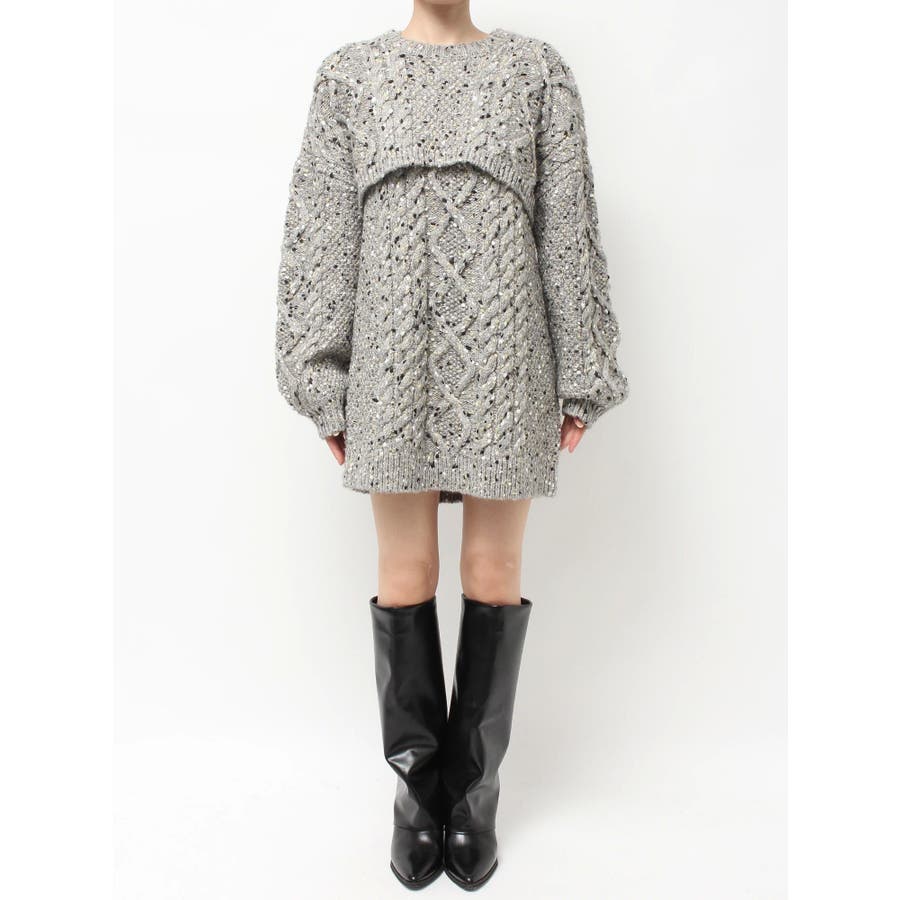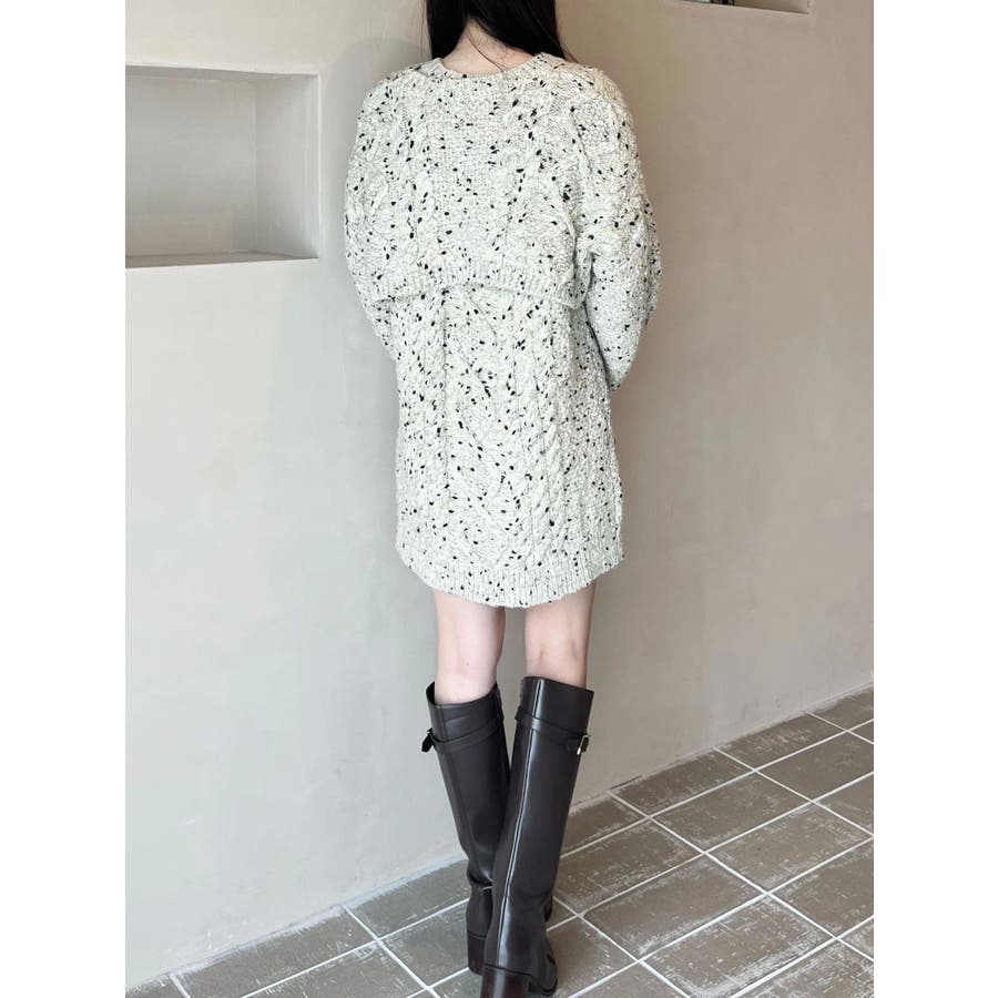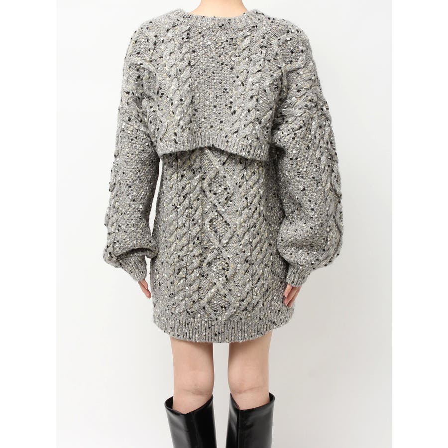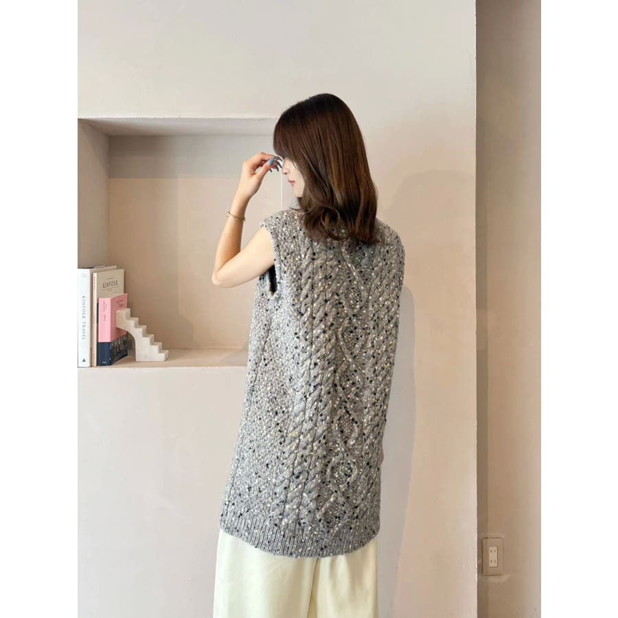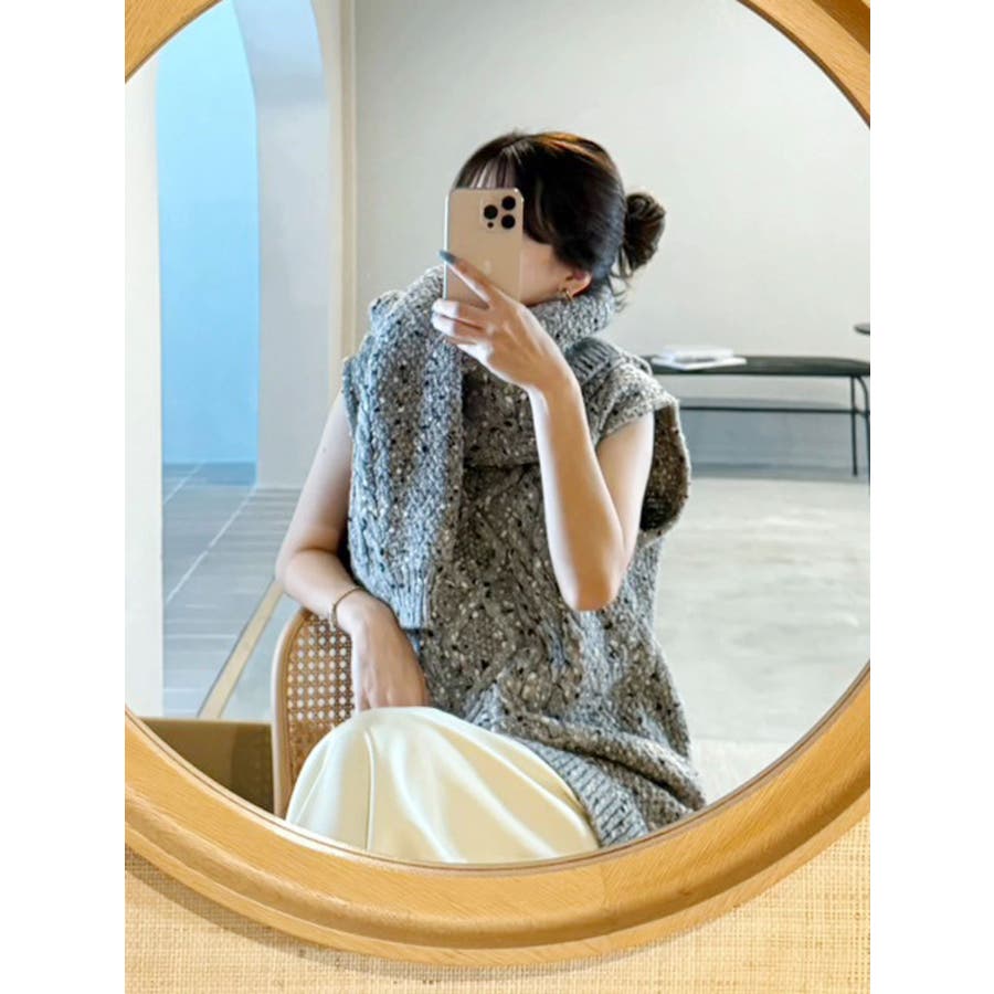 ラメを大胆に効かせた、他にはない特別感のあるツイード調ニットセット。ノースリーブのベストには、ツイードのような表情を持つ毛糸に、メッシュとラメ糸を引き揃えて使用。凹凸感のある編地が奥行きを演出し、光を受けてきらりと輝くラメが印象的なアクセントに。同素材のショート丈ボレロとセットでレイヤードすれば、スタイリングが一気に旬顔に。ベストはシャツやロンTに重ねたり、ボレロは他アイテムと合わせて羽織ったりと、それぞれ単品でも活躍。コーディネート次第でモードにもカジュアルにも振れる、着まわし力抜群のアイテムです。 ※着用画像は全てサンプルです。