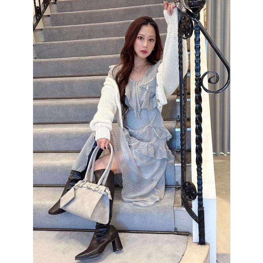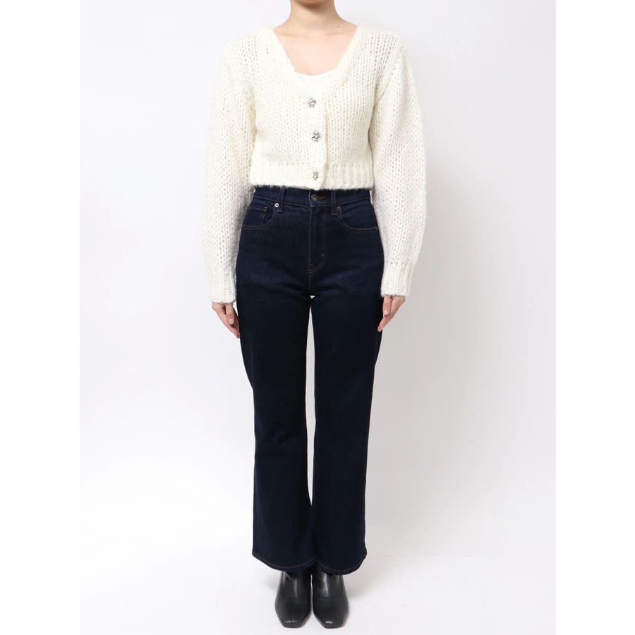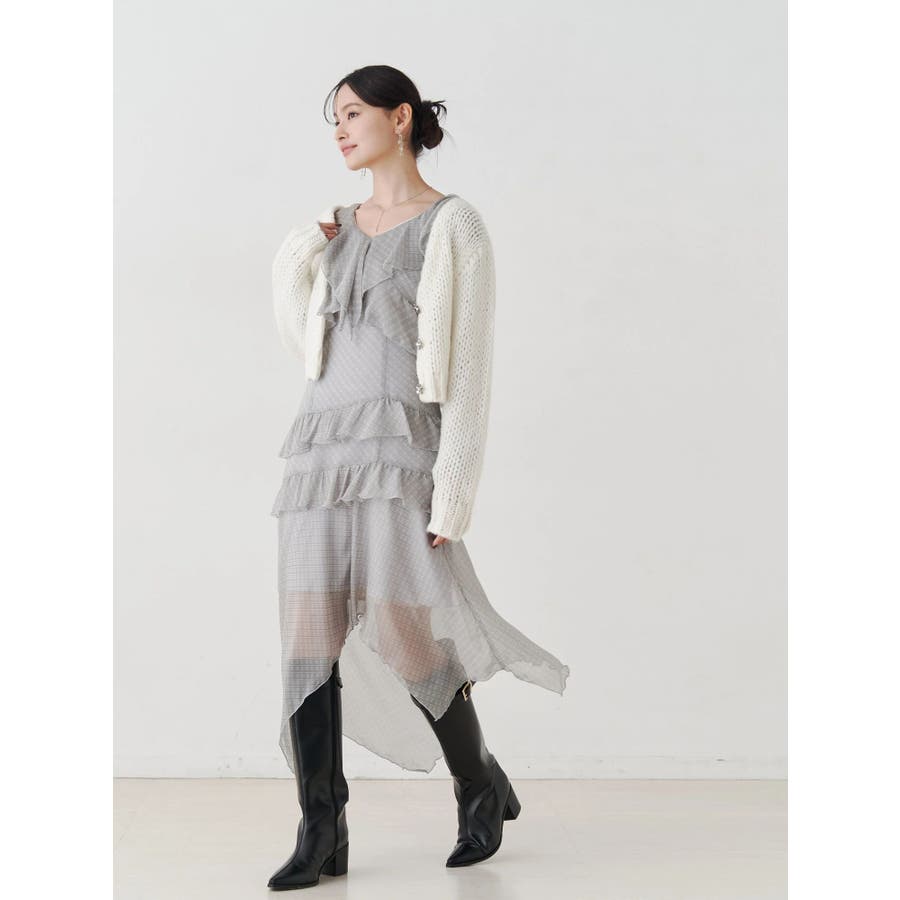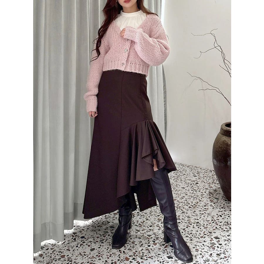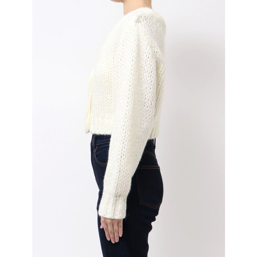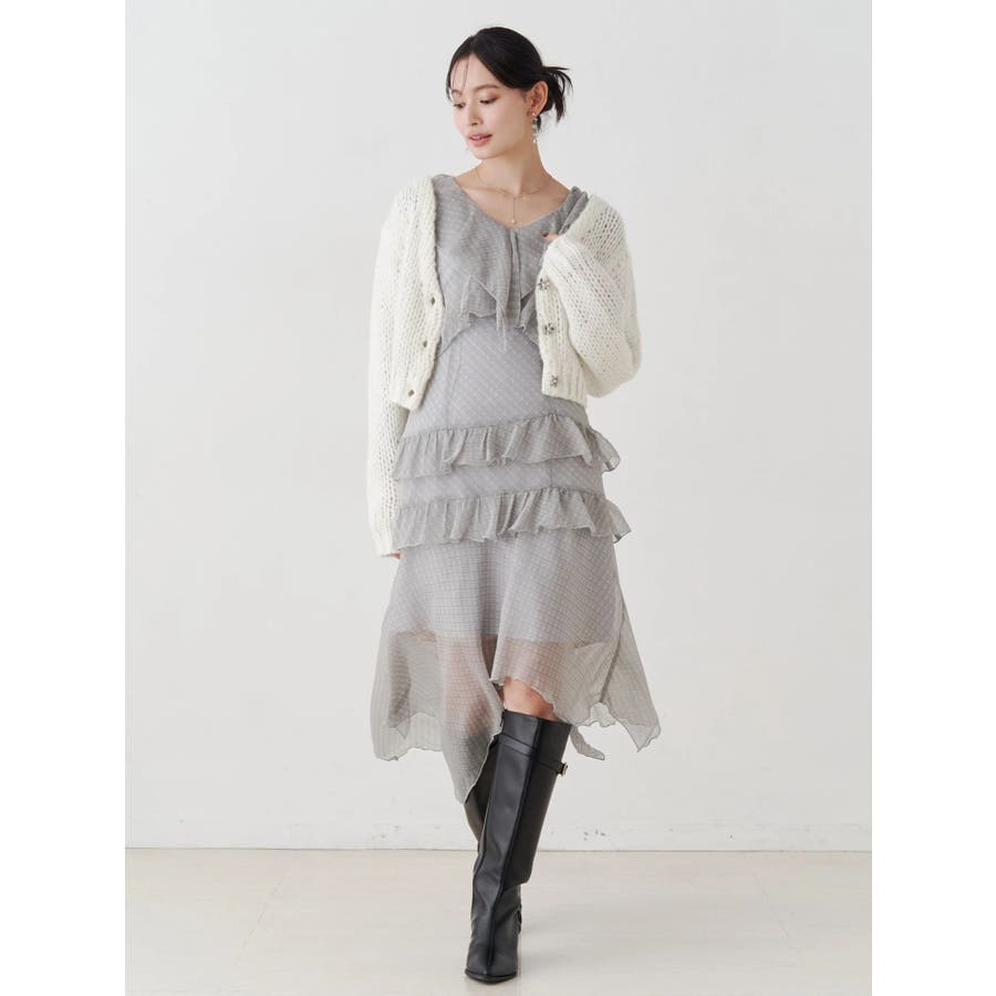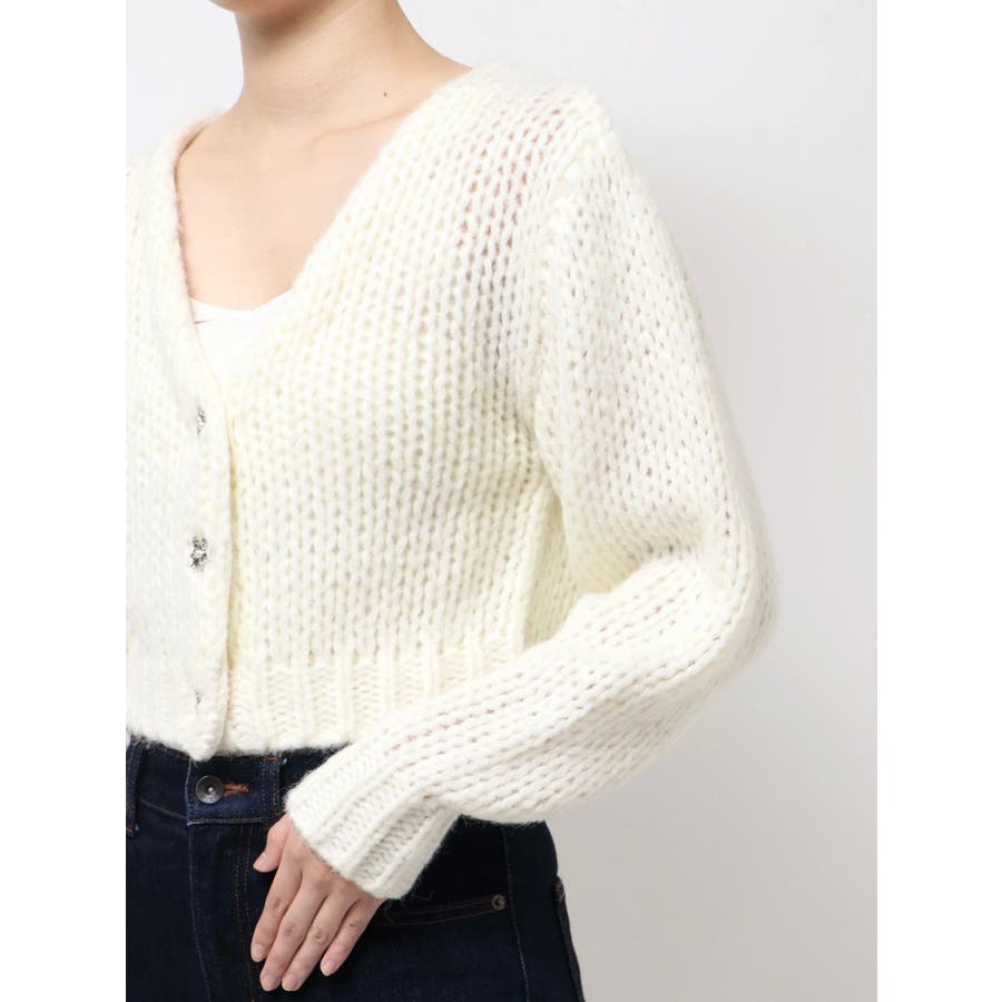 ふわっとした太めの糸でざっくりと編み上げた、冬のムードを高めてくれるローゲージカーディガン。 手編みのようなあたたかみのある風合いで、羽織るだけで優しい雰囲気に仕上がります。 短丈シルエットなので、ワンピースとのバランスも取りやすく、スタイルアップ効果も◎。 フロントにはさりげなく光るフラワーモチーフの金属ボタンをあしらい、シンプルながらも女らしい華やかさをプラスしました。 MERCURYDUO(マーキュリーデュオ)らしい柔らかなパステルカラーの展開で、冬のコーディネートに甘さと軽やかさを添えてくれる1枚です。 ▼スタイリング ワンピースの羽織として合わせたり、シンプルリブニットにレイヤードしたりするのがおすすめです。 柔らかい素材なのでボリュームがあってもアウターの中に合わせやすいカーディガンです。※着用画像はフラッシュの加減で実際の製品と色味等が異なる場合がございますので、生地のズームアップ画像をご確認ください。※ご利用の端末画面の設定により実際の商品と色味が異なる場合がございます。【商品特徴】透け感:なし伸縮性:あり生地の厚さ:普通サイズ感:普通裏地:なしポケット:なし