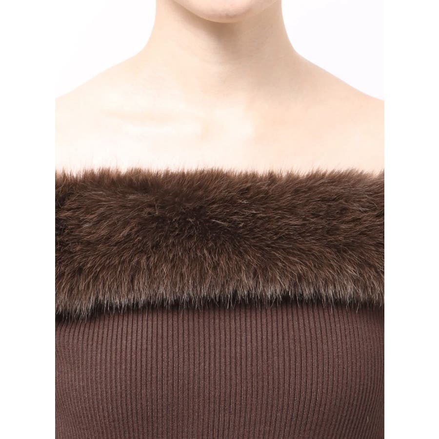 | 素材 | 表地 ニット部分:レーヨン71% ポリエステル29% 布帛部分:ポリエステル100% 裏地:ポリエステル100% ファー部分:ポリエステル100% 別布:ポリエステル100% |