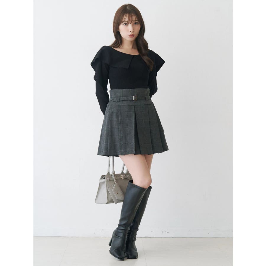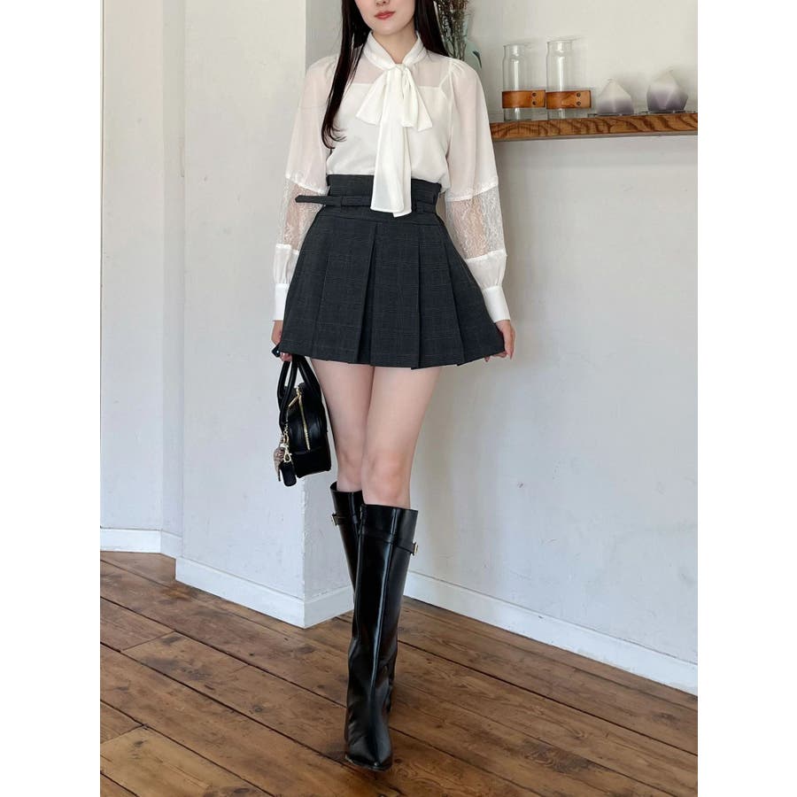 ベルト付きチェックプリーツミニスカパン