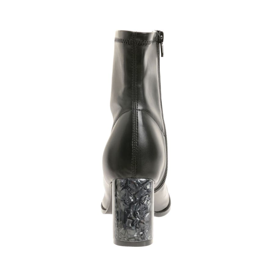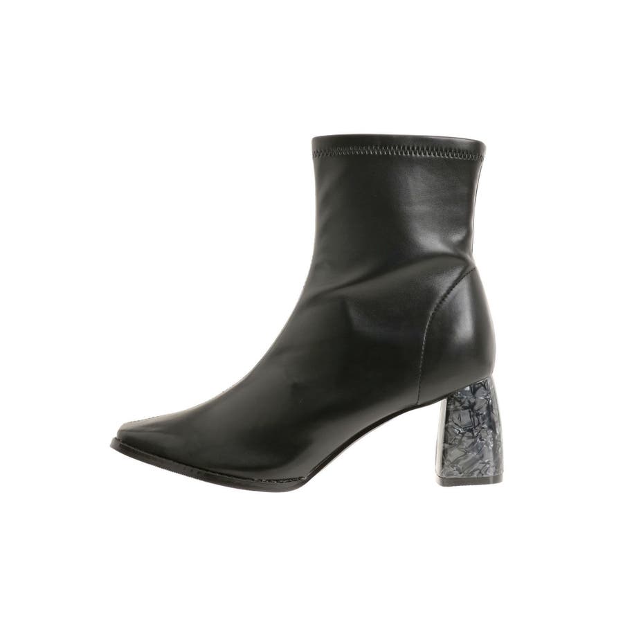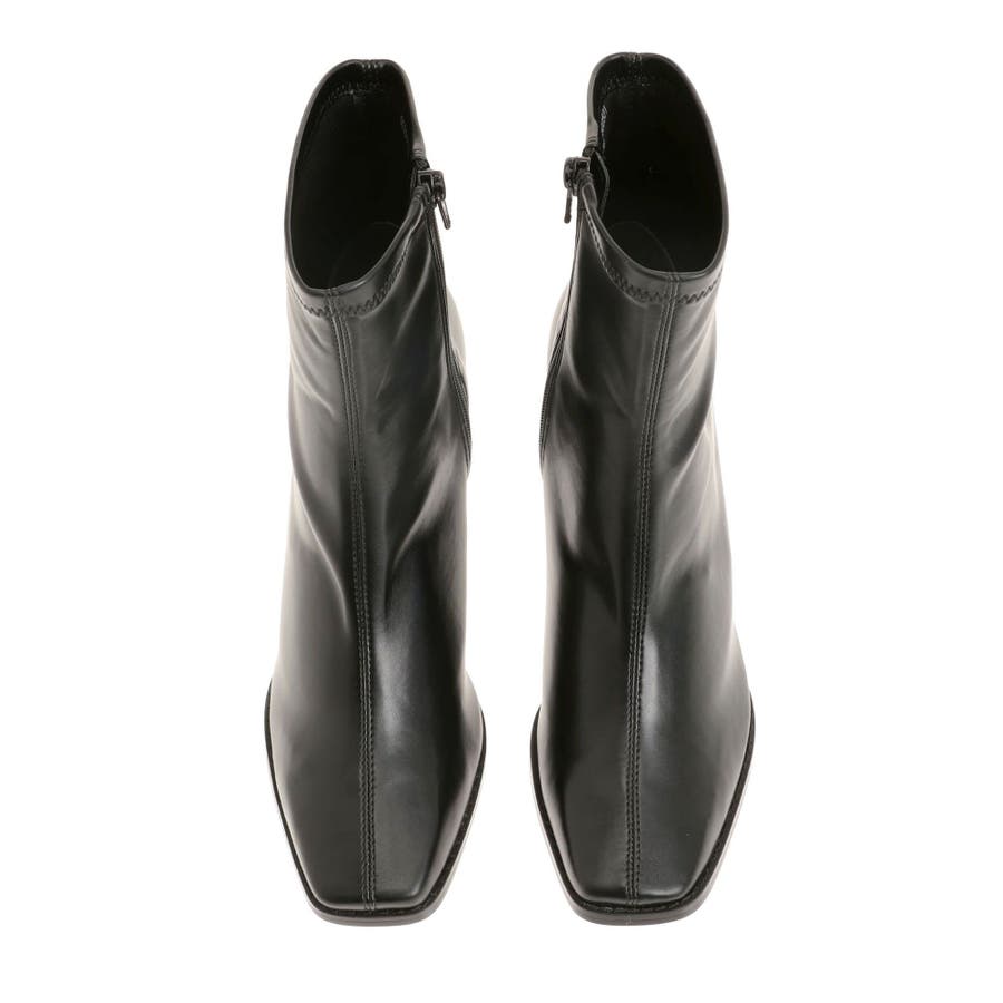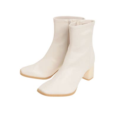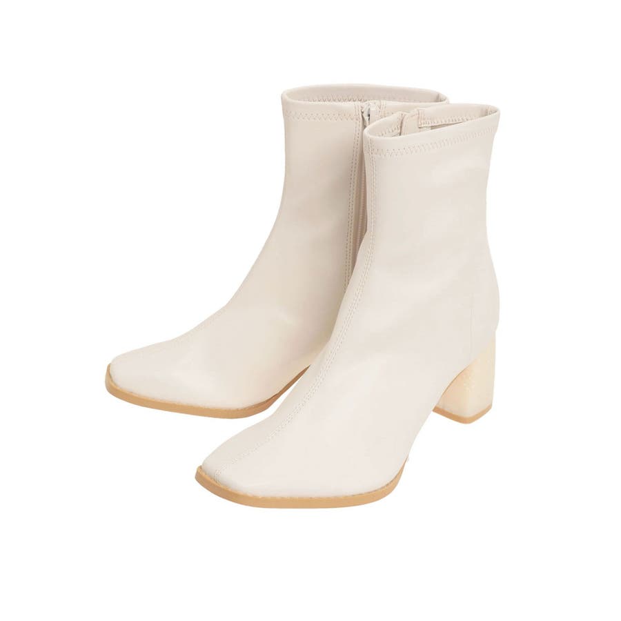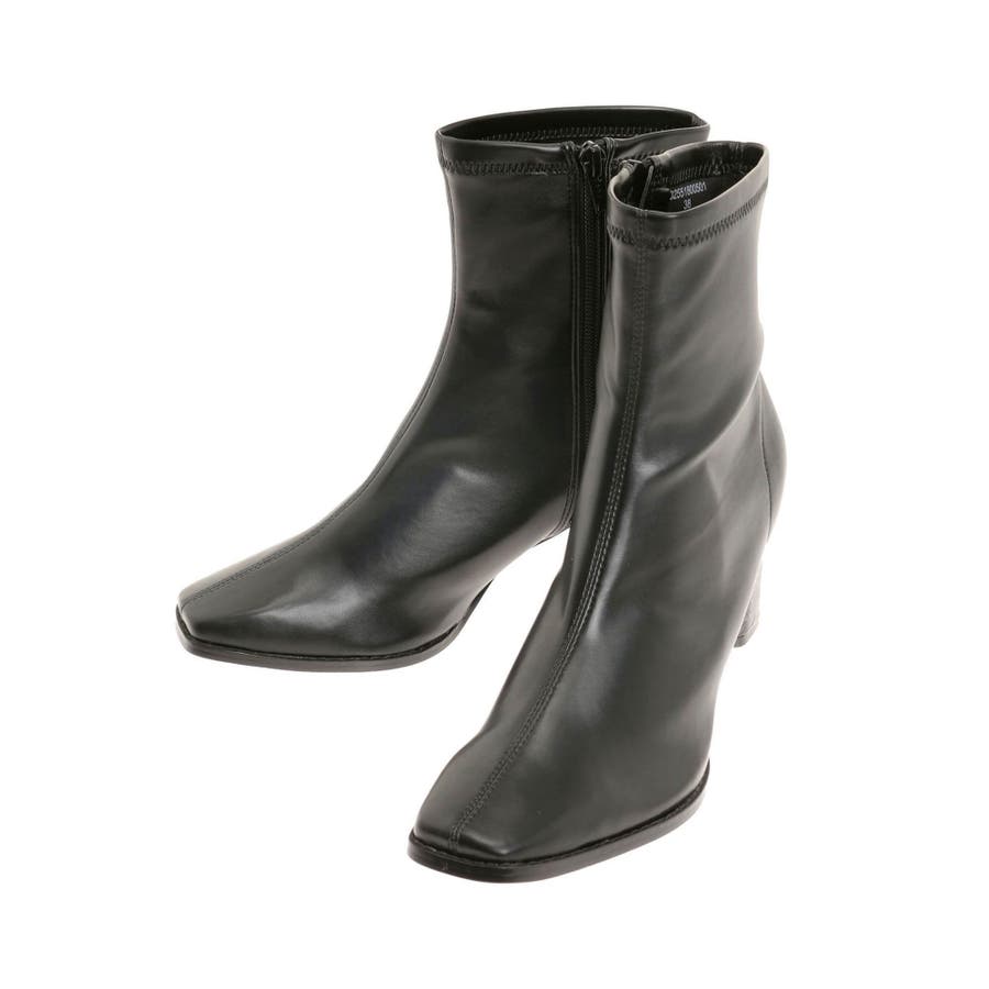 定番のストレッチショートブーツが、スクエアトゥの形になりました。 シンプルながらヘビロテできるデザインで、パールのようなホログラムで特徴的なヒールが、いつものコーディネートをワンランクアップしてくれます。 丸みのある太めでスクエアなヒールで安定感も抜群です。 柔らかいストレッチの効いたフェイクレザーが、程よいフィット感のある一足です◎ ▼スタイリング どんな洋服にも合わせやすい万能アイテムです。 ※写真はすべてサンプルです。 ※ヒールの色、黄みがありますが、アイボリーはアイボリー、ブラックは濃いチャコールみのあるホログラムになります。 ※靴底の色、アイボリーにベージュが付いていますが、靴底は本体同色になります。※詳細画像が正しい仕様となります。 【スタッフ着用レビュー】 スタッフA(普段のサイズ: 23.5cm/足の幅: 9.0cm/甲の高さ: 5.7cm)Mサイズを着用しピッタリのサイズ感でした。足幅も丁度良いです。素材が柔らかいので履き心地も良いです。