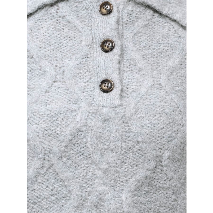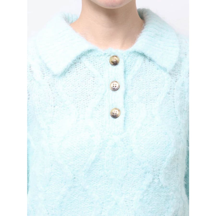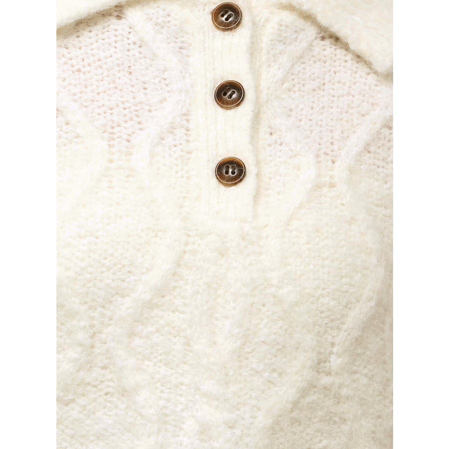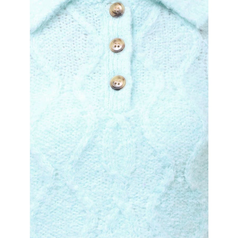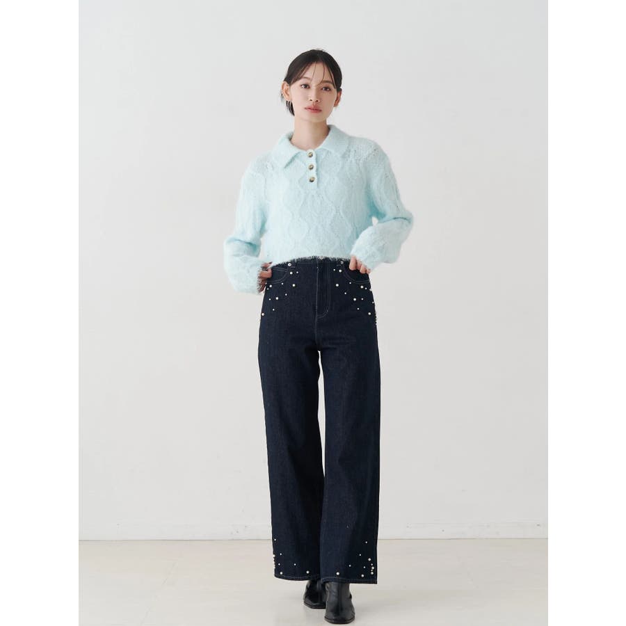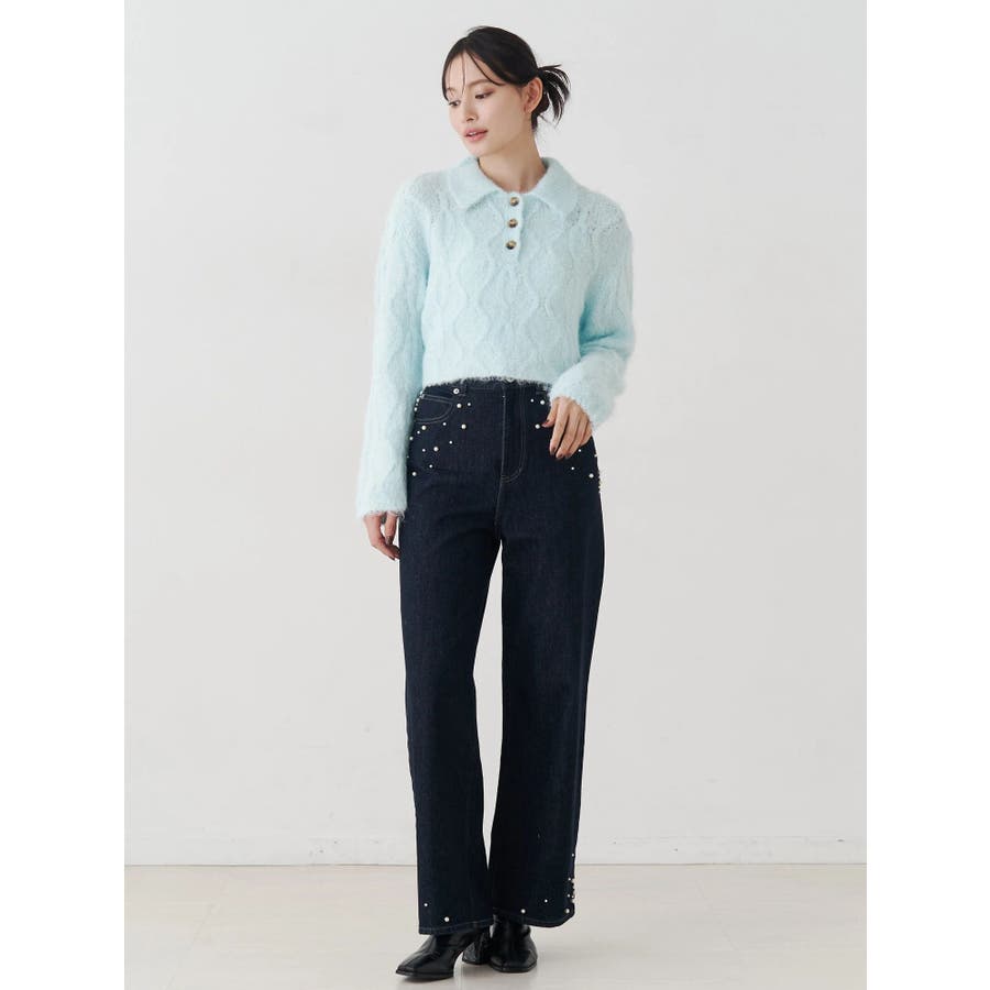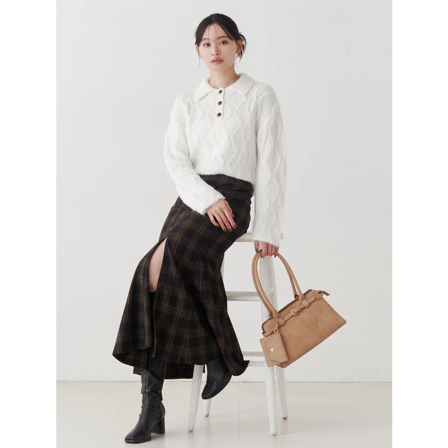 ふわふわな糸で編んだポフっとシルエットのポロ衿ニット。すっきりとした色合いに大き目のケーブル編みがカジュアルなあざとさを演出、ふわふらな糸で編んでいるので、着心地よく着用していただけます。 ▼スタイリング クロップド丈なので、裾はアウトして細見のスカート合わせがおすすめ。パンツと合わせる際は、ミュールで女っぽく◎ ※着用画像は全てサンプルです。