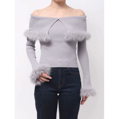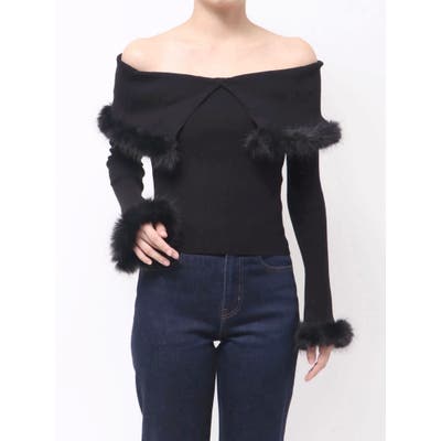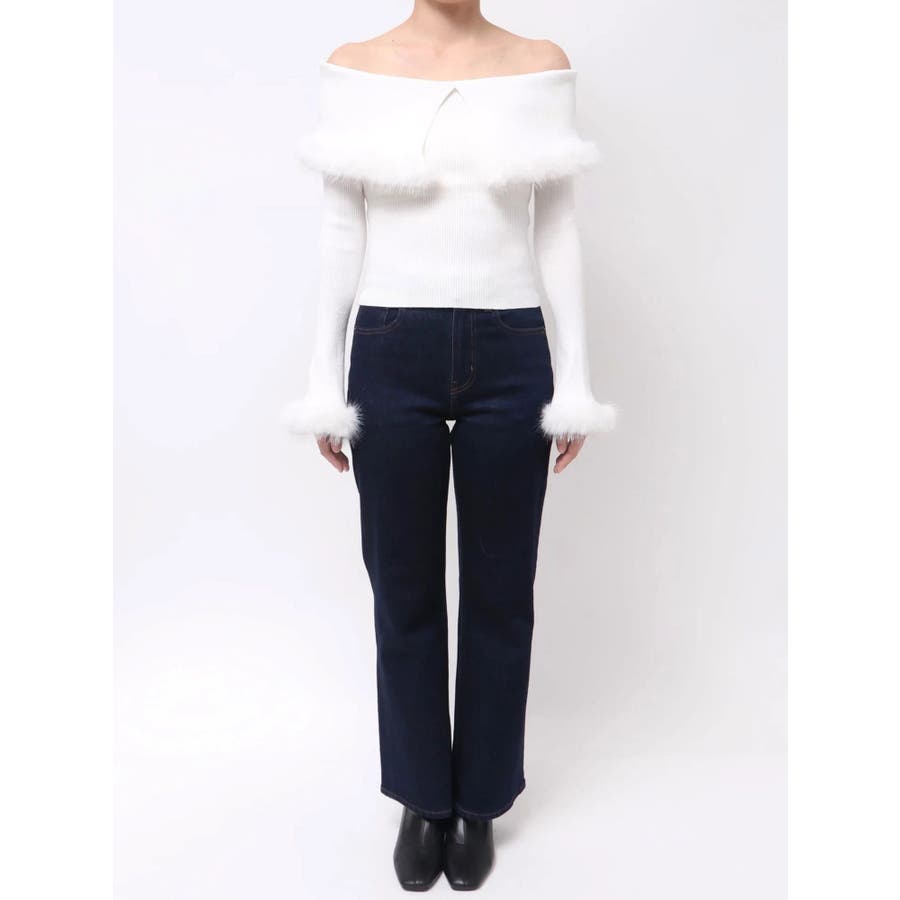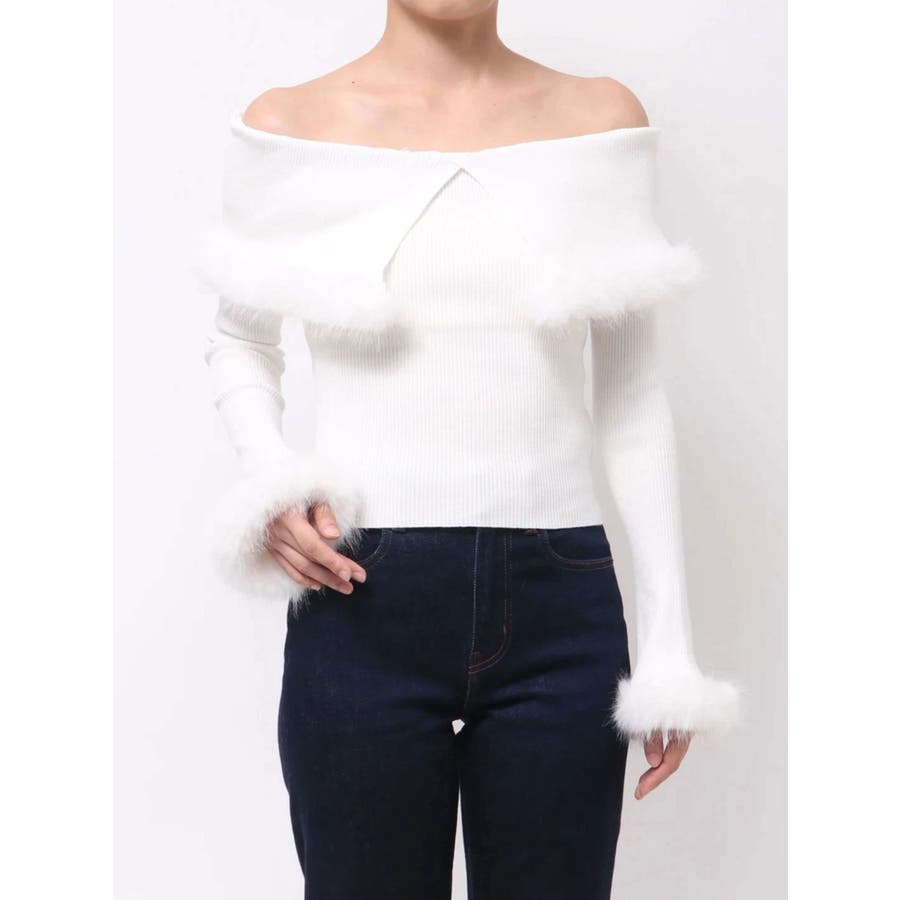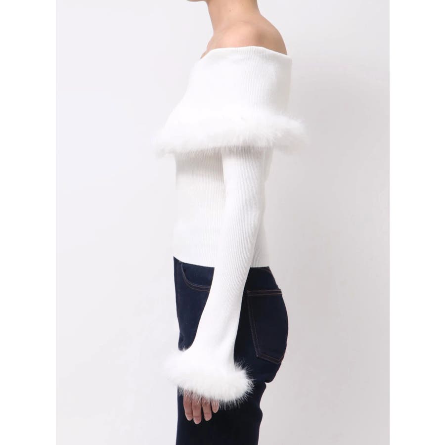 フェイクファートリミングニット