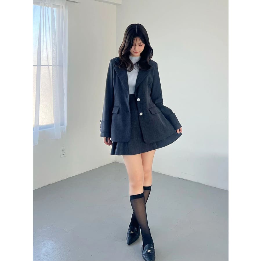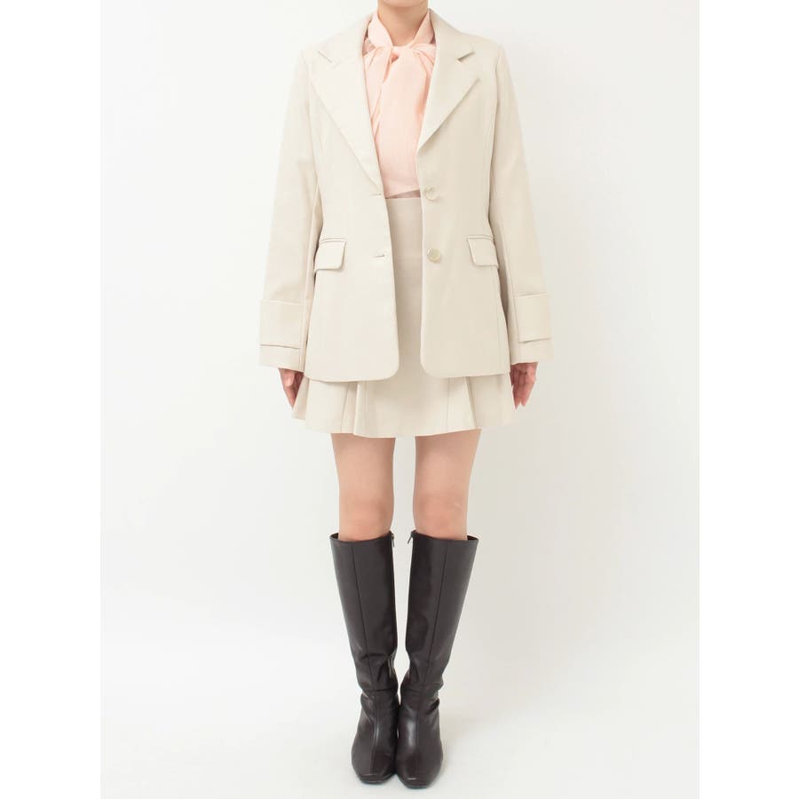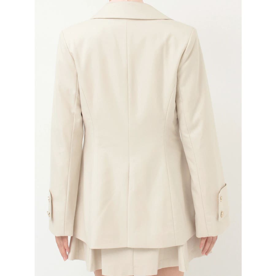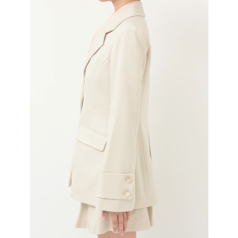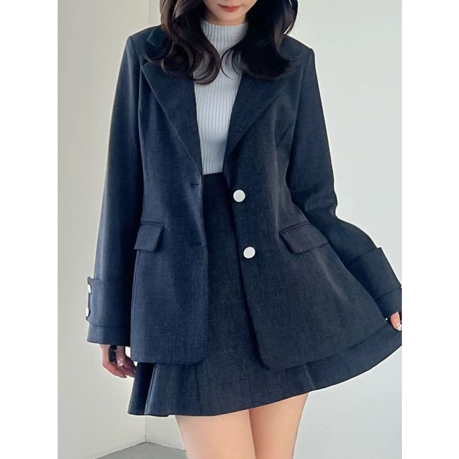 美シルエットを意識したフィット&フレアシルエットのジャケット。ウエストはキュッと、裾は広がったシルエットです。 ウエストを絞る位置を高く設定しているので、スタイルアップを実現してくれます。 袖は肘の辺りから広がるフレアスリーブのシルエットにカフスをプラスしたデザインです。▼スタイリング同素材のミニマーメイドスカパンとのセットアップで合わせる場合は、ピタッとしたニット合わせでより美シルエットを意識したコーディネートがおすすめ。ハイウエストデザインのワンピースに羽織り、ボタンを開け中のウエスト切り替えを見せてコーディネートすることで、 ジャケットの裾で目線が下がらずにジャケットコーデを華やかに仕上げてくれます◎※SM着丈差3cm※実際にお届けする商品と仕様やサイズが異なる場合がございます。 また、生産の都合上、お届け時期が前後する場合がございます。※着用画像は全てサンプルです。