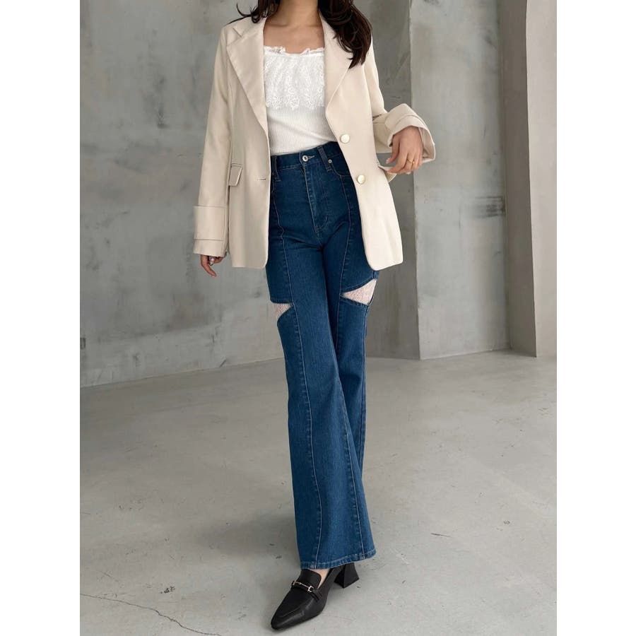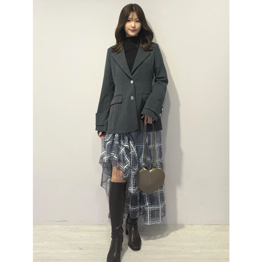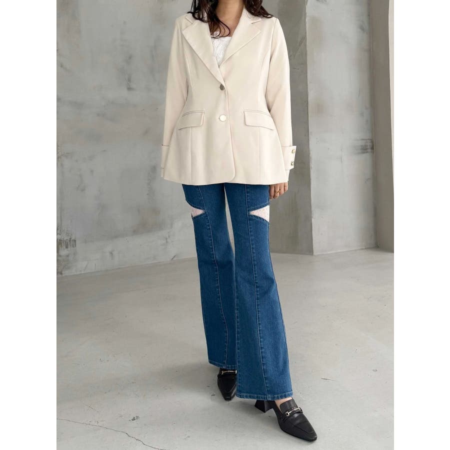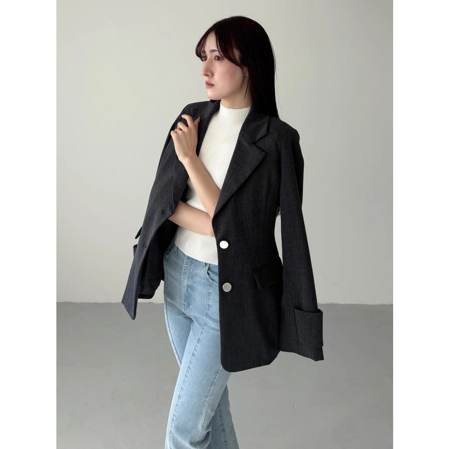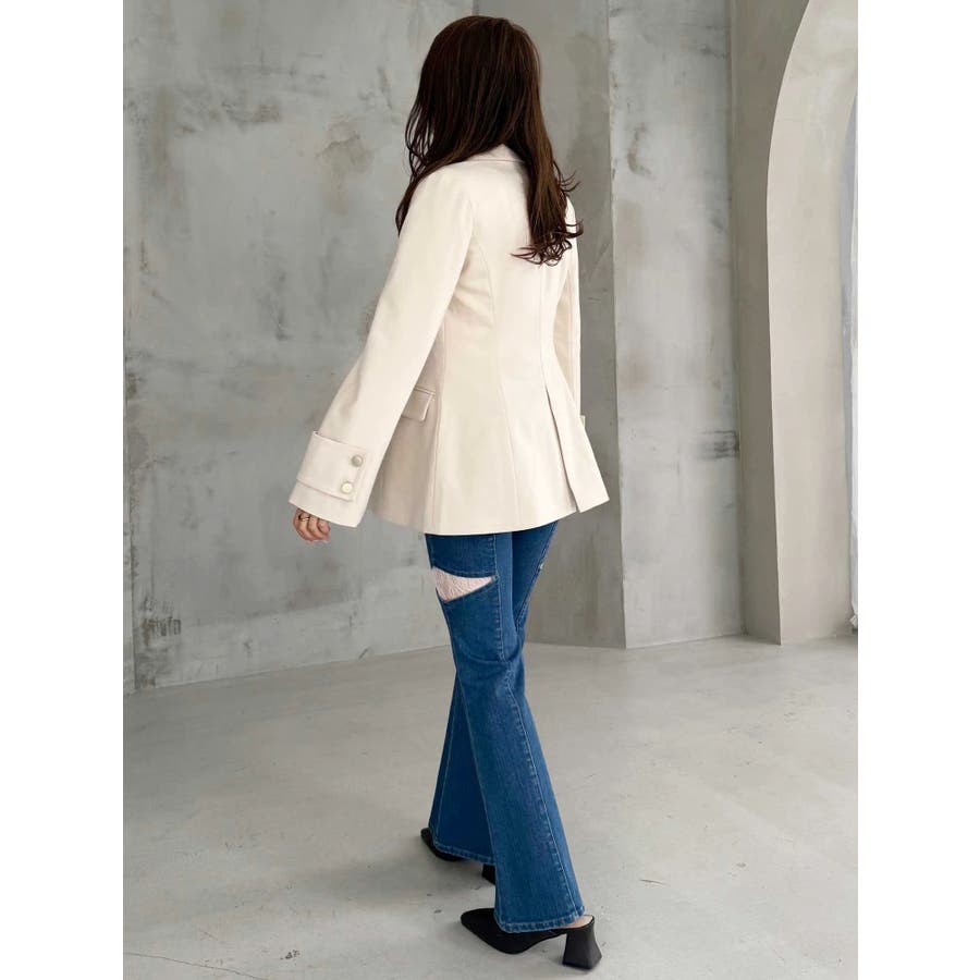 美シルエットを意識したフィット&フレアシルエットのジャケット。ウエストはキュッと、裾は広がったシルエットです。 ウエストを絞る位置を高く設定しているので、スタイルアップを実現してくれます。 袖は肘の辺りから広がるフレアスリーブのシルエットにカフスをプラスしたデザインです。▼スタイリング同素材のミニマーメイドスカパンとのセットアップで合わせる場合は、ピタッとしたニット合わせでより美シルエットを意識したコーディネートがおすすめ。ハイウエストデザインのワンピースに羽織り、ボタンを開け中のウエスト切り替えを見せてコーディネートすることで、 ジャケットの裾で目線が下がらずにジャケットコーデを華やかに仕上げてくれます◎※SM着丈差3cm※実際にお届けする商品と仕様やサイズが異なる場合がございます。 また、生産の都合上、お届け時期が前後する場合がございます。※着用画像は全てサンプルです。