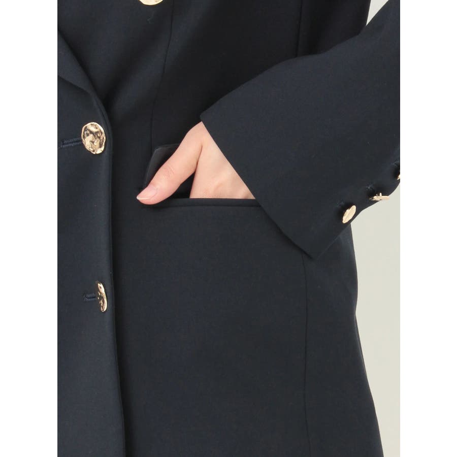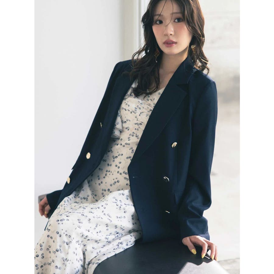 春の必須アイテムの紺ブレザーです。シャンパンゴールドカラーのボタンをあしらい、フェミニンさを加えました。ロングスカートとの相性が良いようにミドル丈になっています。▼スタイリング ロング丈のレーススカートと合わせると、歩いた時にブレザー部分のかっちりさと揺れるレースの柔らかさの対比でこなれ感がでます。歩いた時に横や斜め後ろから写真を撮るとおしゃれ見えします!※写真はすべてサンプルです。※ボタンは凹凸がないフラットなものになります。※Sサイズ着丈-4cm