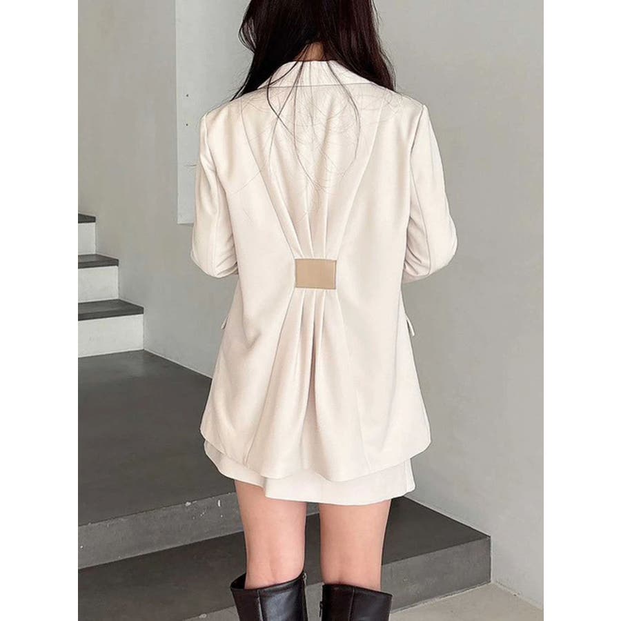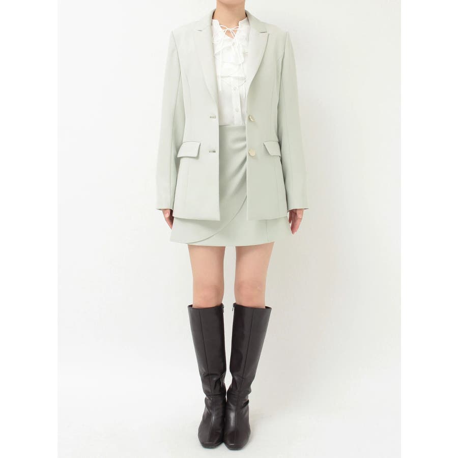 バックデザインの革パッチに流れるようなドレープがトレンドライクなジャケット。 スタイルアップするよう、革パッチの位置はハイウエストの位置に配置しています。 釦を開けて着用すればBOXシルエットに、釦を閉めて着用すれば、程よくフィット&フレアなシルエットになるよう仕立てております。 ▼スタイリング セットアップコーデが可能なドレープミニスカパンや、サイドベルトのパンツと合わせるのがおすすめ。 ロングブーツ合わせでフェミニンモードなスタイリングや、パンツとローファーミュールを合わせて大人クラシックなスタイリングにも。 トップスはラッフルブラウス合わせがおすすめ。 セットアップ以外にもワンピースやデニムに羽織るだけで一気に今年顔なスタイリングに格上げ◎ ※着用画像は全てサンプルです。 ※SM着丈差1.5cm ・【セットアップ着用可】サイドベルトストレートパンツ