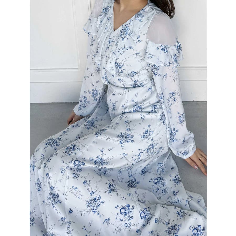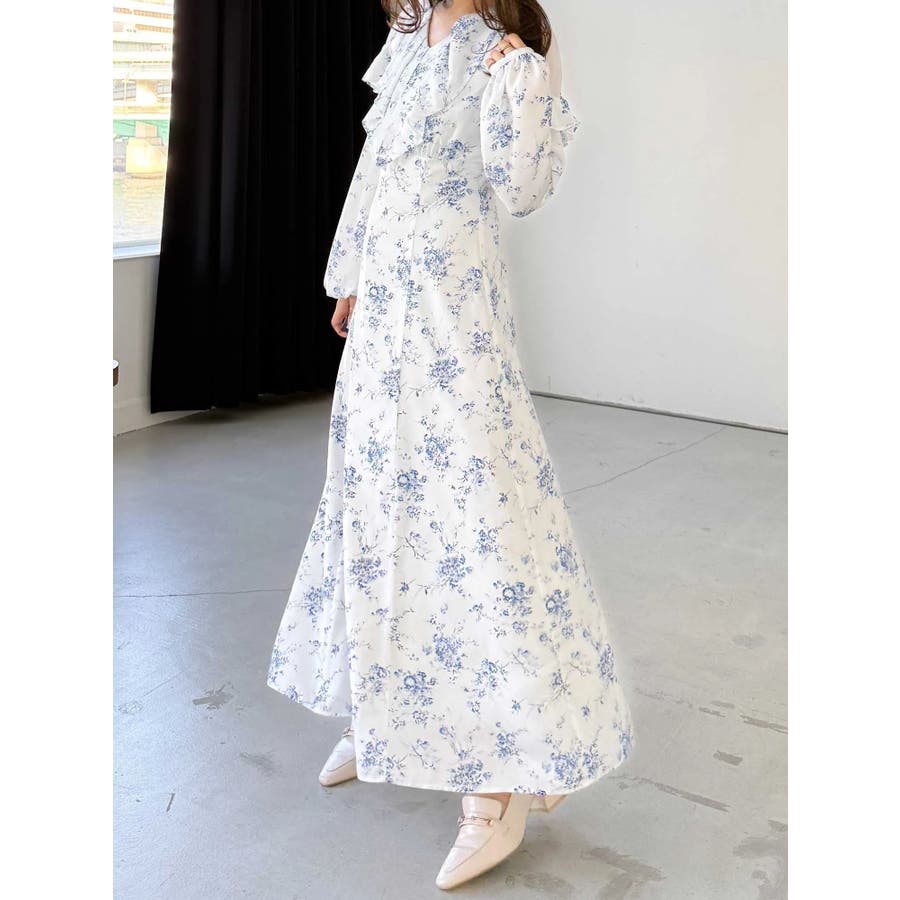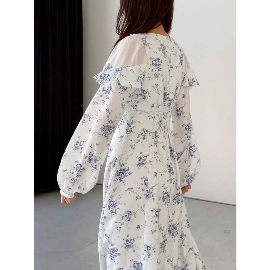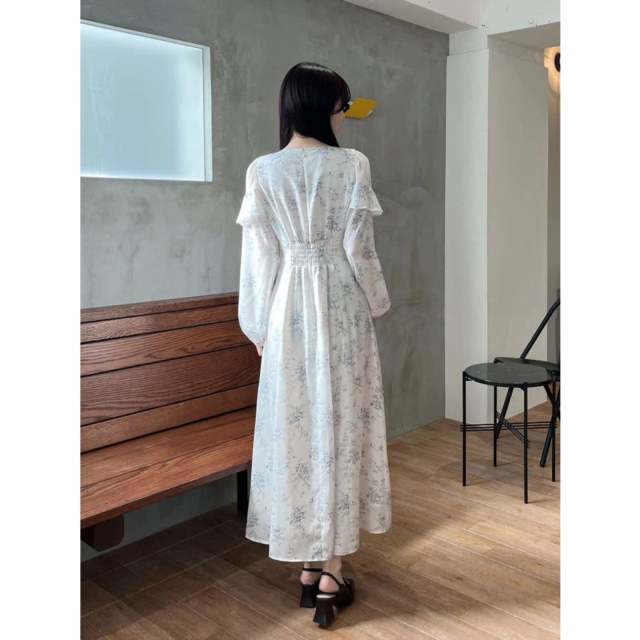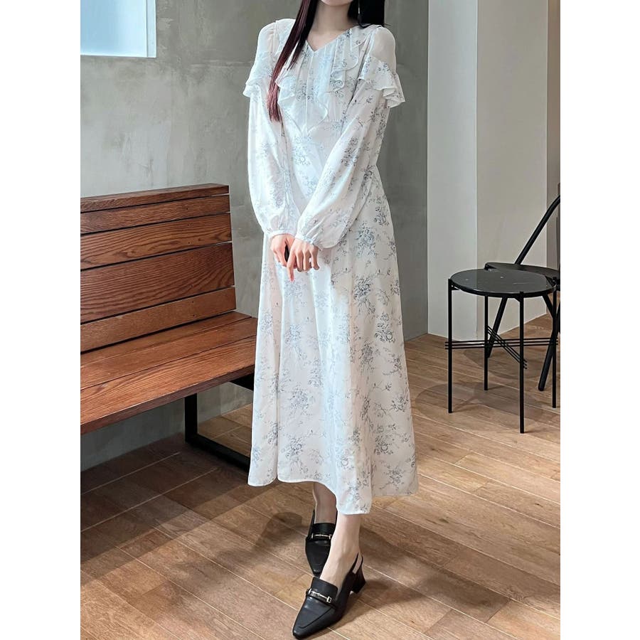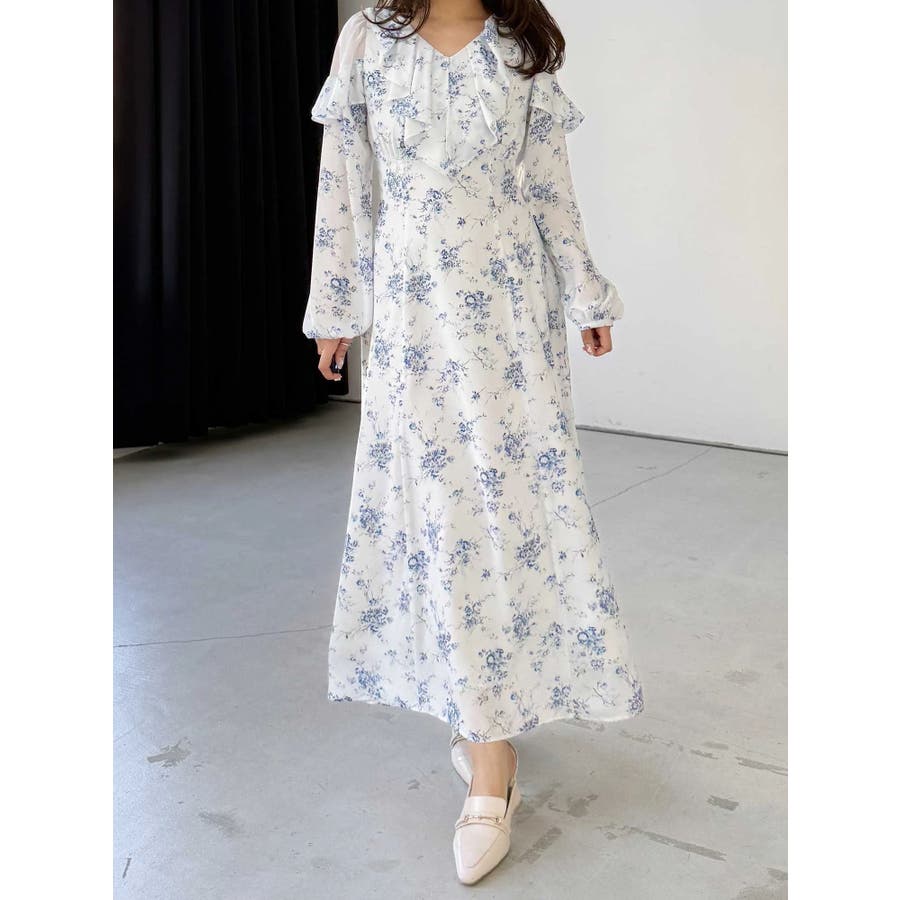 ラッフルカラーパターンワンピース