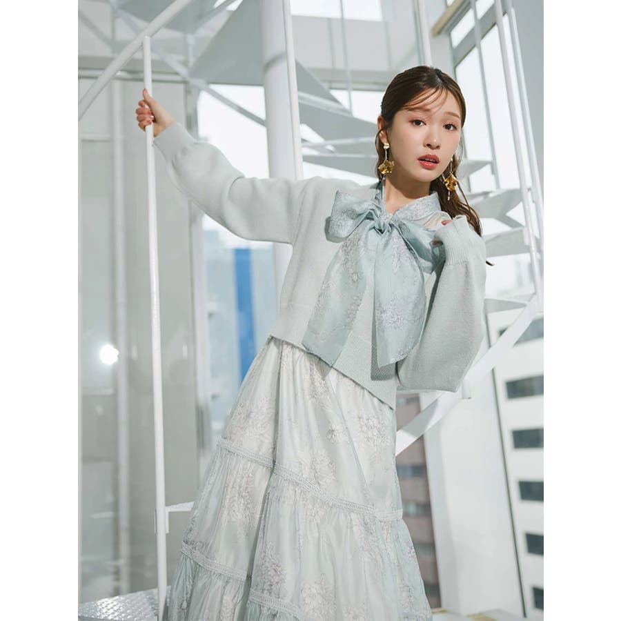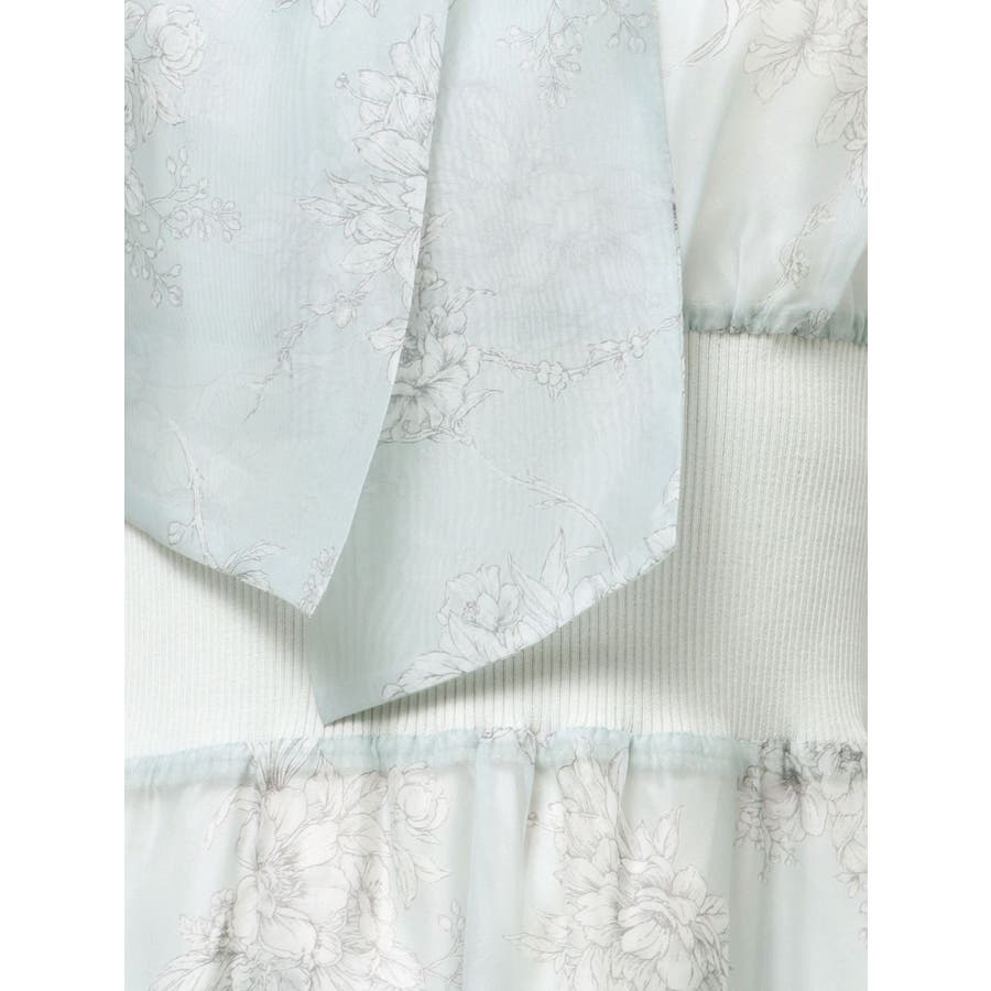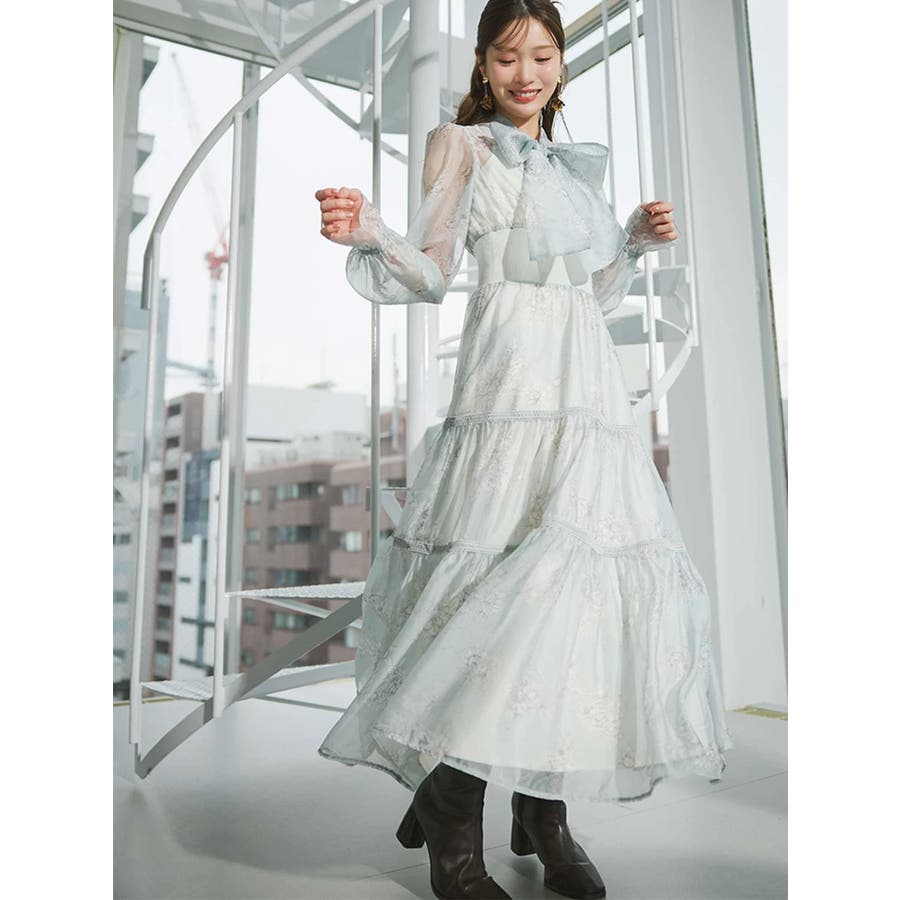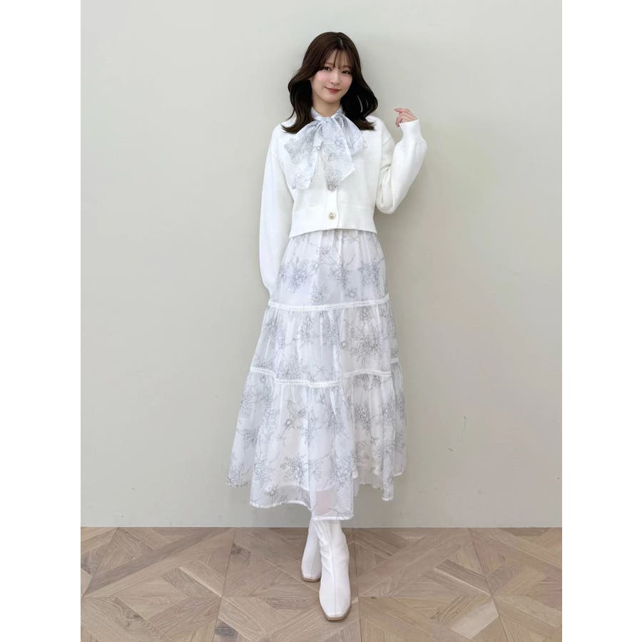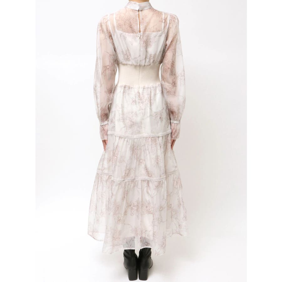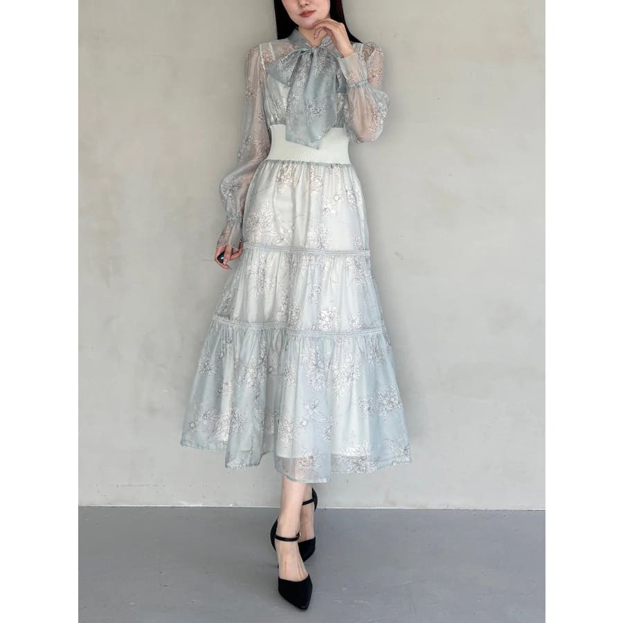 繊細なトワルドジュイ柄をオリジナルプリントで表現した、特別感あふれるボウタイワンピース。シアー感と程よい光沢感を併せ持つシフォンジー素材を使用し、軽やかで上品な印象に仕上げました。ウエストはリブ切替のコルセットデザインで、自然とメリハリのあるシルエットを演出。 スカート部分はティアード仕様にし、切替位置にはレースを叩きつけて、動くたびに表情が生まれる華やかなアクセントをプラスしています。デコルテ部分の裏地はキャミ型にすることで、程よい抜け感と女性らしさを両立。▼スタイリング一枚で着映えするデザインながら、春カラーのカーディガンを羽織れば、より季節感のあるスタイリングが完成します。※実際にお届けする商品と仕様やサイズが異なる場合がございます。また、生産の都合上、お届け時期が前後する場合がございます。※画像は全てサンプルです。