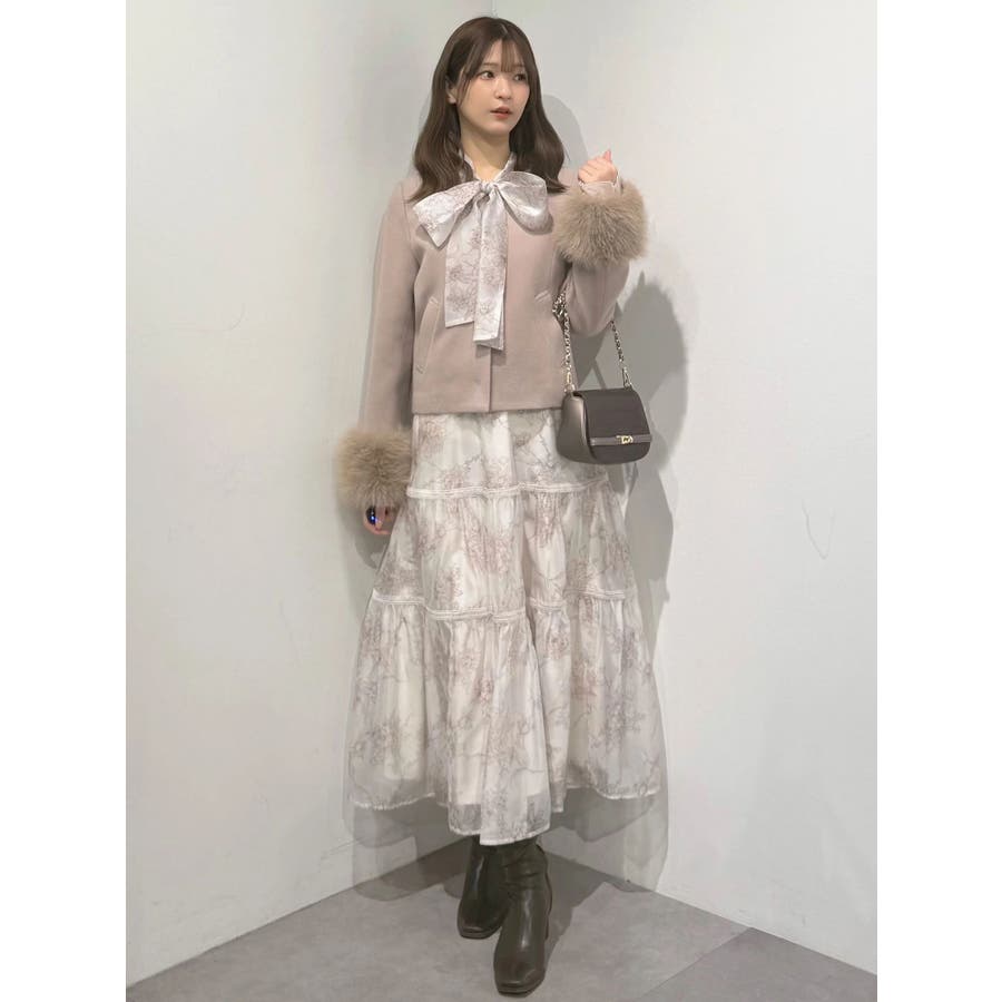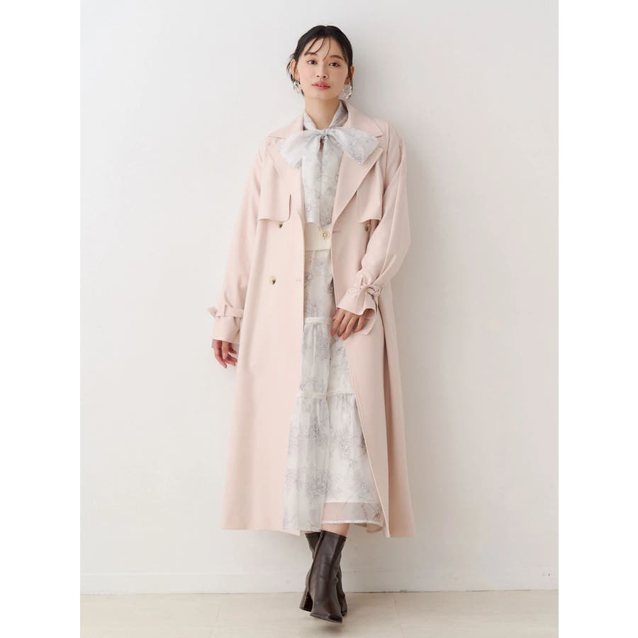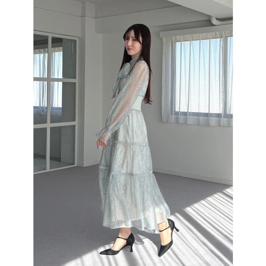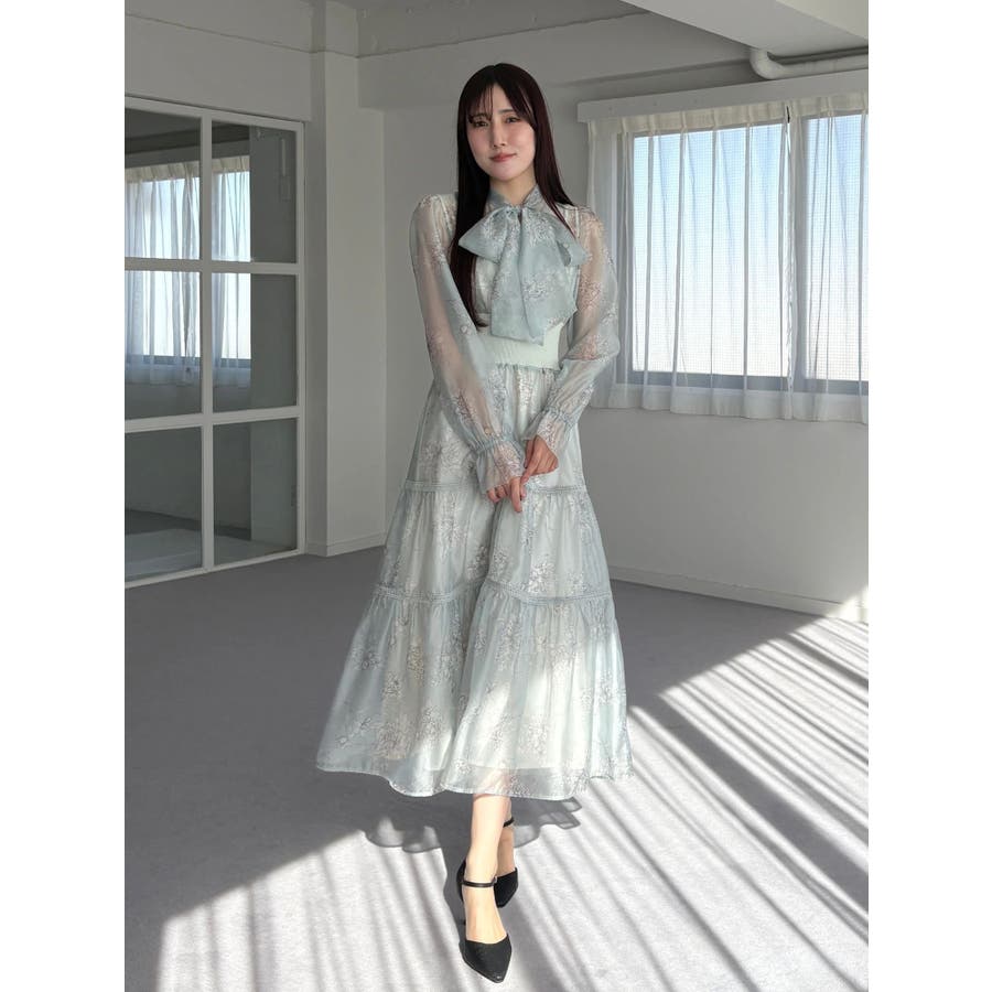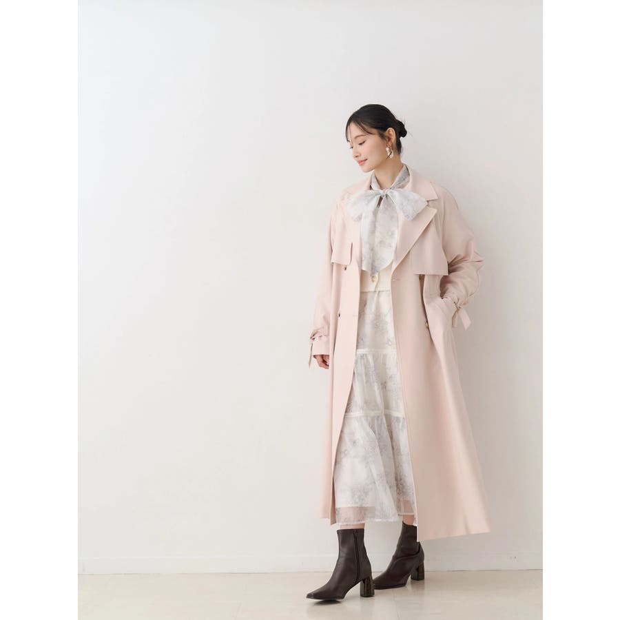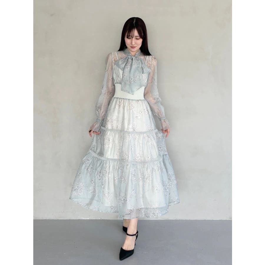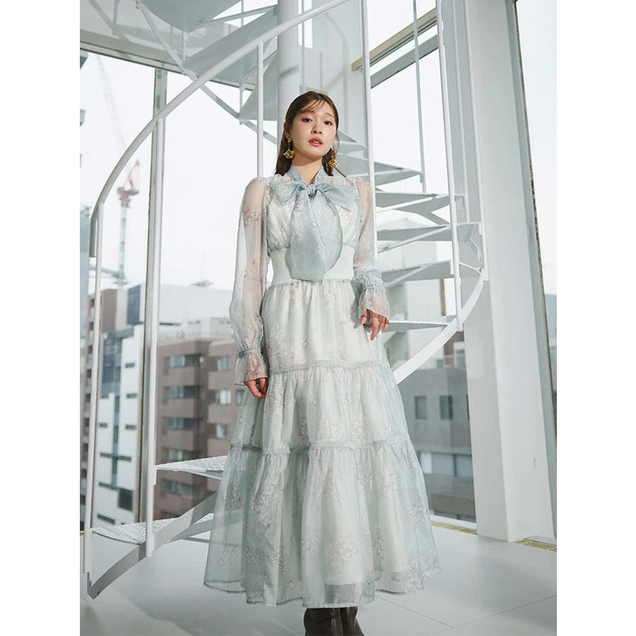 繊細なトワルドジュイ柄をオリジナルプリントで表現した、特別感あふれるボウタイワンピース。シアー感と程よい光沢感を併せ持つシフォンジー素材を使用し、軽やかで上品な印象に仕上げました。ウエストはリブ切替のコルセットデザインで、自然とメリハリのあるシルエットを演出。 スカート部分はティアード仕様にし、切替位置にはレースを叩きつけて、動くたびに表情が生まれる華やかなアクセントをプラスしています。デコルテ部分の裏地はキャミ型にすることで、程よい抜け感と女性らしさを両立。▼スタイリング一枚で着映えするデザインながら、春カラーのカーディガンを羽織れば、より季節感のあるスタイリングが完成します。※実際にお届けする商品と仕様やサイズが異なる場合がございます。また、生産の都合上、お届け時期が前後する場合がございます。※画像は全てサンプルです。