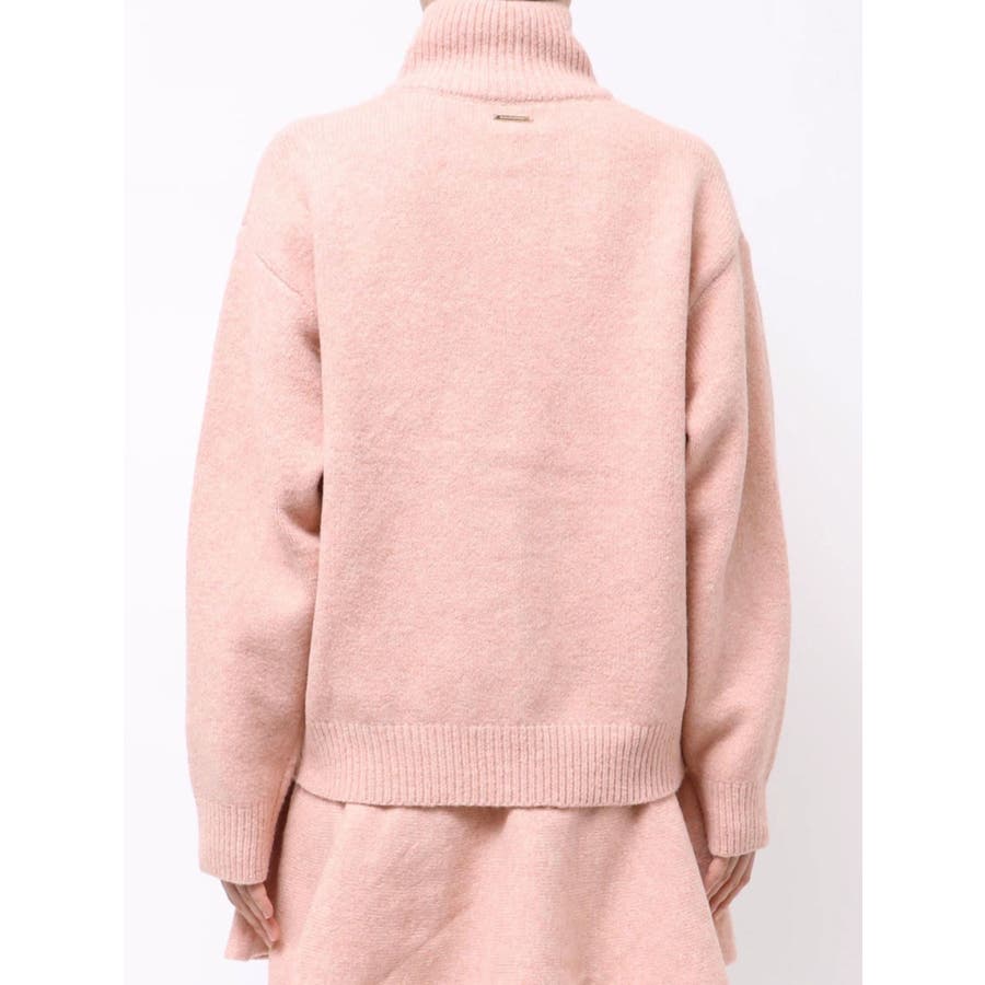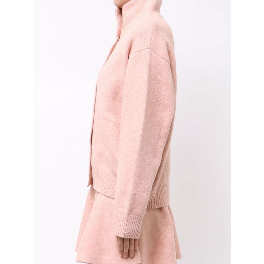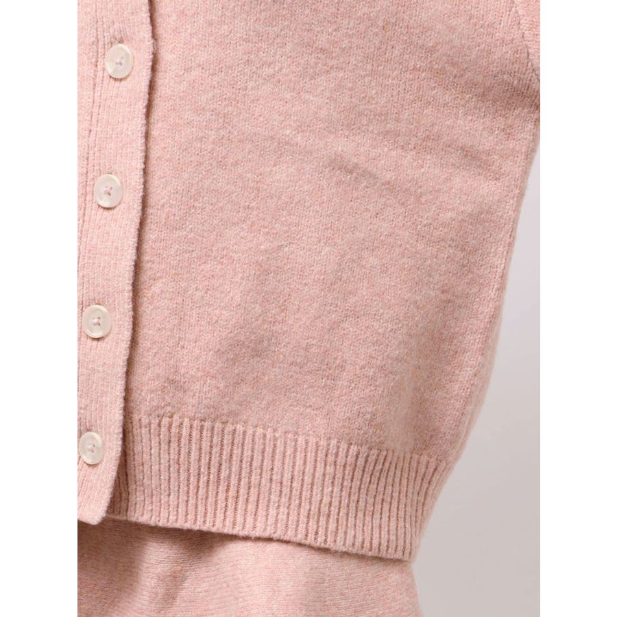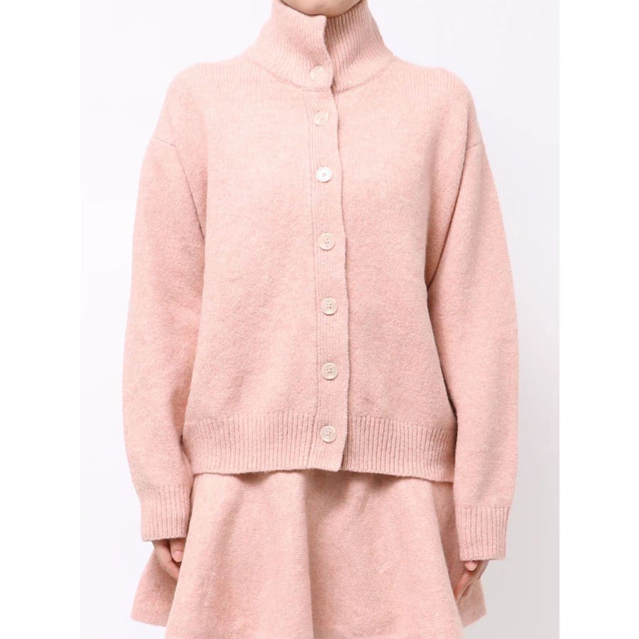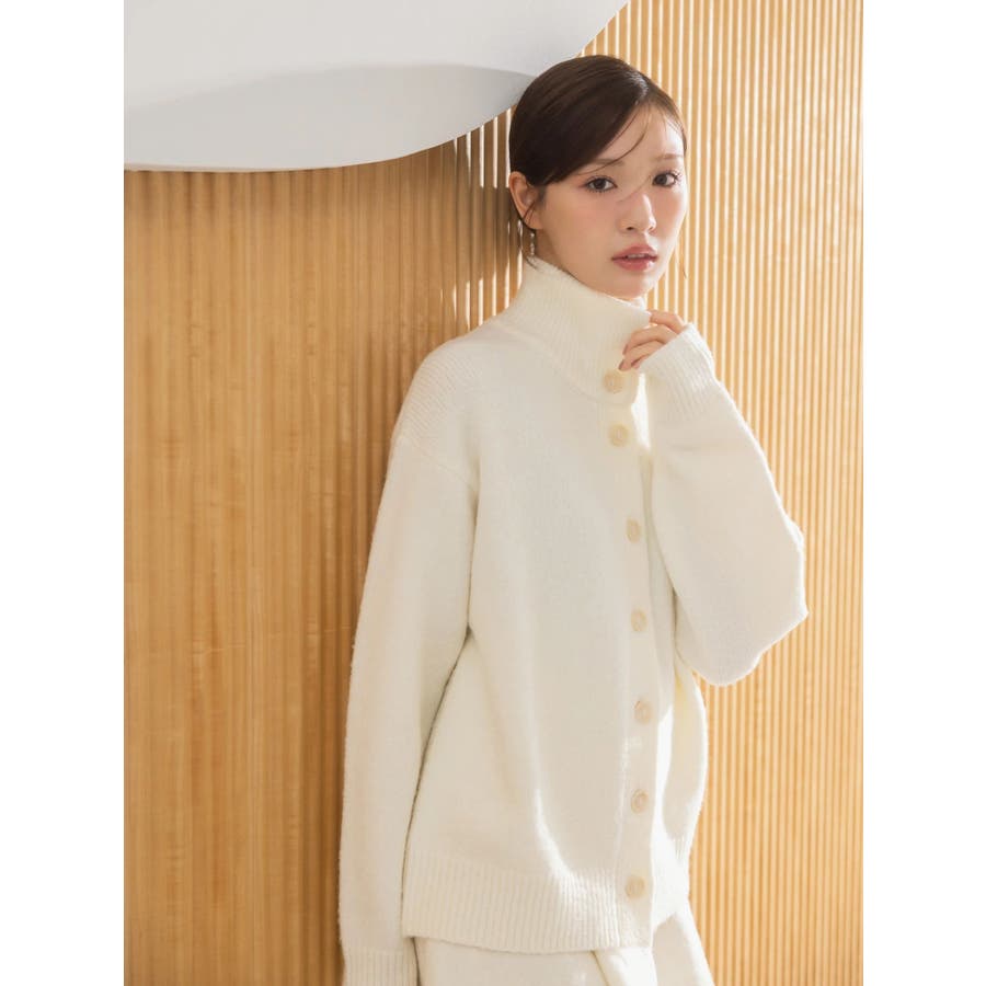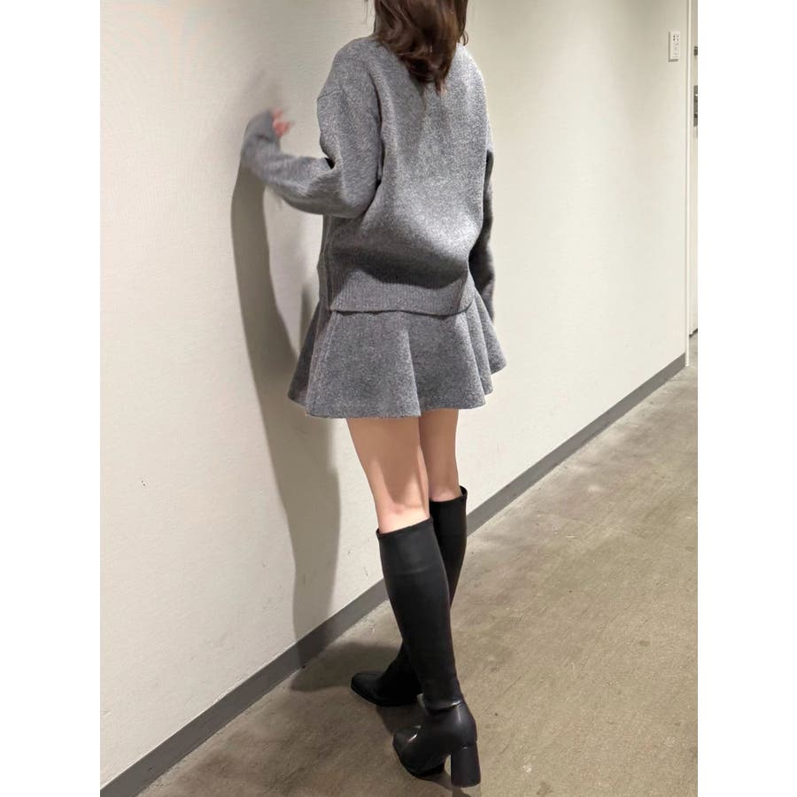 オーバーカーディガンとニットミニスカートのセットアップ。メランジ調の糸がトレンド感あるアイテムです。衿はハイネックとしても、折り返して衿のようにしてもご着用いただけます。スカートは程よく広がるミニマーメイドシルエットになっており、脚の細見え効果抜群です。▼スタイリング セットアップはもちろん、別々のアイテムとしてもご使用いただけます。アウターはチェスターコートやダウンなどとの合わせは抜群、ロービングチェックのジャケットと合わせても◎カーディガンは、ナローシルエットスカートの上にサラッと羽織ることでヒップ周りの体型カバーにもなります。ふわっとしたシルエットを作り出しつつ、ボトムにかけてキュッとしたシルエットのスタイリングが完成します。中にアメスリブラウスをインして、ツイードショートパンツ合わせも◎※着用画像は全てサンプルです。※アイスのボタンカラー、サンプルより濃いブラウンになります。※SM着丈差1.5cm