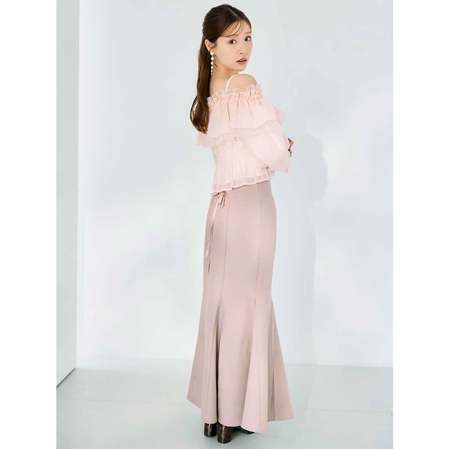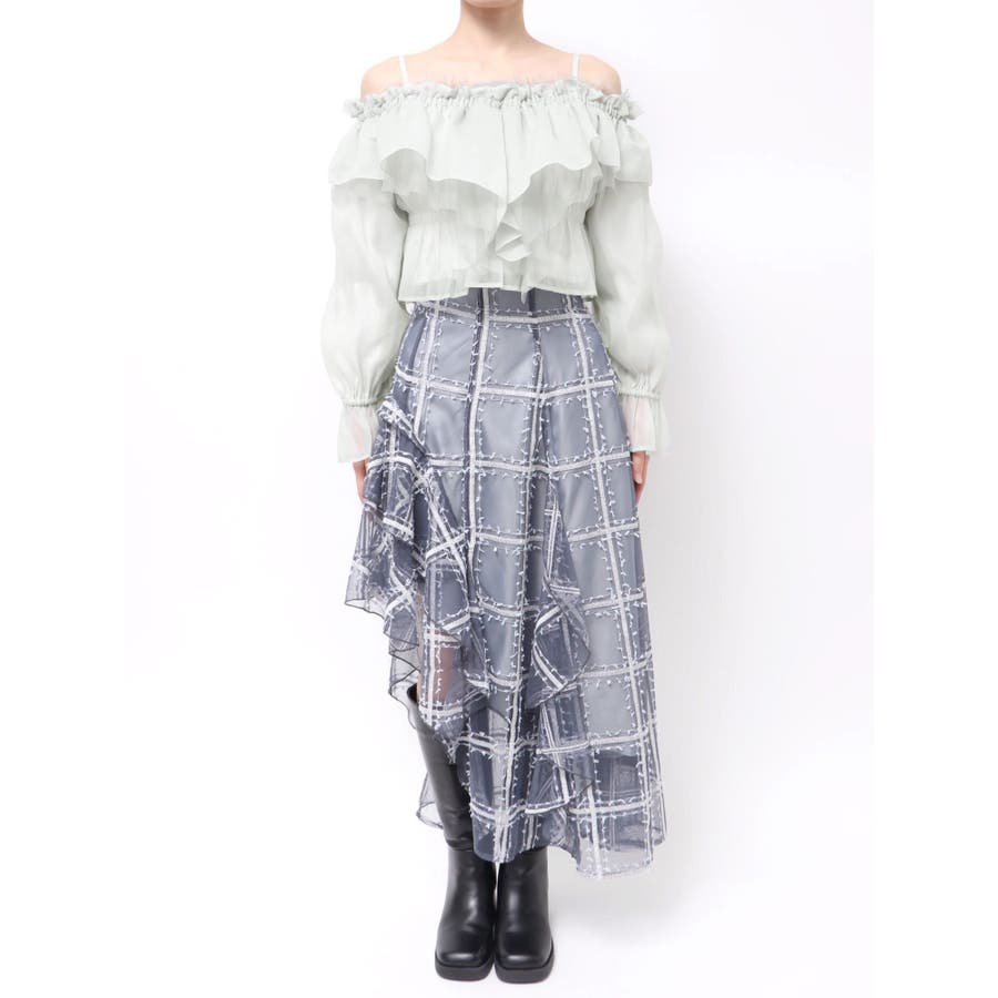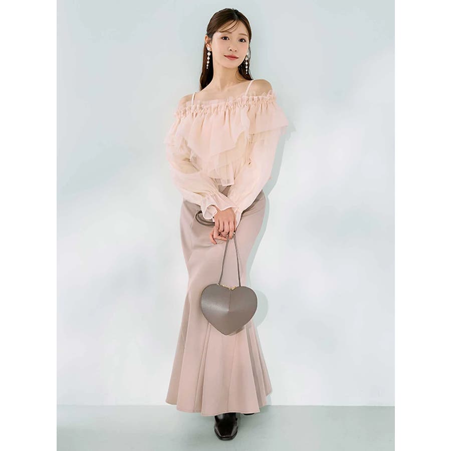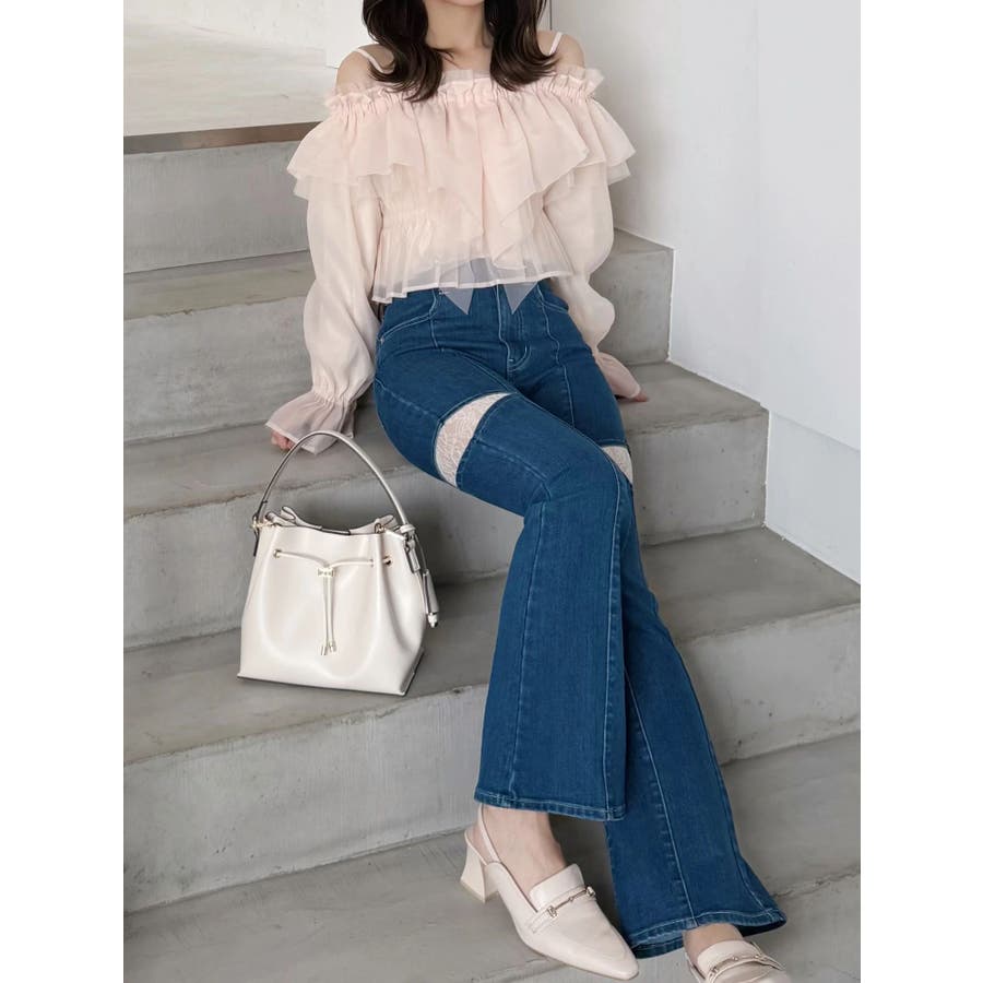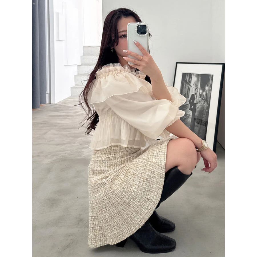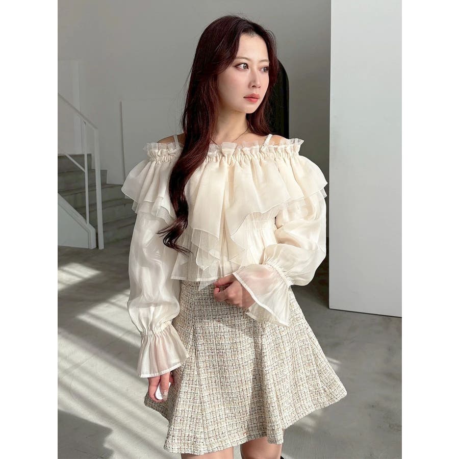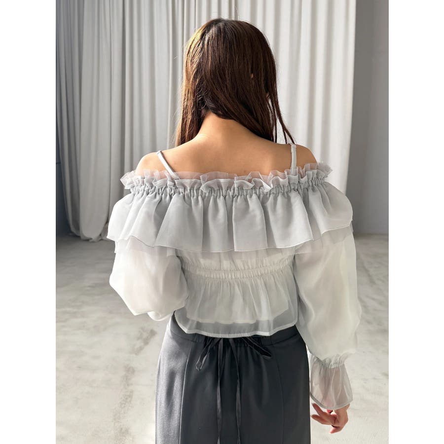 オフショルラッフルブラウス