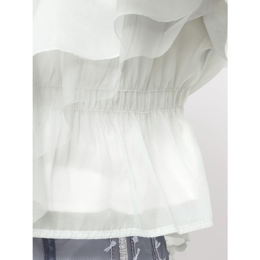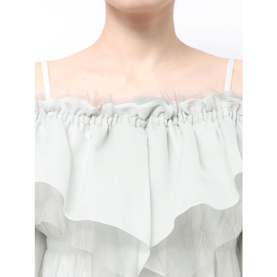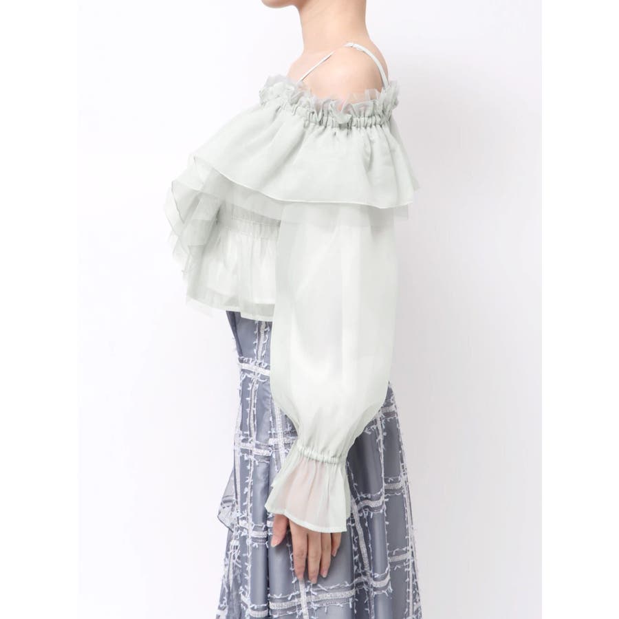 軽やかで華やかな春にぴったりのオフショルブラウス。 程よい透け感のオーガンジーとチュールを2枚重ねにしたラッフルを贅沢にあしらい、動くたびにふわっと揺れる立体感が印象的です。 胸元にはラッフルをたっぷりと施しているため、着るだけで“映え感”を叶えてくれる一枚。 フェミニンながら上品にまとまる、春の主役級トップスです。 さらに、安心して着られる肩紐付き&アジャスターで長さ調節も可能。 裏地もしっかり付いているので、オフショルでも気負わず着こなせるのが嬉しいポイントです。 ▼スタイリング デニムでカジュアルに、スカートでよりフェミニンにと、幅広いスタイリングと相性抜群。 春のお出かけやイベントシーンにもおすすめの華やぎアイテムです。 ※ミントの裏地はもう少し黄味が抑えられます。※詳細画像が正しい仕様となります。※着用画像はフラッシュの加減で実際の製品と色味等が異なる場合がございますので、生地のズームアップ画像をご確認ください。※ご利用の端末画面の設定により実際の商品と色味が異なる場合がございます。【商品特徴】透け感:あり伸縮性:なし生地の厚さ:普通サイズ感:普通裏地:ありポケット:なし