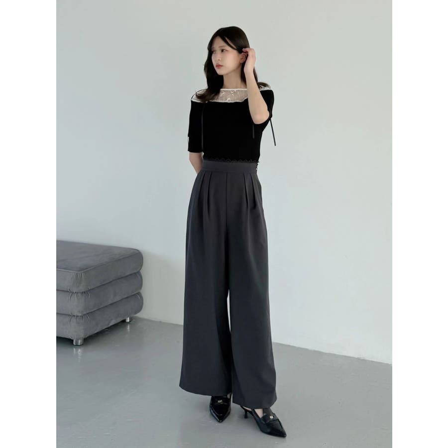 レースレイヤードタックパンツ