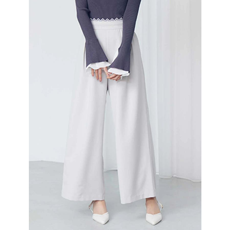 繊細なレースをウエストにドッキングし、まるでレイヤードしているかのようなデザインパンツ。レース部分には上品なスカラップをあしらい、甘さを抑えつつも女性らしさを引き立てます。 インタック入りのワイドーストレートシルエットが脚のラインをすっきりと見せ、さりげなくスタイルアップを叶える一枚。 軽やかな素材感と計算されたバランスで、大人の余裕を感じさせる仕上がりに。▼スタイリング シンプルなリブニットやブラウスを合わせて、ウエストレースを主役にしたスタイリングがおすすめ。足元はヒールサンダルやパンプスで合わせると、より上品で洗練された印象に仕上がります。※実際にお届けする商品と仕様やサイズが異なる場合がございます。 また、生産の都合上、お届け時期が前後する場合がございます。※画像は全てサンプルです。