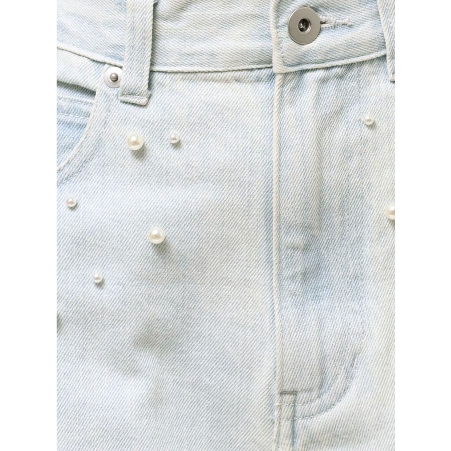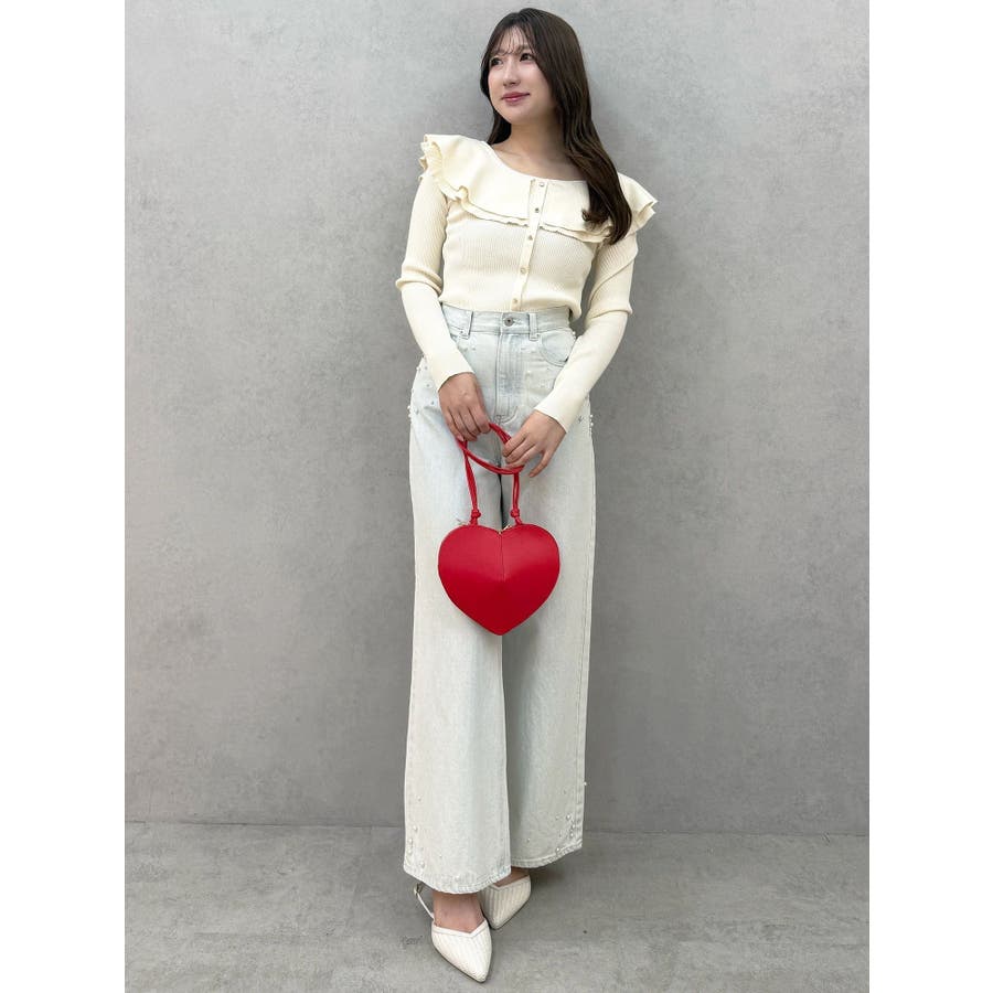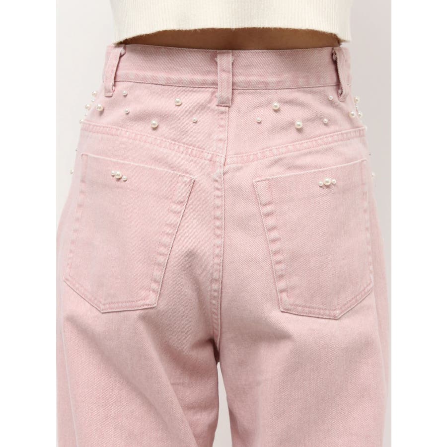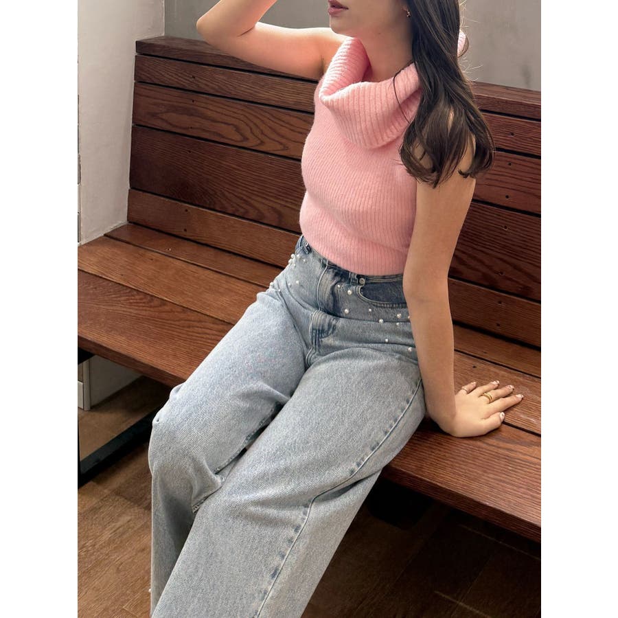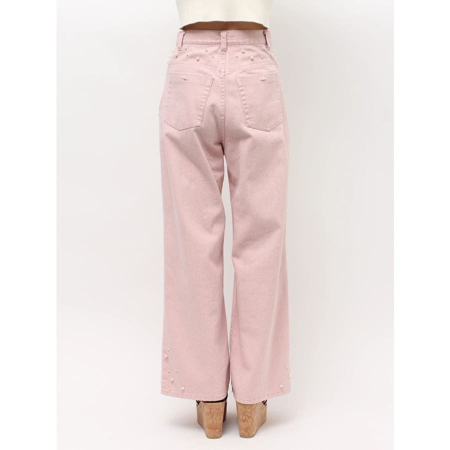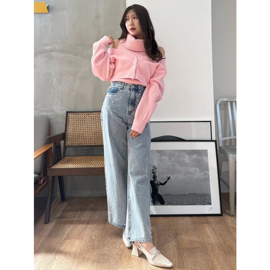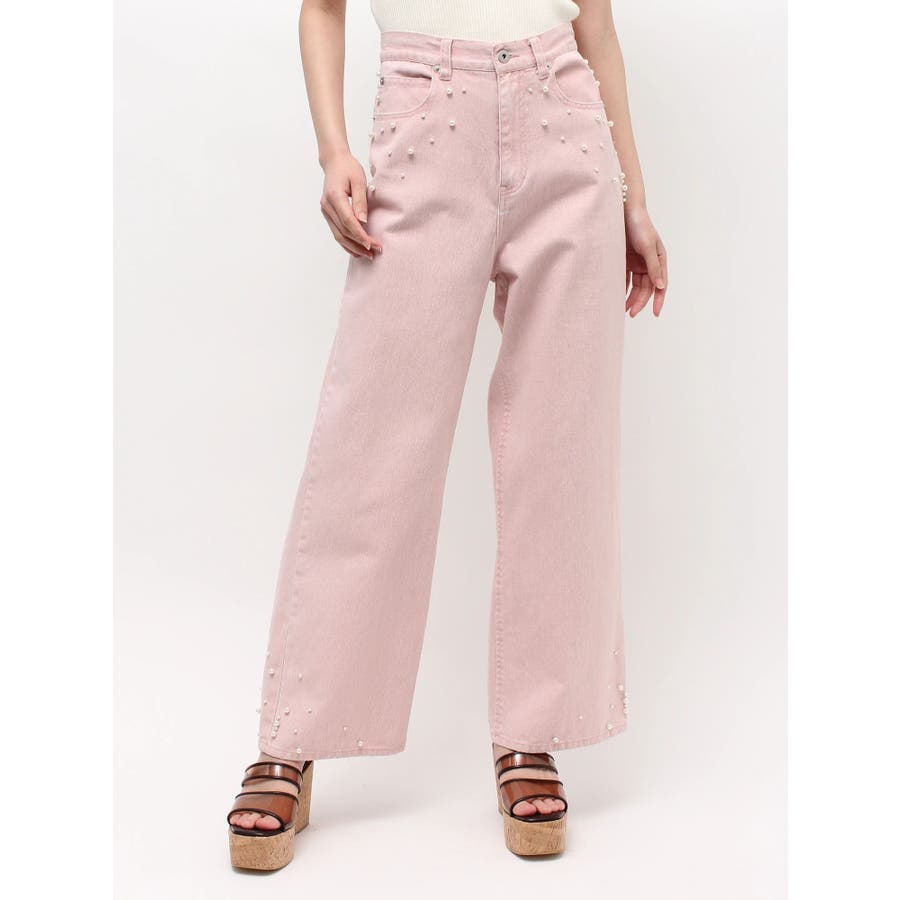 パールがウエスト周りと裾に打ち込まれている贅沢なハイウエストデニム。腰回りがすっきりとするハイウエストデザインなので脚長効果抜群。ぐるっと一周どこから見てもパールがキラッと輝くデザインなので、写真映え間違いなし◎▼スタイリング ジャケットと合わせてフェミニンカジュアルなスタイリングがおすすめ。今年はバックドレープジャケットと合わせるのがおすすめ。クロップドニットやポロニットと合わせてトレンド感あるスタイリングが楽しめます。※着用画像は全てサンプルです※SM着丈差4.5cm