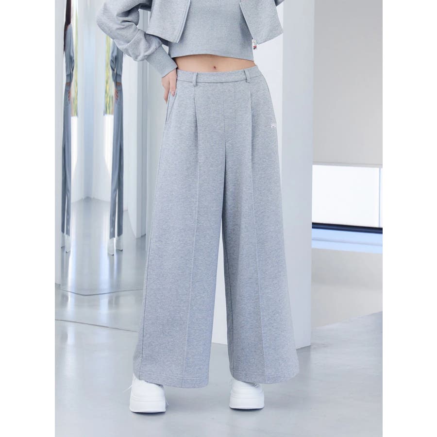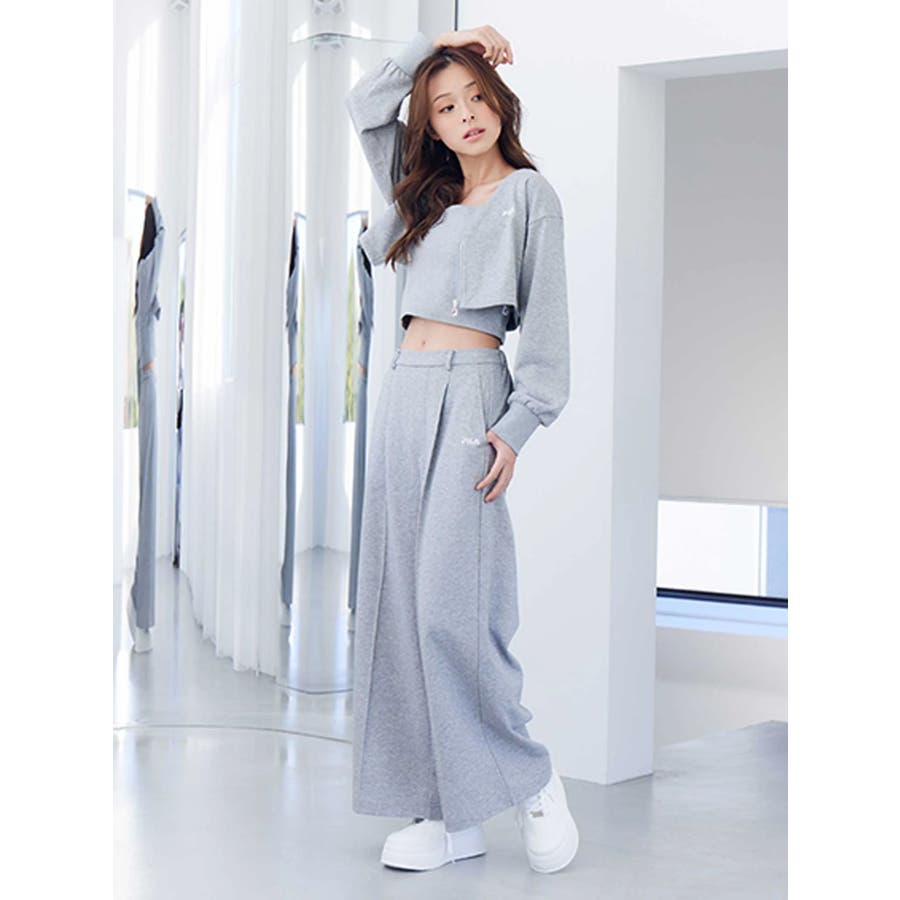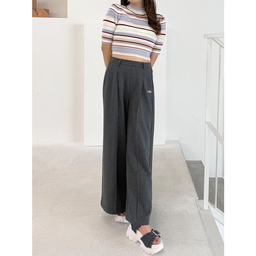 上品な美しさと洗練された可愛さを提案するレディースブランド 「MERCURYDUO(マーキュリーデュオ)」とイタリア生まれのスポーツライフスタイルブランド「FILA(フィラ)」の別注コレクションが登場。センターシーム仕様やフェイクの前開きステッチ、ベルトループが裏毛パンツをキレイ目に見せてくれるこだわりの1本です。ウエストゴムで穿くタイプなので着心地も抜群!裾に向かって広がるワイドシルエットも今っぽい着こなしになるポイントです。左脇ポケット近くのFILAロゴ刺繍が目を引くアクセントになっています。刺繍カラーは同じシリーズの裏毛アンサンブル同様、グレーにはオフとピンク、チャコールグレーにはオフとラベンダーのフェミニンな配色で施されています。▼スタイリング同じ裏毛で作られているアンサンブルとのセットアップコーディネートはもちろん、ポロニットやアメスリニットとの相性もぴったりです!※実際にお届けする商品と仕様やサイズが異なる場合がございます。また、生産の都合上、お届け時期が前後する場合がございます。※画像は全てサンプルです。※詳細画像が正しい仕様となります。※着用画像はフラッシュの加減で実際の製品と色味等が異なる場合がございますので、生地のズームアップ画像をご確認ください。※ご利用の端末画面の設定により実際の商品と色味が異なる場合がございます。【商品特徴】透け感:なし伸縮性:なし生地の厚さ:普通サイズ感:普通裏地:なしポケット:あり(前)