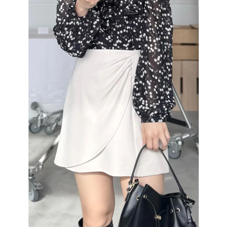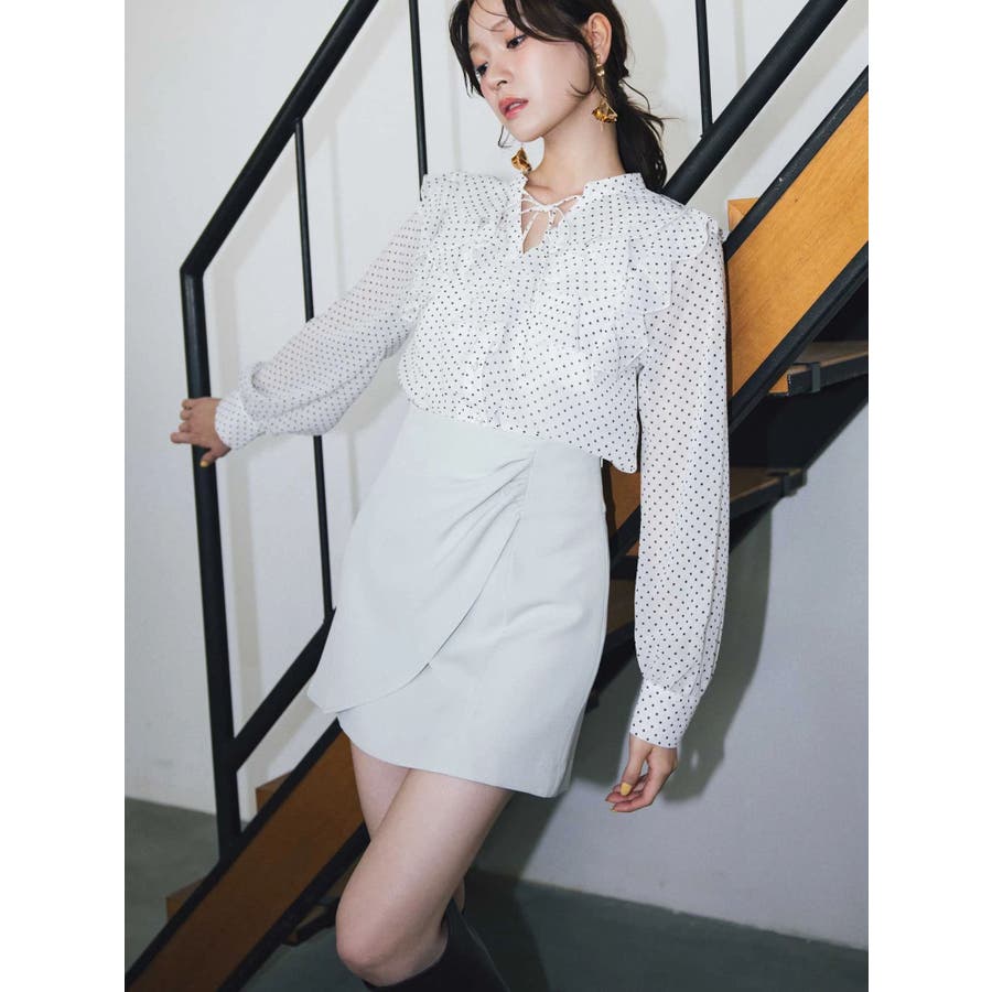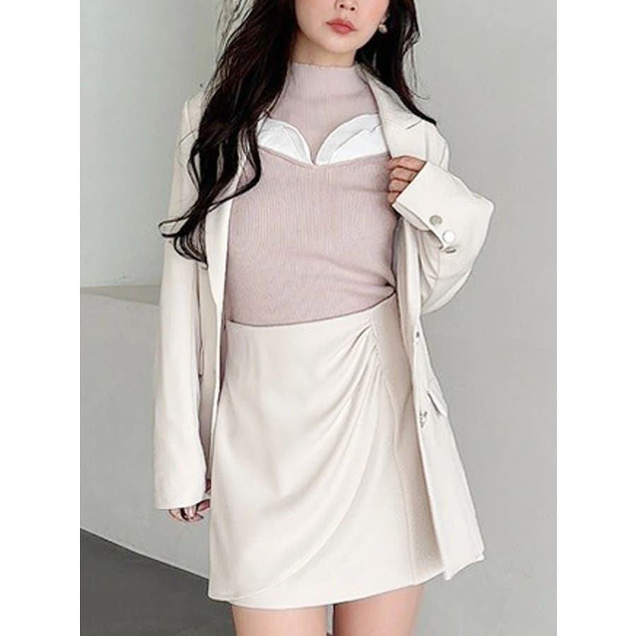 サイドから流れるドレープがスタイルアップを叶えてくれるミニスカパン。 セットアップ着用可能なジャケットと合わせても、ドレープがしっかり見えるようデザインしております。 スカート見えですが、内側に裏地のパンツがあるため、ミニ丈でも安心して穿きやすいデザインです。 ▼スタイリング セットアップ着用可能なバックドレープジャケット合わせがおすすめ。 トップスはラッフルブラウスからぴたっとしたニットまで幅広くコーディネートしていただけます。 ※着用画像は全てサンプルです。 ※SM着丈差1.5cm