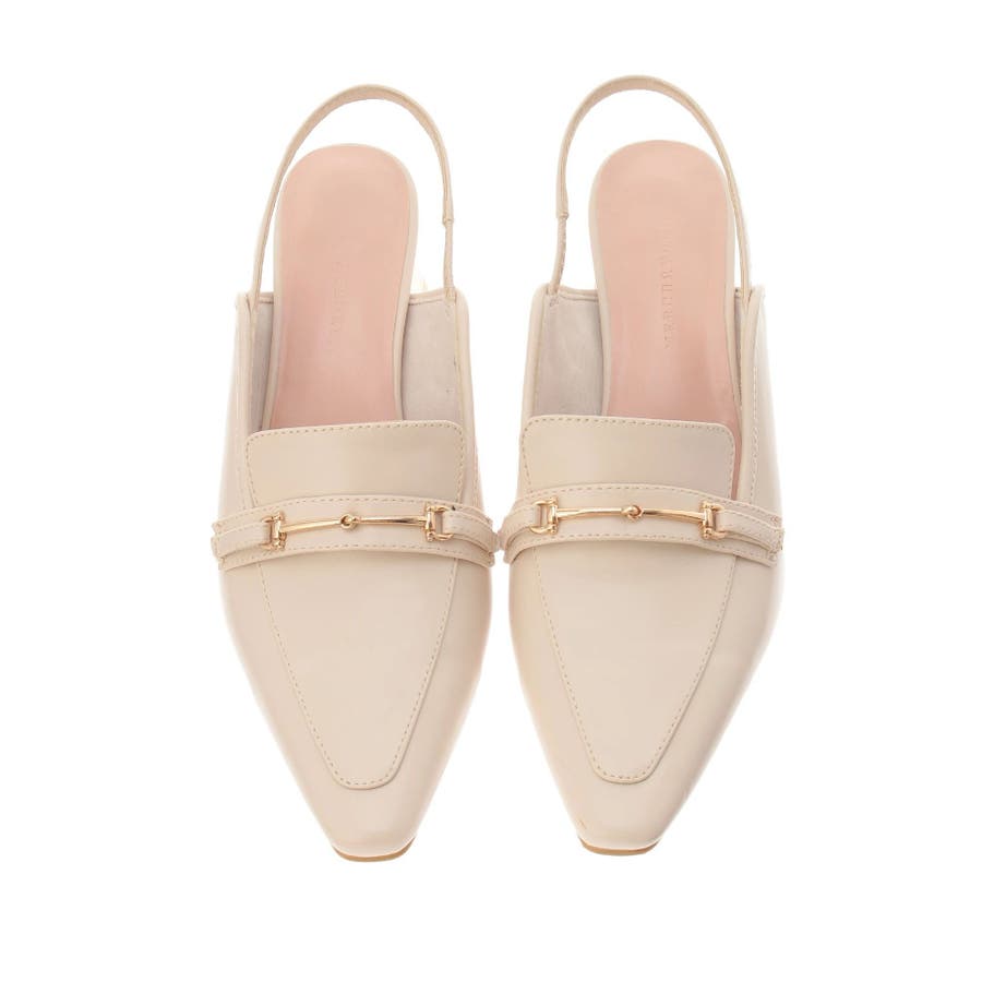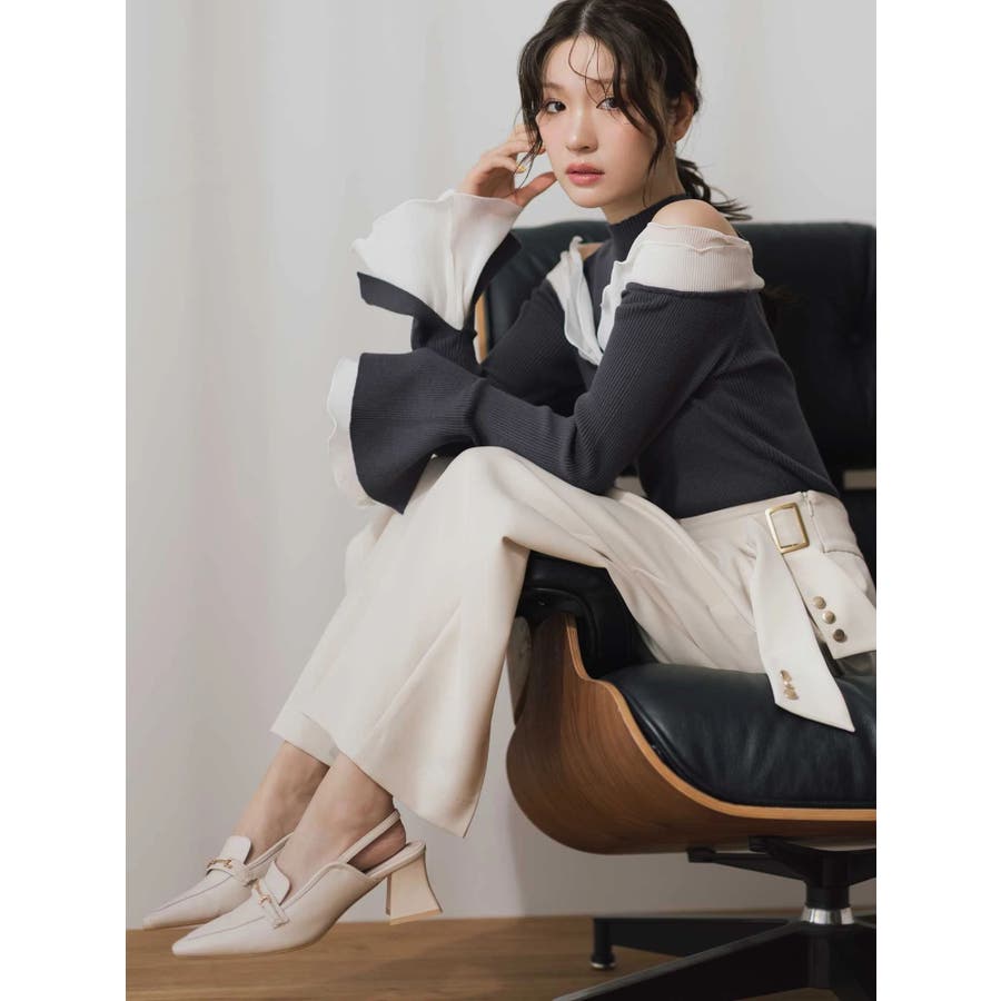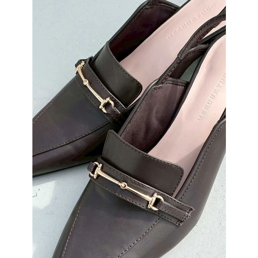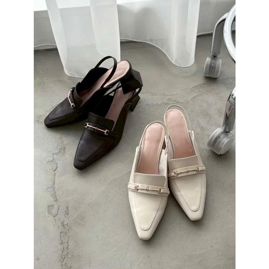 ローファーデザインをミュールに落とし込みました。 デザインヒールとポインテッドトゥで女性らしさを演出。 パンツの足元や、ワンピースの足元など、春のスタイリングに洗練さをプラスするアイテムです。 ※画像は全てサンプルです。