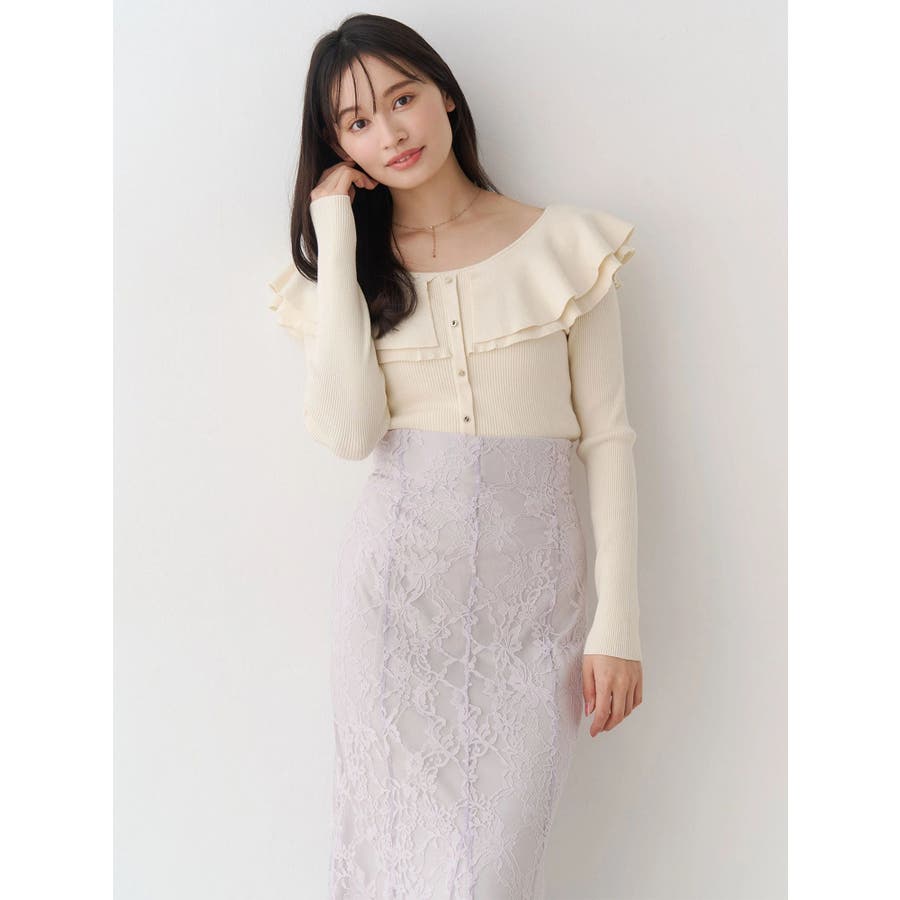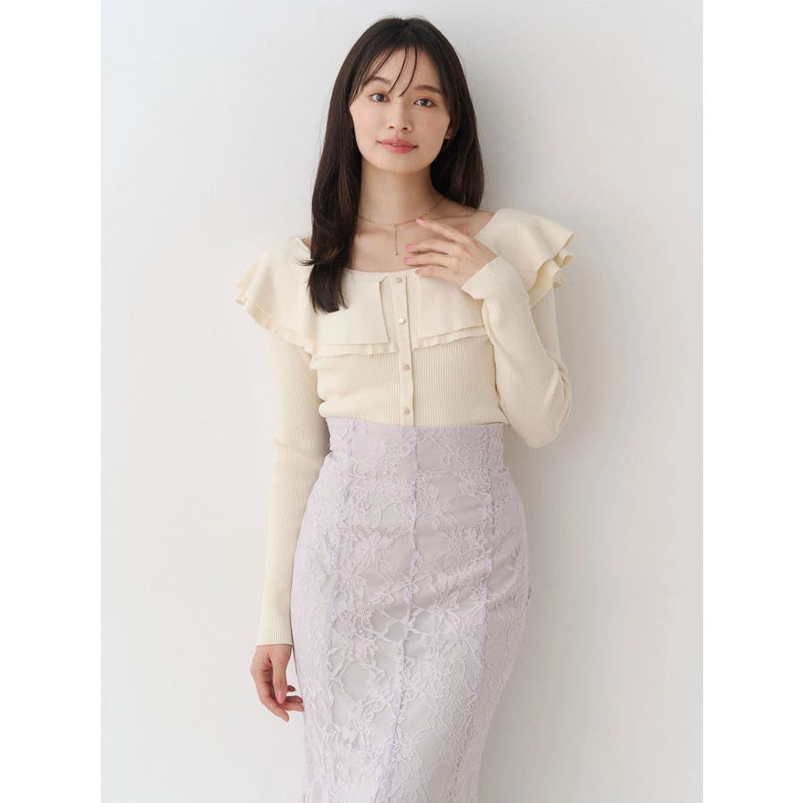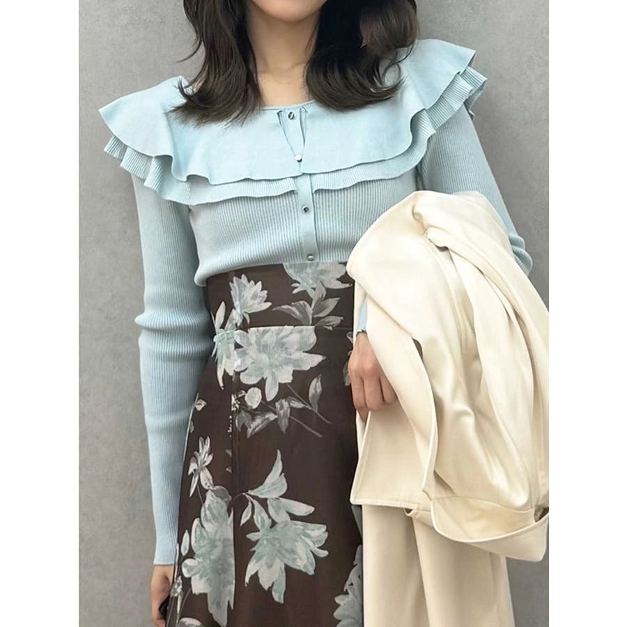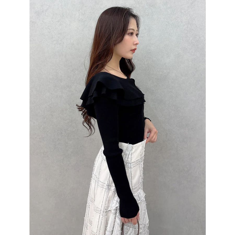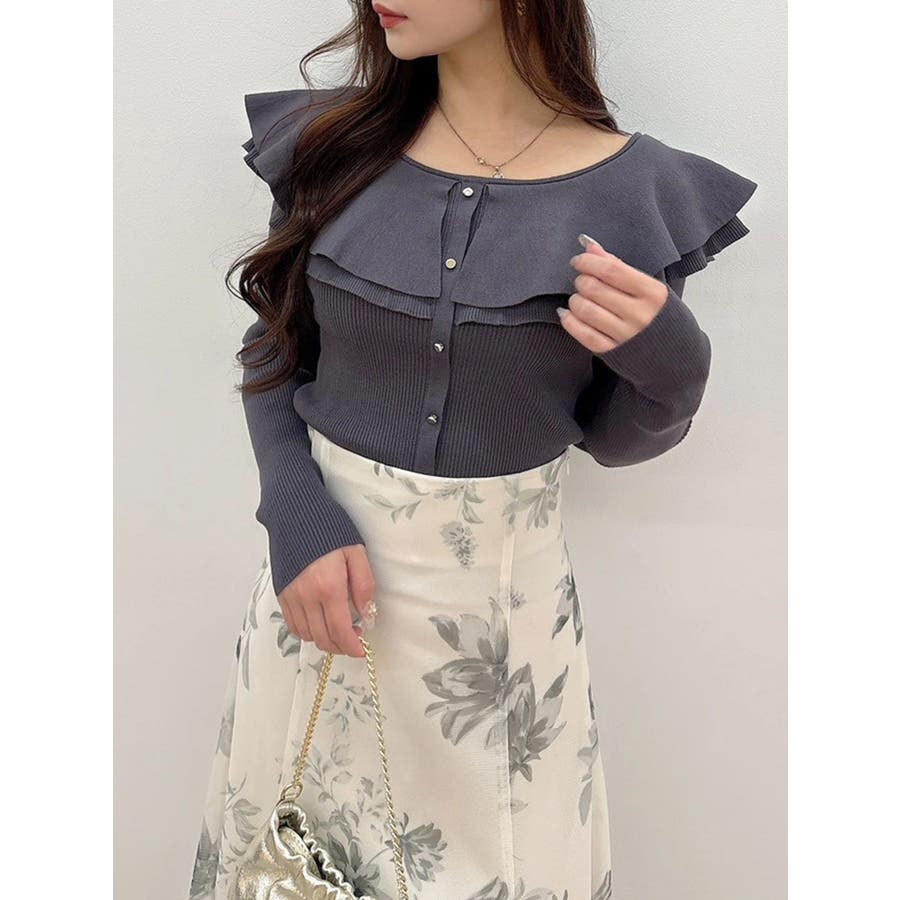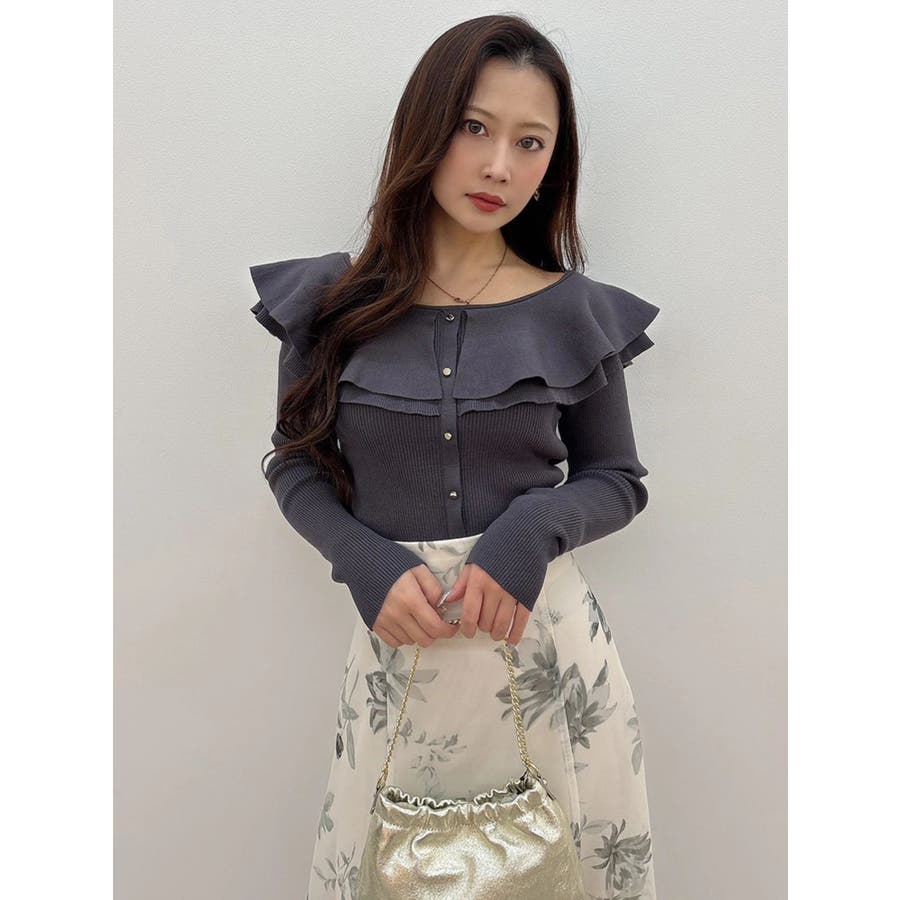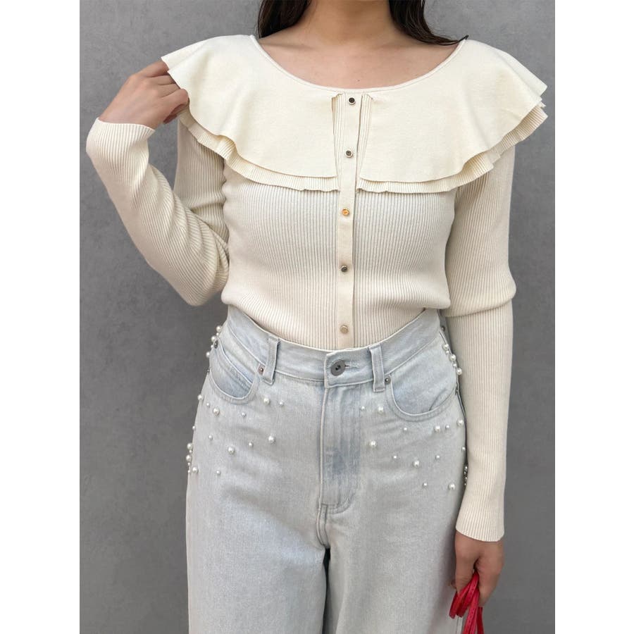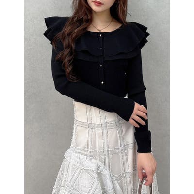編み柄の異なる2枚の襟を重ねたニットです。ゆらゆらと揺れる襟が女性らしい雰囲気に仕上がっています。金ボタンは少し小さめのものを使うことで華奢な印象を演出しています。前後2way仕様です。▼スタイリング襟にポイントがありますが同じ素材なので、華やかなフレアスカートとの相性がぴったりです。すっきりとデニムパンツで合わせるのも襟のおかげでシンプルになりすぎずおすすめです!※着用画像はフラッシュの加減で実際の製品と色味等が異なる場合がございますので、生地のズームアップ画像をご確認ください。※ご利用の端末画面の設定により実際の商品と色味が異なる場合がございます。【商品特徴】透け感:なし伸縮性:あり生地の厚さ:普通サイズ感:普通裏地:なしポケット:なし