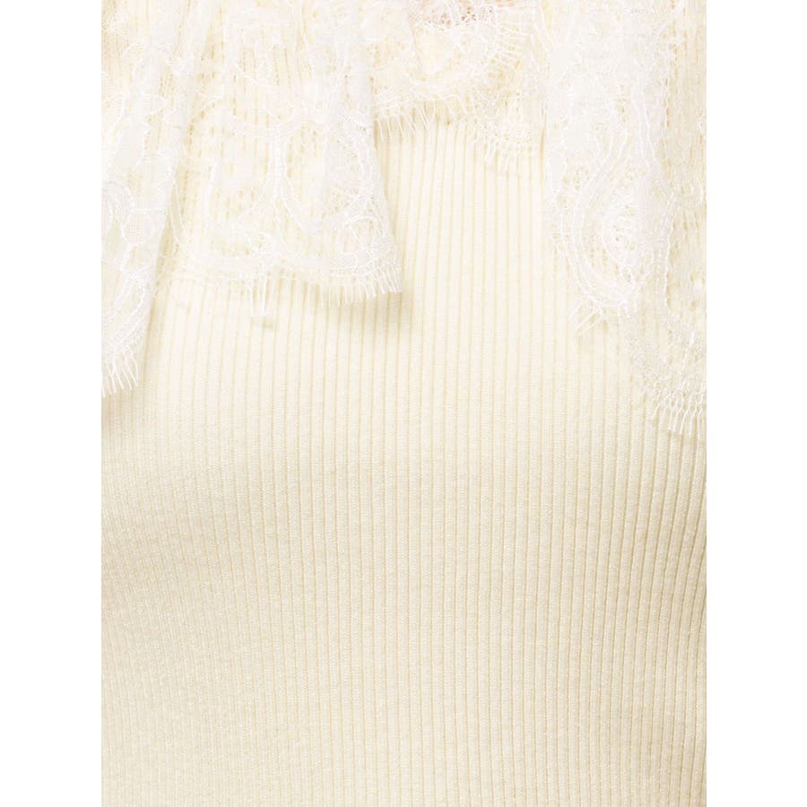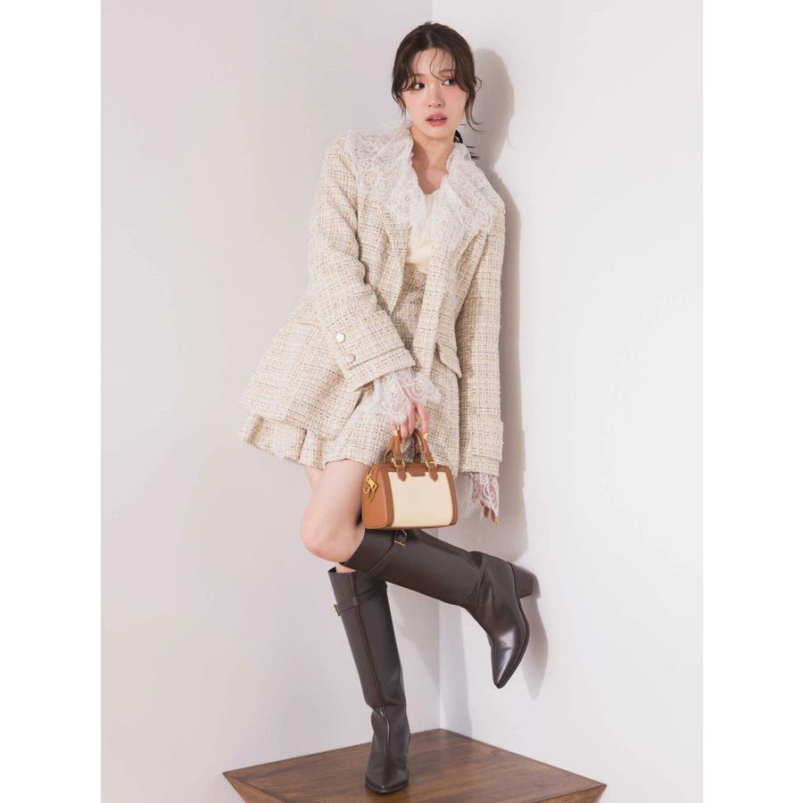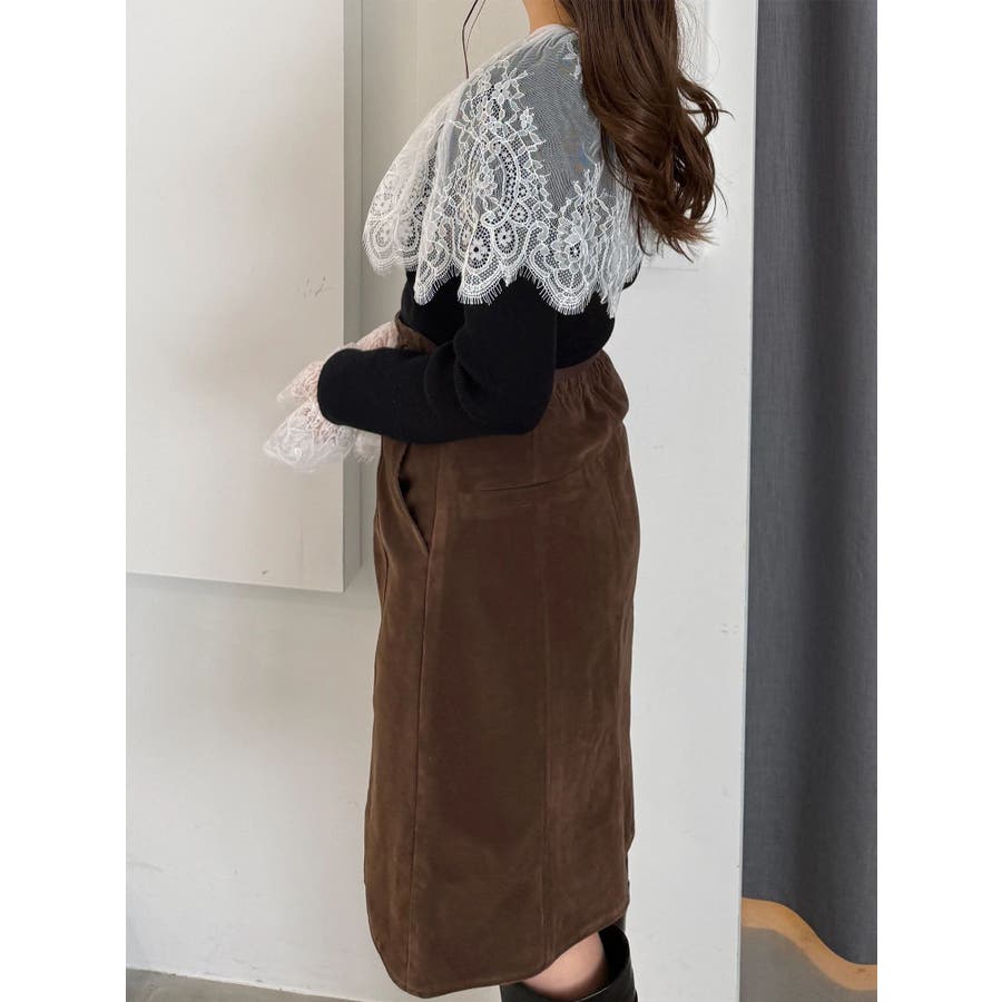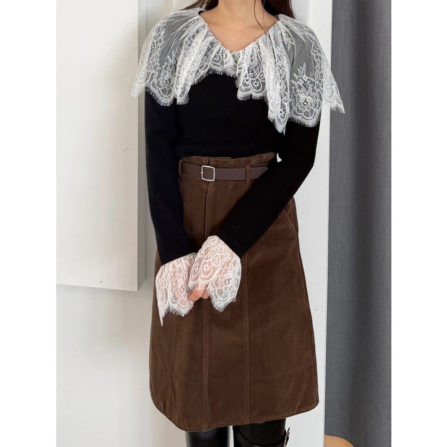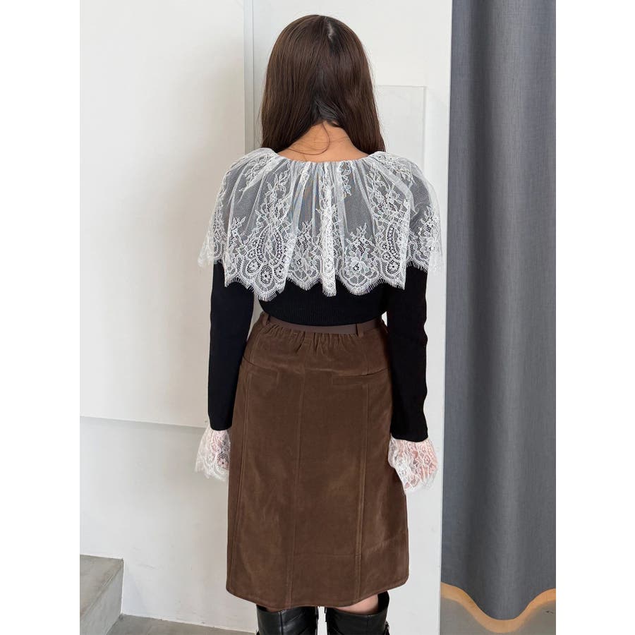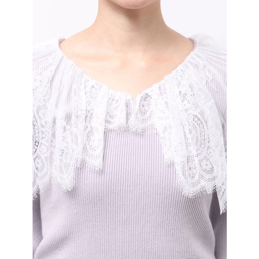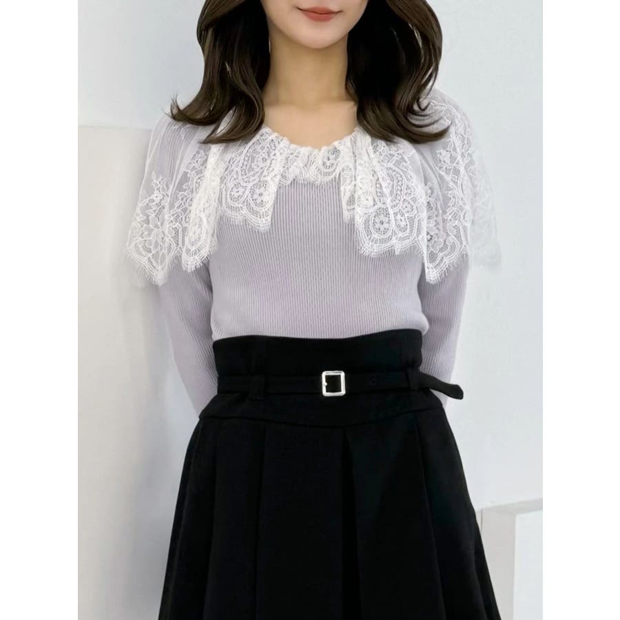 繊細なスカラレースを大きな襟のようにあしらった、ロマンティックなスタイリングにぴったりなコンパクトリブニット。 襟にはたっぷりギャザーを寄せ、クラシカルで可憐な印象に仕上げました。 袖口にも同じレースを贅沢に使用し、動くたびにふわっと揺れるフェミニンなディテールが魅力。 さらに袖のレースは取り外し可能なので、シーンや気分に合わせてアレンジを楽しめます。 身頃のリブニットとオフホワイトのレースとの配色が、春らしい軽やかさを引き立ててくれます。 ▼スタイリング トレンドのショートジャケットやツイードジャケットのインナーに合わせて、襟レースを覗かせるのが今季のおすすめ。 フェミニンなフレアスカートで上品にまとめても、デニムでカジュアルダウンしても◎ 首元と袖口から覗くレースが、どんなスタイリングにもフェミニンなアクセントを添えてくれます。 ※画像は全てサンプルです。 ※アイボリーのニットの色はもう少し薄くなります。
