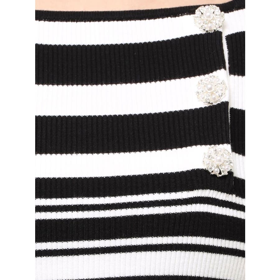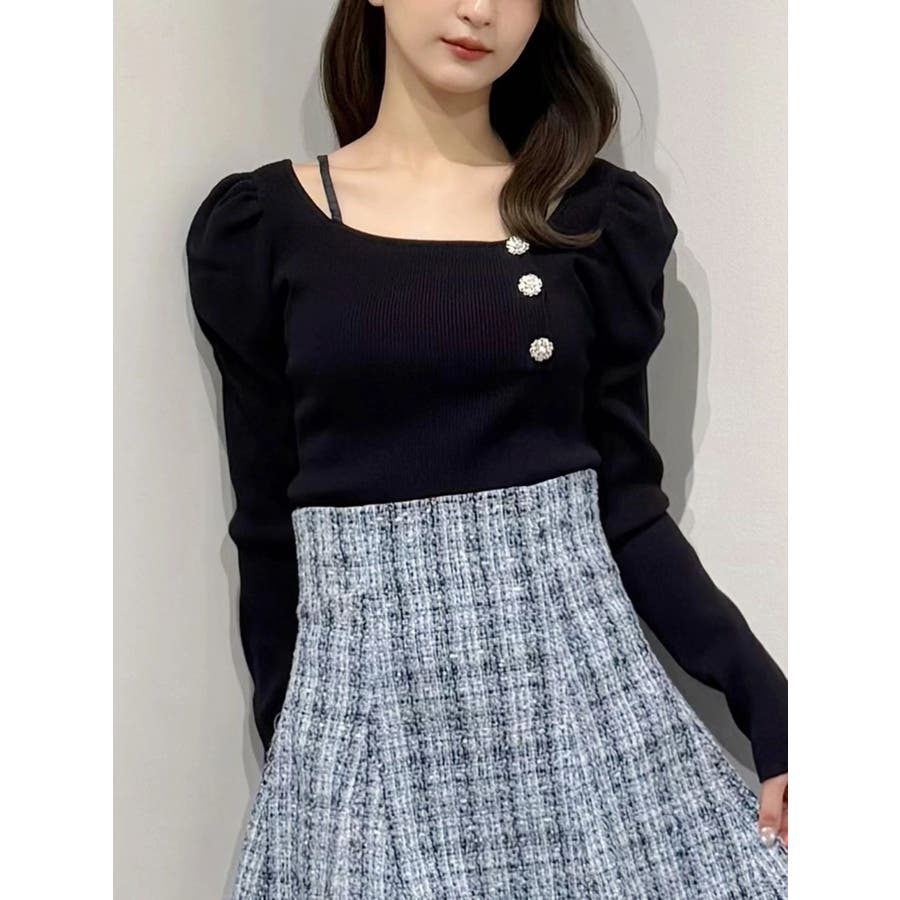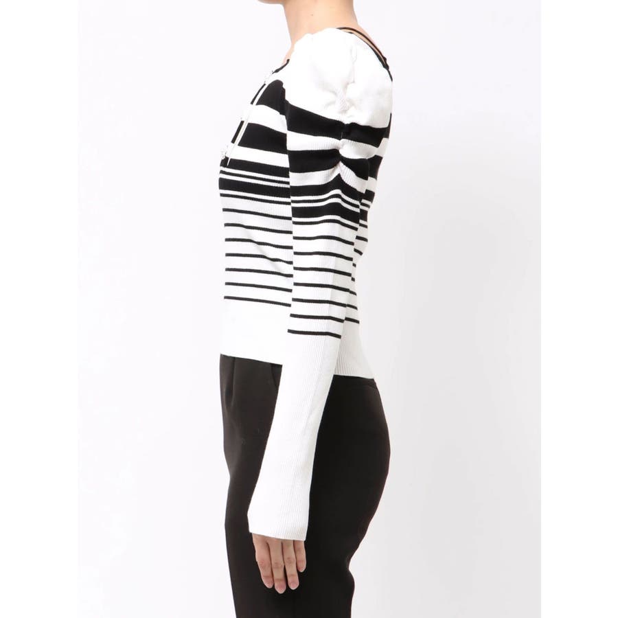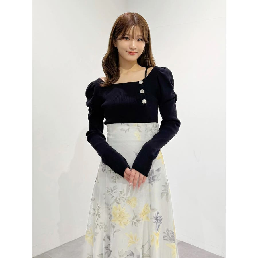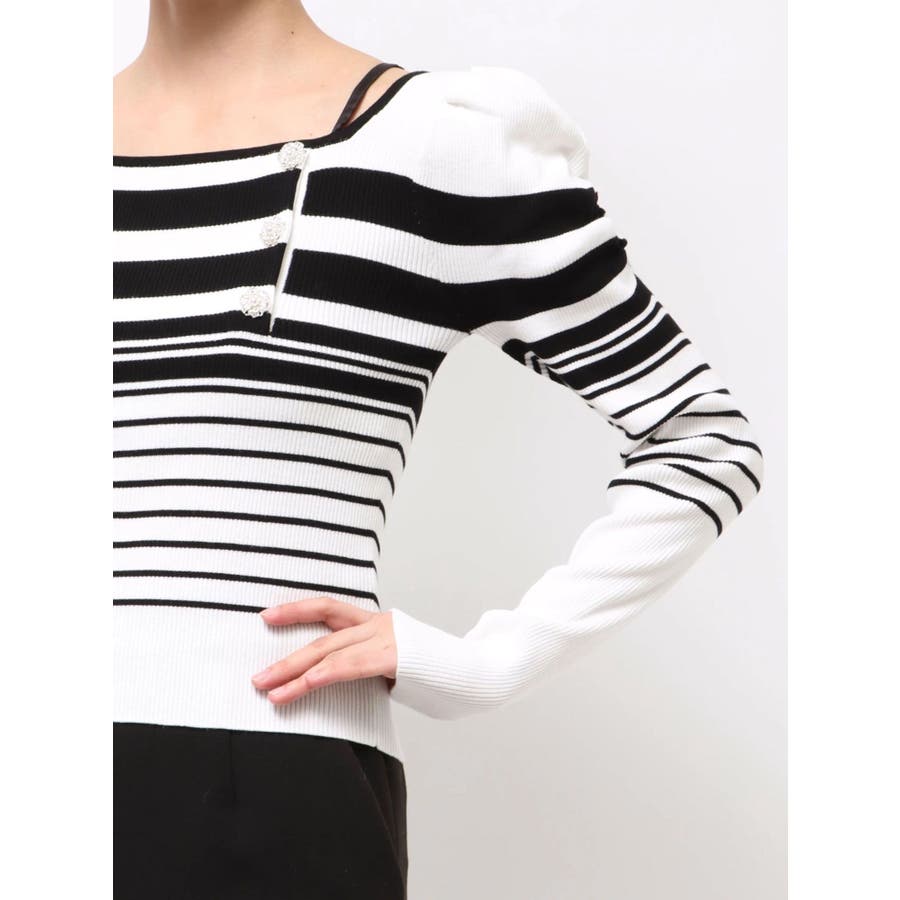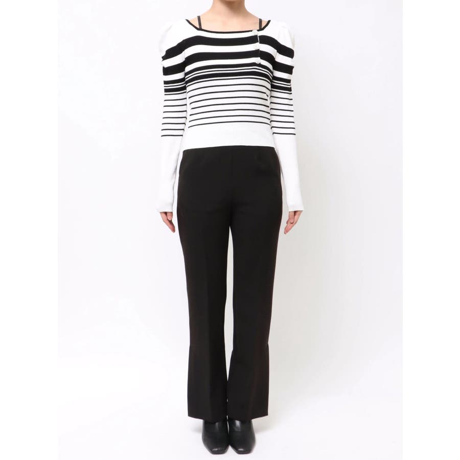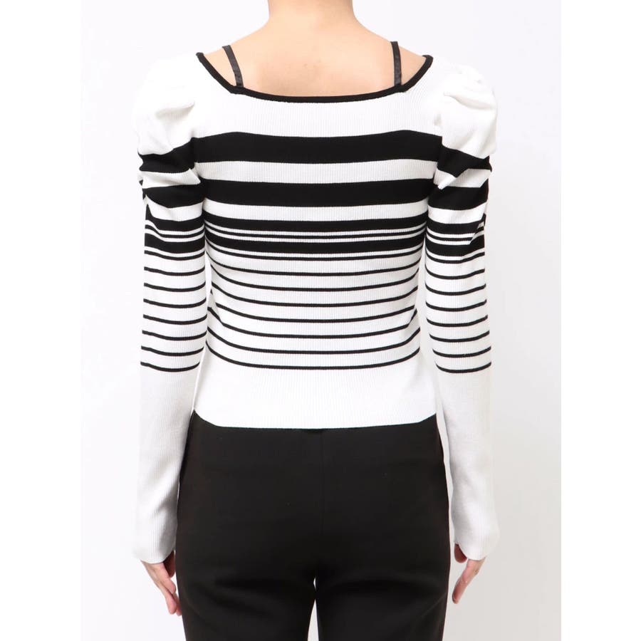サイドにキラキラしたビジューが女っぽさを格上げしてくれるパワショルニット。 サテンの華奢なナローストラップがデコルテ周りをスッキリと見せてくれます。 ▼スタイリング 華やかな花柄スカートでフェミニンなコーデや、パンツ合わせで女性らしいパンツスタイリングのアイテムとして相性抜群。 デニムと合わせ足元はローファーミュールにすると、デイリーな大人カジュアルコーデに◎ ※着用画像は全てサンプルです。 ※MIXのボーダーのピッチは、バスト付近の太い線はサンプルより1cmほど細くなります。※詳細画像が正しい仕様となります。 ※着用画像はフラッシュの加減で実際の製品と色味等が異なる場合がございますので、生地のズームアップ画像をご確認ください。※ご利用の端末画面の設定により実際の商品と色味が異なる場合がございます。【商品特徴】透け感:なし伸縮性:あり生地の厚さ:普通サイズ感:普通裏地:なしポケット:なし