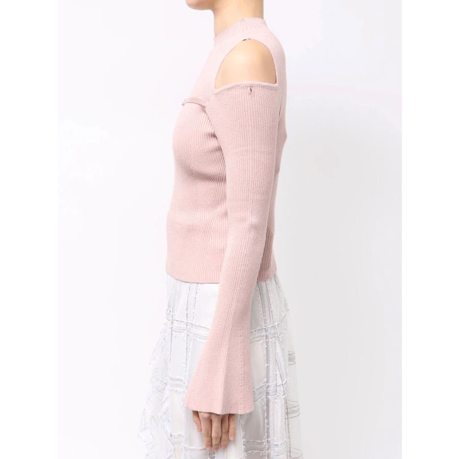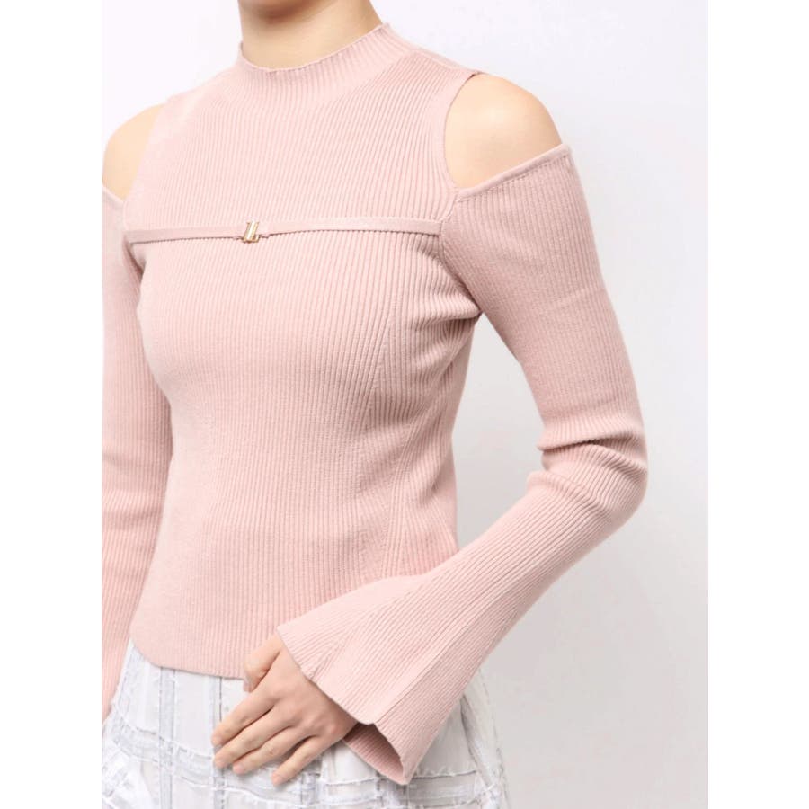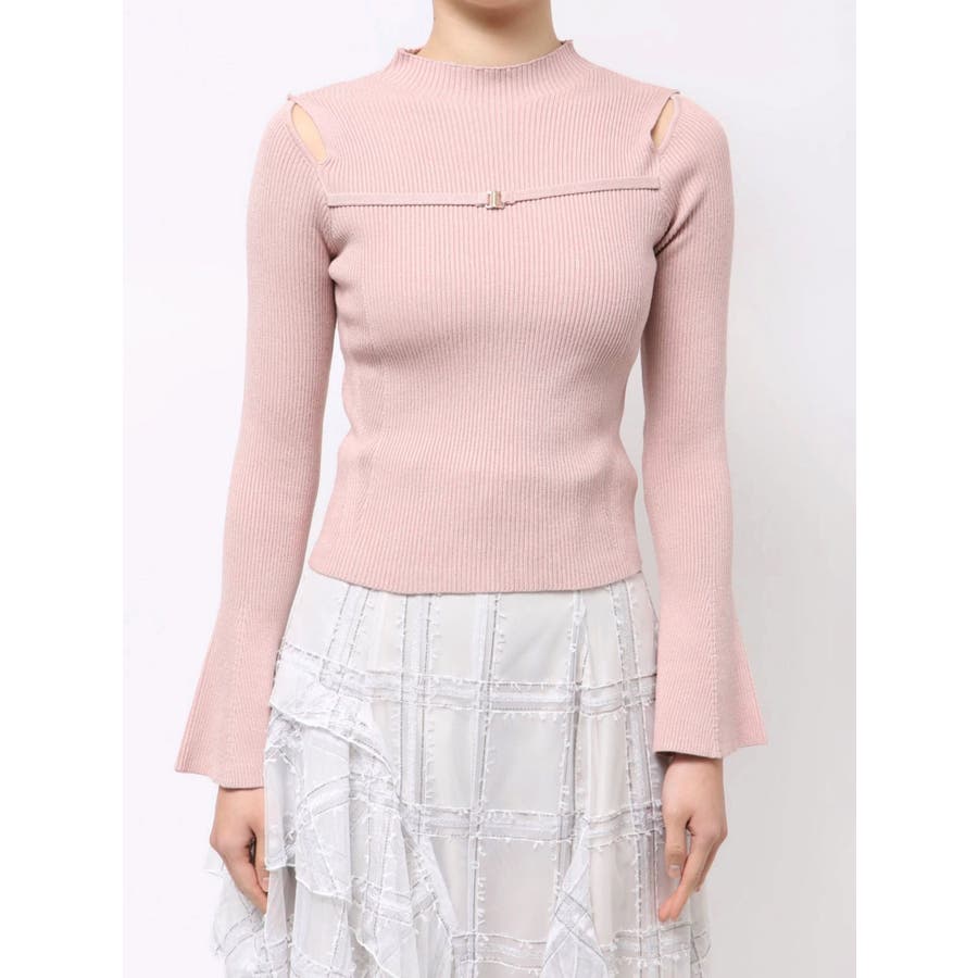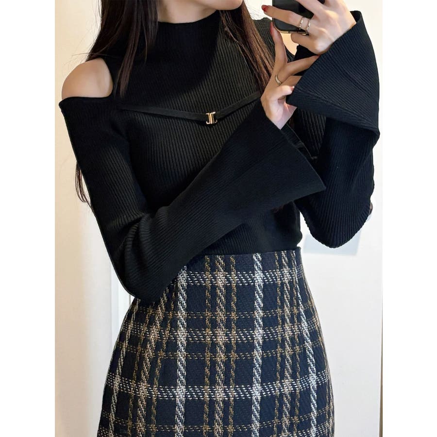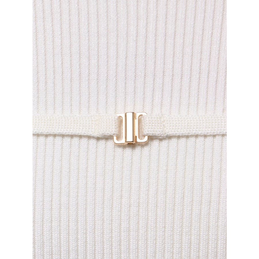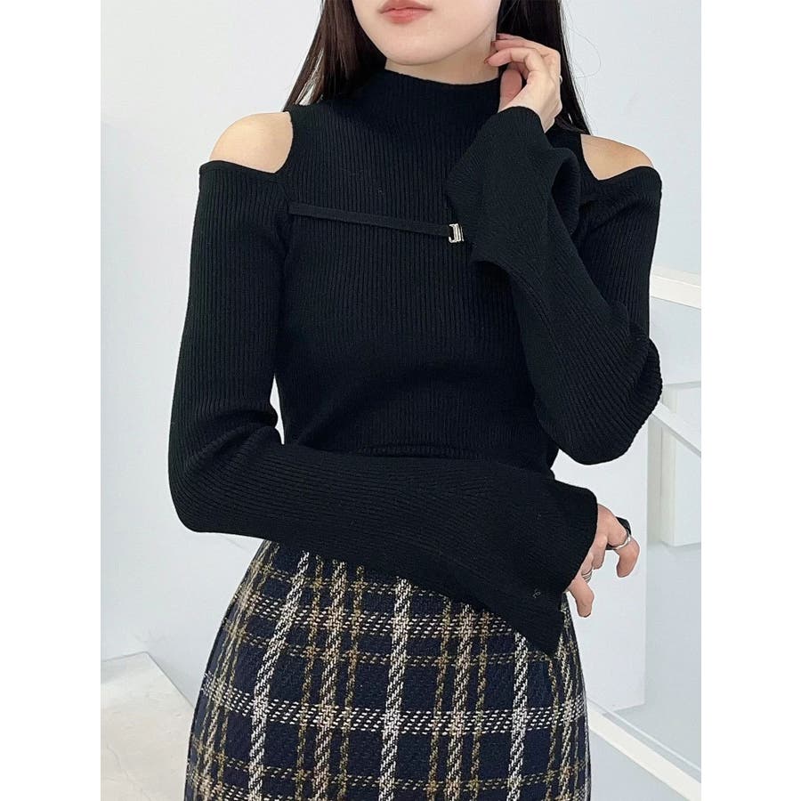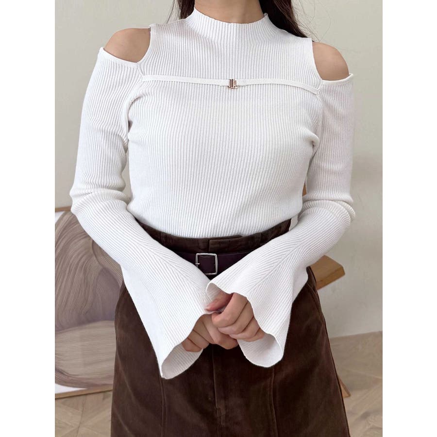 フロントのキラッと輝く金属パーツがシャープな印象のプルオーバーニット。 ショルダーにスリットがあるので、チラッと肌見せができ、抜け感のあるデザインです。 内釦がありスリットを閉じることもできるので、お好みで肌見せを調整できます。 リブ編みなので身体のラインを拾いにくいのも嬉しいポイントです。 ▼スタイリング アウターを羽織っても、フロントの金属パーツが見えてワンポイントにもなるので、羽織合わせもお洒落なニットです。 シンプルなデザインなので、主役級なボトムスとも合わせやすいです。 ※着用画像はフラッシュの加減で実際の製品と色味等が異なる場合がございますので、生地のズームアップ画像をご確認ください。※ご利用の端末画面の設定により実際の商品と色味が異なる場合がございます。【商品特徴】透け感(オフホワイトのみ):あり透け感(その他カラー):なし伸縮性:あり生地の厚さ:薄手サイズ感:細身裏地:なしポケット:なし