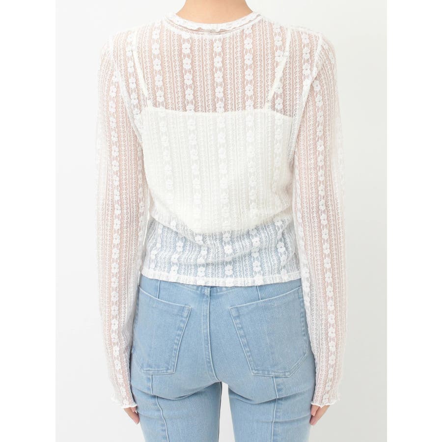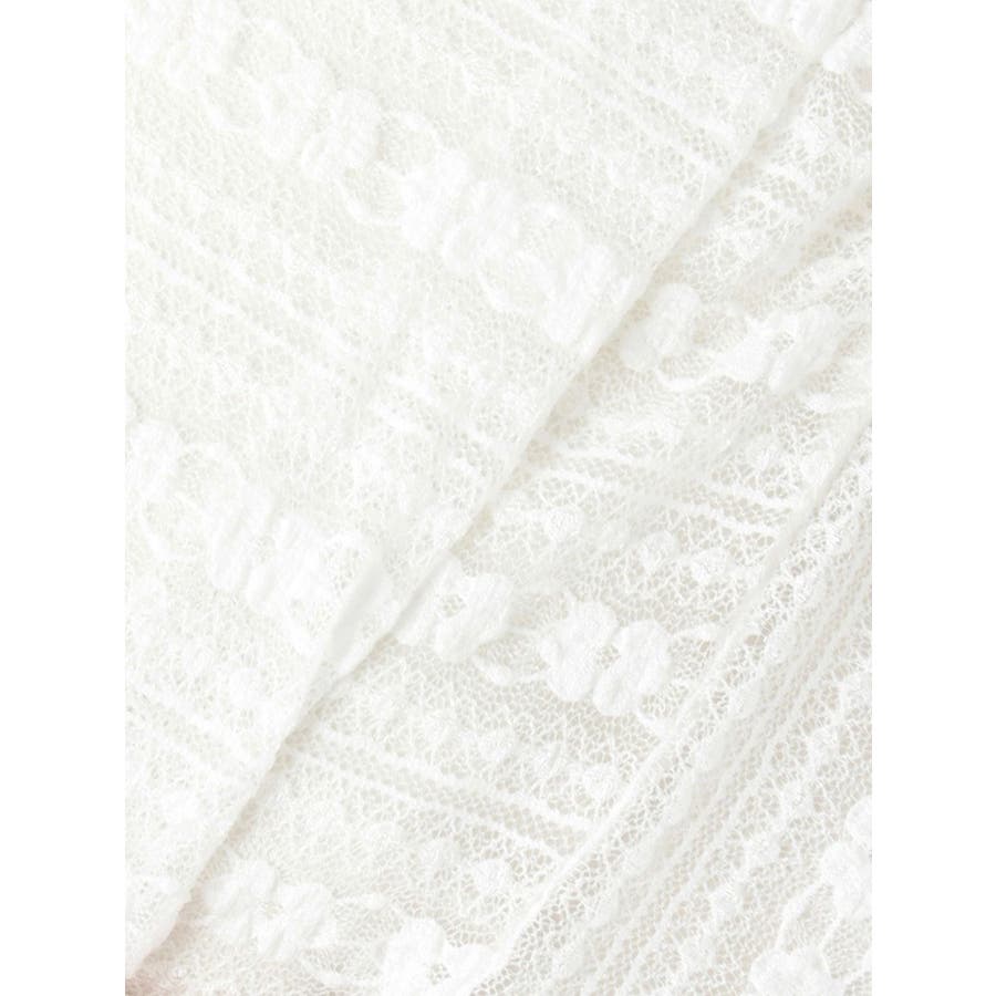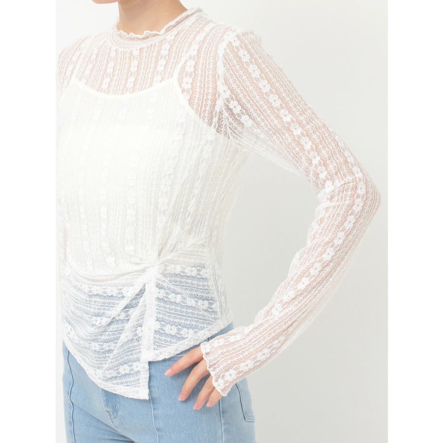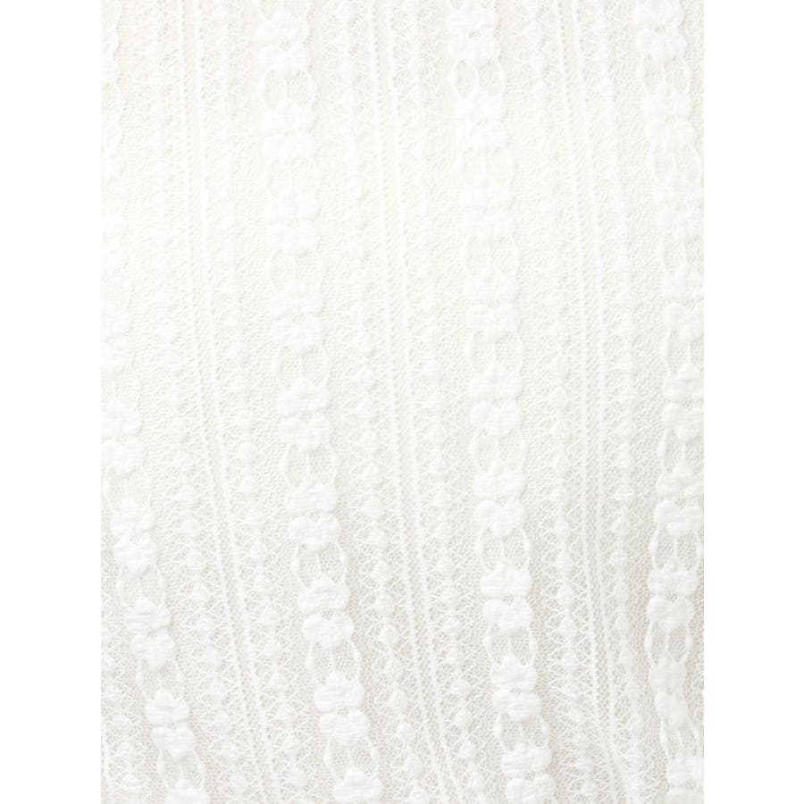 ストライプ状に柄が配置されたカットレースを使用したトップスです。端をメロー始末にすることで軽やかかつフェミニンな雰囲気に仕上げました。ウエスト切替部分がツイストしているので1枚で着る時もポイントになりつつ、ごろっとしないのでキャミワンピースのインナーとしてもおすすめです。 また、切替下はボーダー見えにしたのもさりげないこだわりです。スリットの入ったアシンメトリーな裾でスタイリッシュに!▼スタイリング インナーは無地のカップ付きベアトップがおすすめです。キャミワンピースのインナーとしてもお使いいただけます。※写真のキャミソールは付いていません。※実際にお届けする商品と仕様やサイズが異なる場合がございます。 また、生産の都合上、お届け時期が前後する場合がございます。※写真はすべてサンプルです。