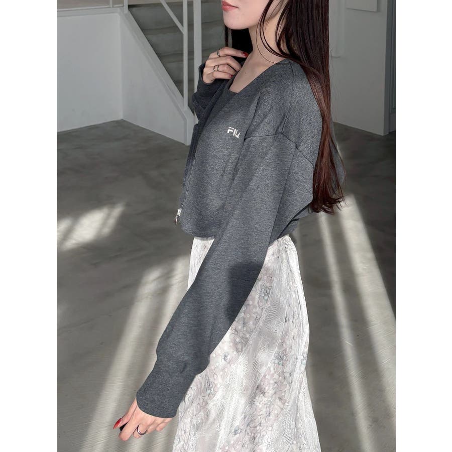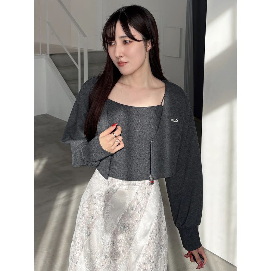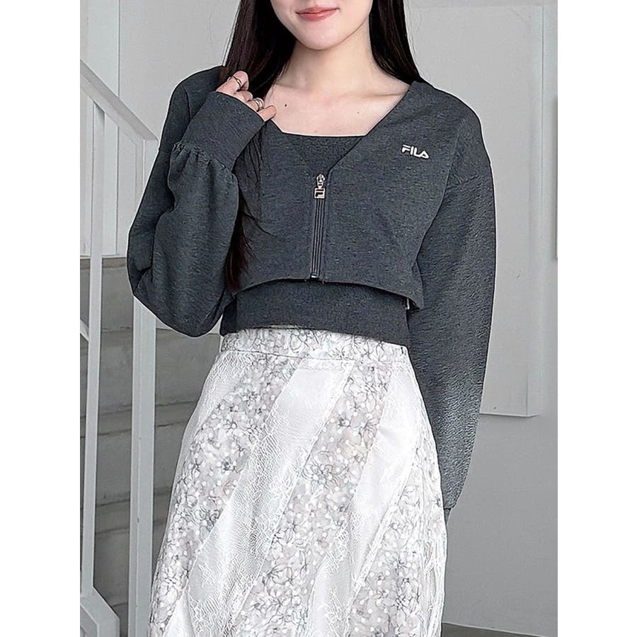 F: バスト[アウター]97[インナー]74cm/着丈[アウター]28.5cm/袖丈[アウター]52.5cm/肩幅[アウター]51.5cm/前下がり[インナー]調節可能cm/総丈[インナー]28cm/計量約422g