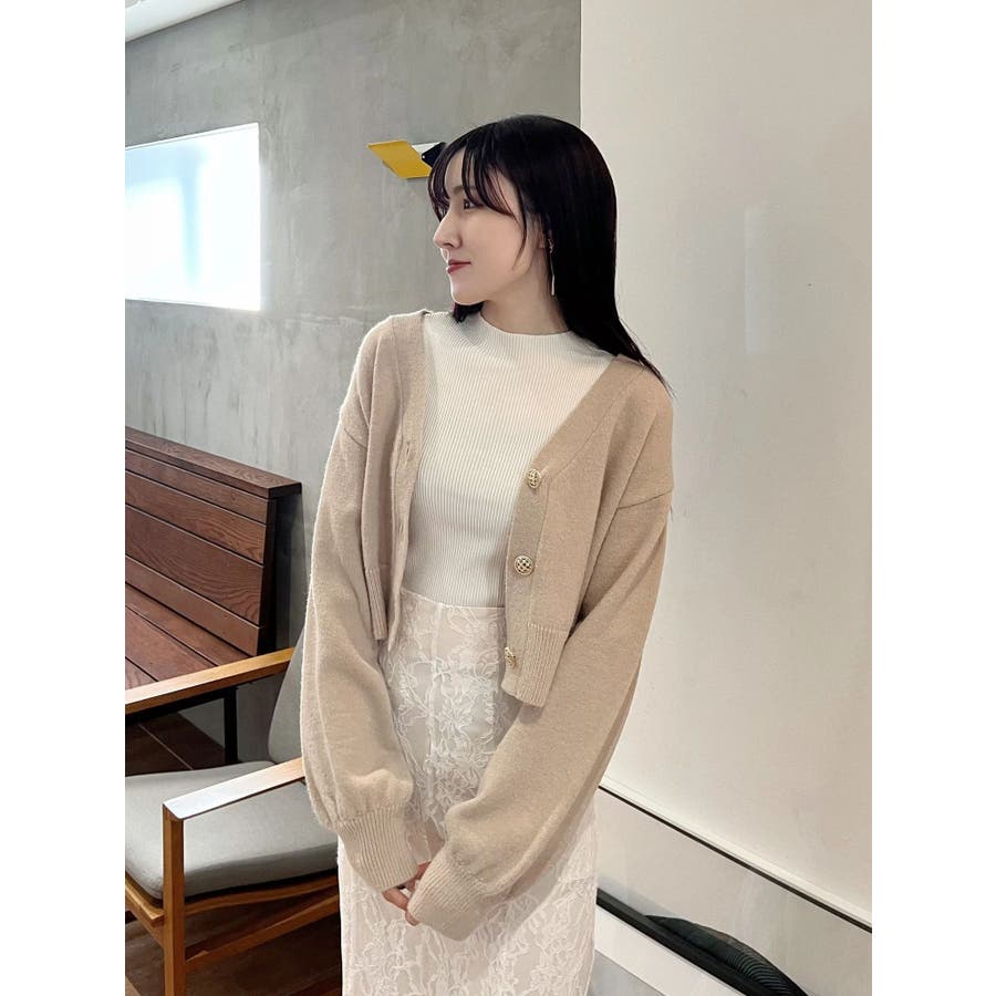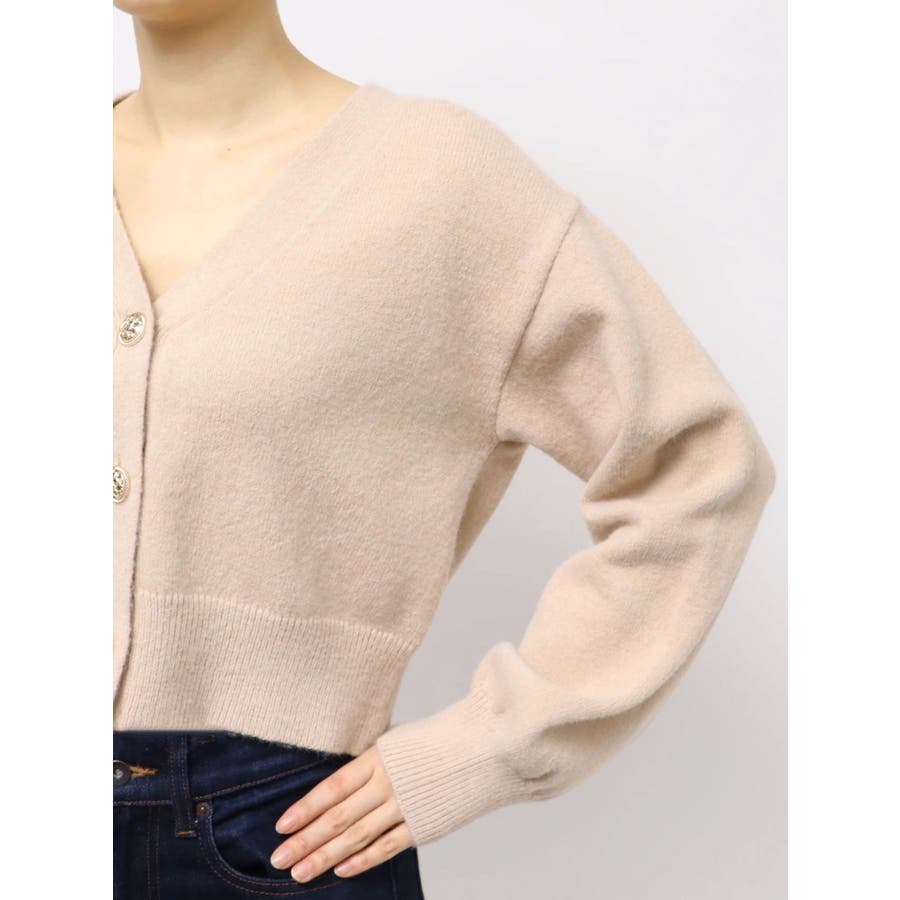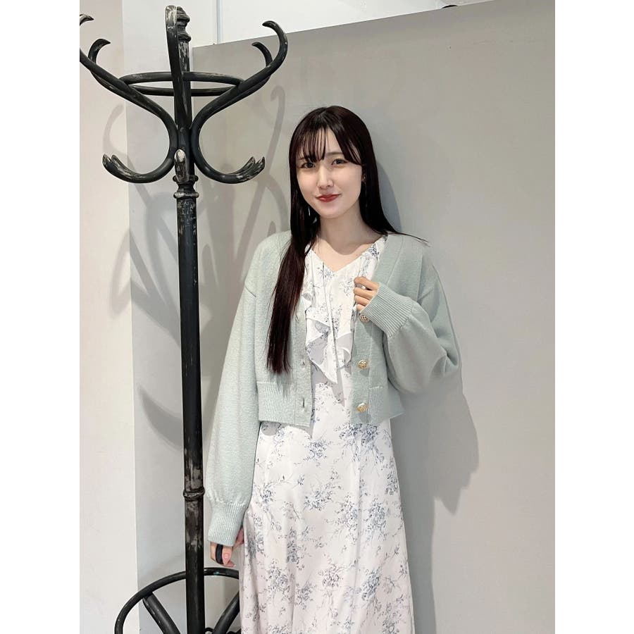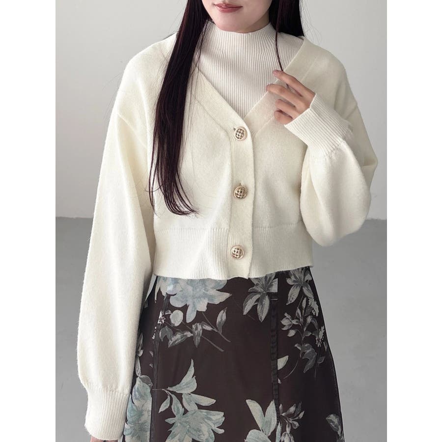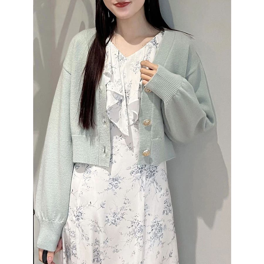 もちっと柔らかな質感が魅力の金ボタンカーディガン。 ほどよいボリュームスリーブと短め丈がスタイルアップ効果を叶え、繊細なゴールドボタンが上品なアクセントに。 羽織るだけで女性らしさを引き立ててくれる一枚です。 ▼スタイリング 花柄のボウタイワンピースに合わせると、フェミニンなムードがぐっと高まり、軽やかでクラシカルな印象に仕上がります。 前を開けてラフに羽織るのもおすすめです。 ※着用画像はフラッシュの加減で実際の製品と色味等が異なる場合がございますので、生地のズームアップ画像をご確認ください。※ご利用の端末画面の設定により実際の商品と色味が異なる場合がございます。【商品特徴】透け感:なし伸縮性:あり生地の厚さ:普通サイズ感:普通裏地:なしポケット:なし