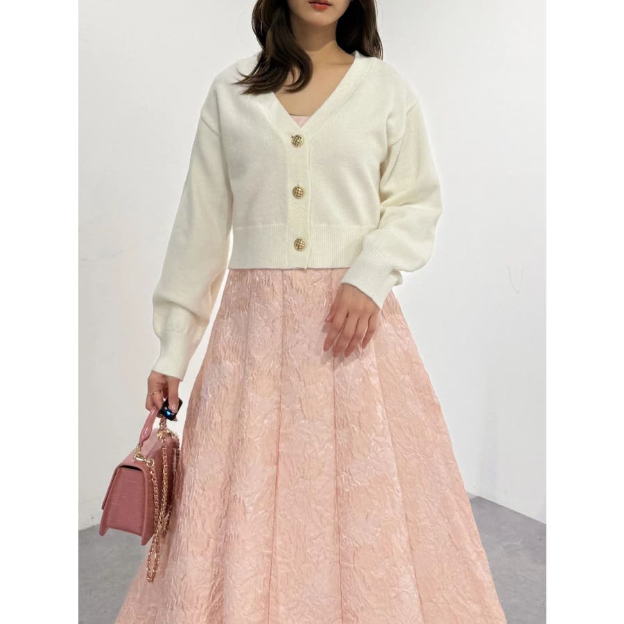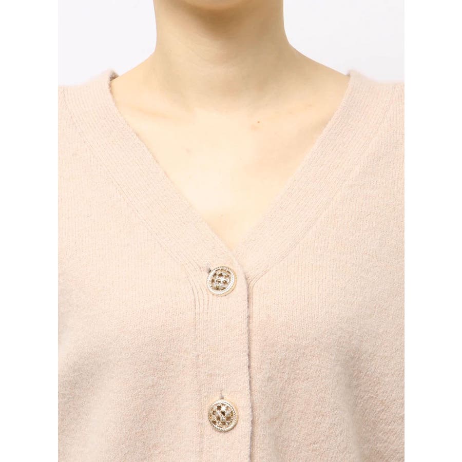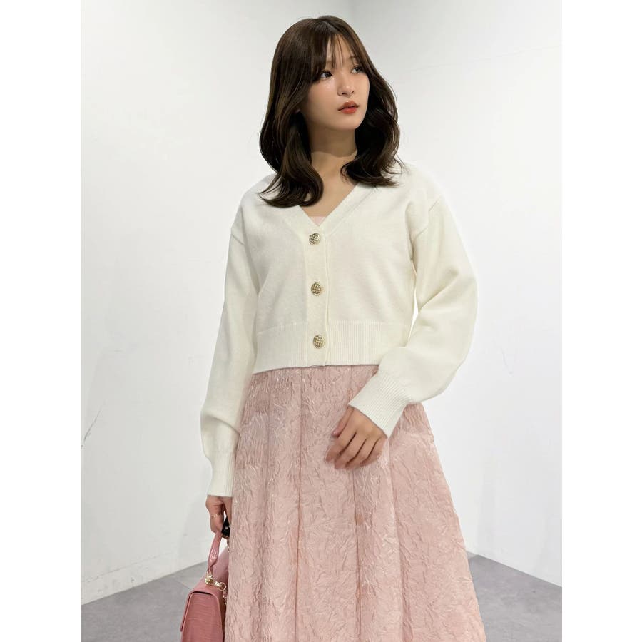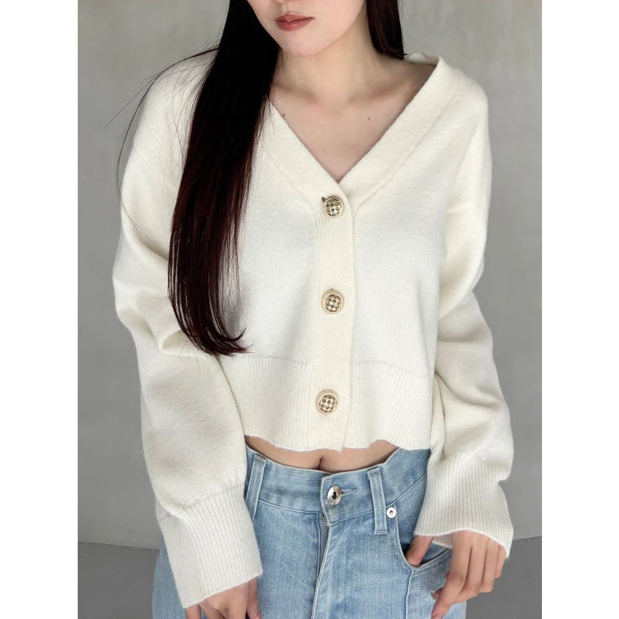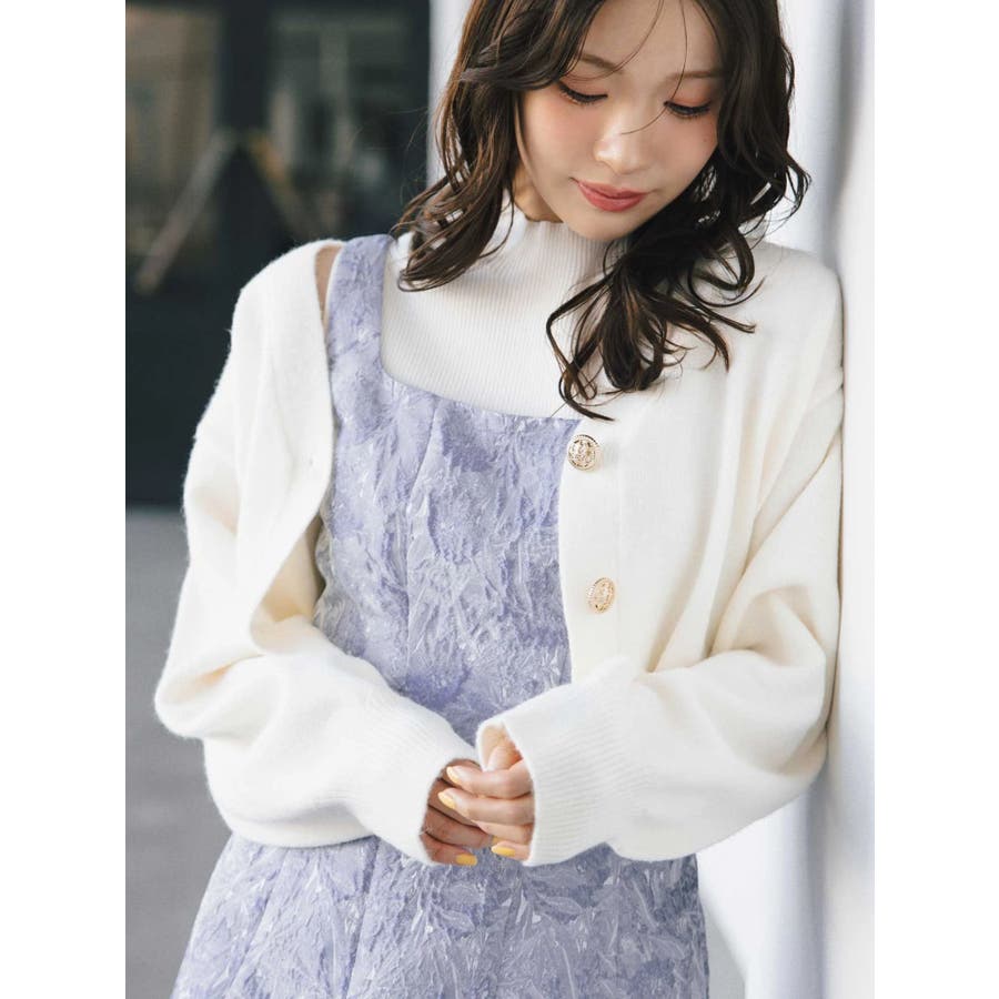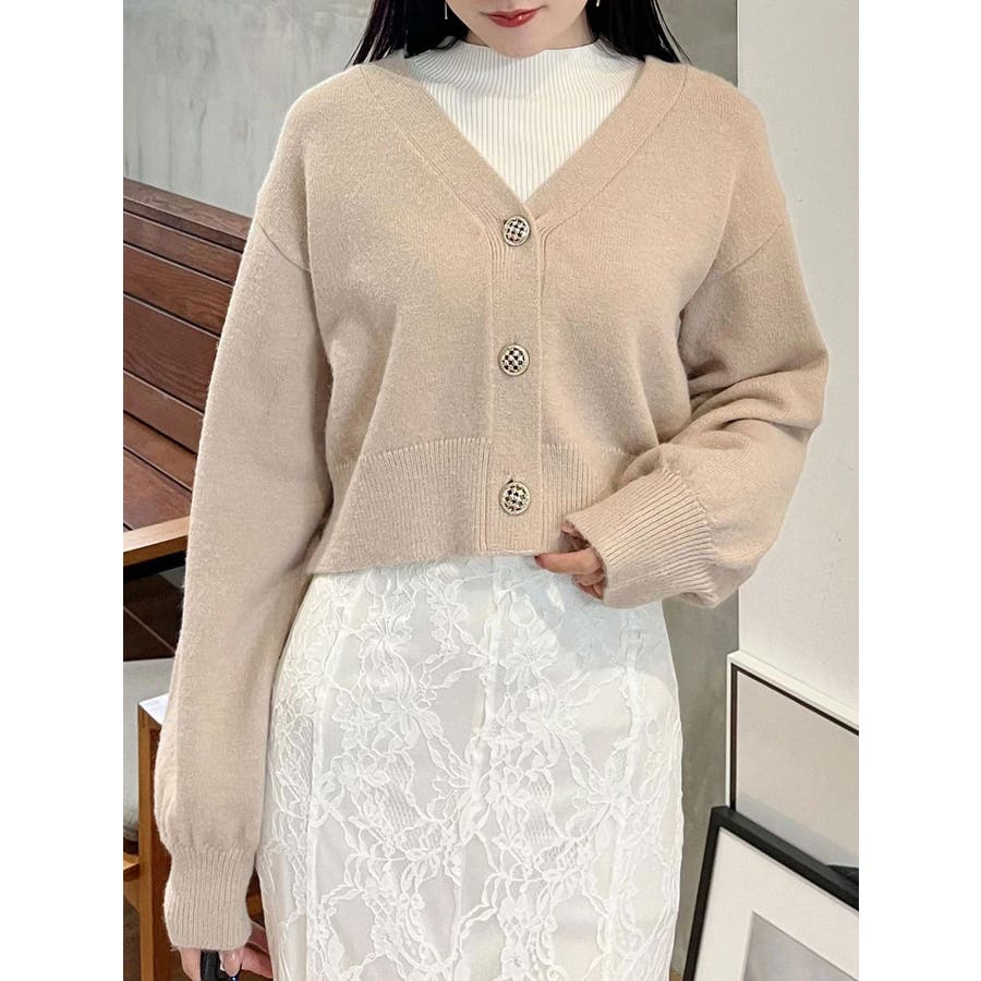 もちっと柔らかな質感が魅力の金ボタンカーディガン。 ほどよいボリュームスリーブと短め丈がスタイルアップ効果を叶え、繊細なゴールドボタンが上品なアクセントに。 羽織るだけで女性らしさを引き立ててくれる一枚です。 ▼スタイリング 花柄のボウタイワンピースに合わせると、フェミニンなムードがぐっと高まり、軽やかでクラシカルな印象に仕上がります。 前を開けてラフに羽織るのもおすすめです。 ※着用画像はフラッシュの加減で実際の製品と色味等が異なる場合がございますので、生地のズームアップ画像をご確認ください。※ご利用の端末画面の設定により実際の商品と色味が異なる場合がございます。【商品特徴】透け感:なし伸縮性:あり生地の厚さ:普通サイズ感:普通裏地:なしポケット:なし