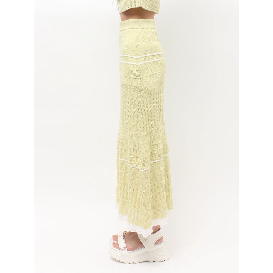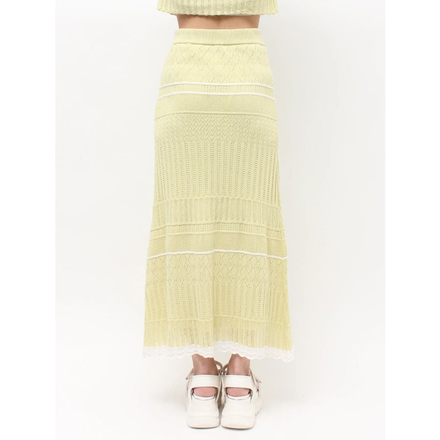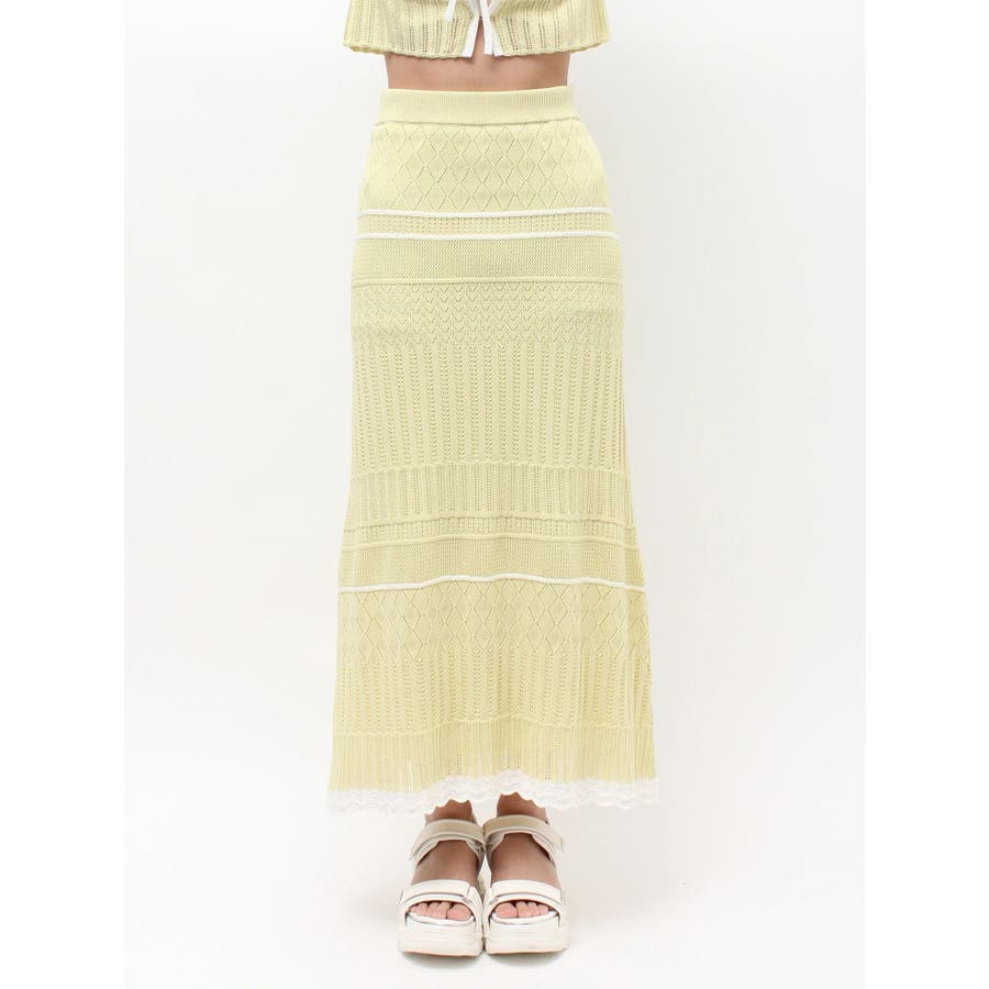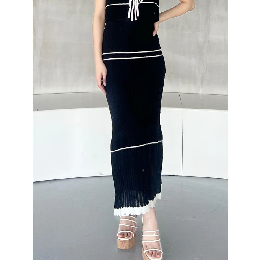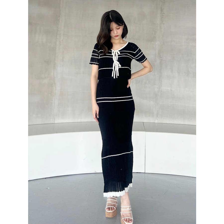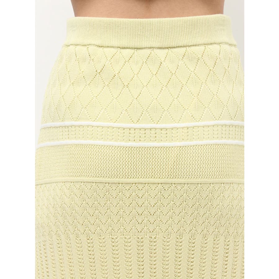 クロシェ風の透かし編みニットとスカートのセットアップ。軽やかな編み地がシーズンムードを高め、着るだけでコーデが決まる主役アイテムです。バイカラーラインとダブルリボンがアクセントになり、程よい甘さをプラス。トップスはカーデとしても着用でき、裾が開きすぎない隠しボタン付き。前後2way仕様で、フロントリボン・バックリボンどちらでも楽しめます。スカートはウエストぐるりゴム+裏地付きで、安心感とラクな着心地も魅力。▼スタイリング セット着用はもちろん、トップスはデニムでカジュアルに、スカートはTシャツ合わせで大人カジュアルにも◎ 足元は華奢なサンダルで抜け感を出すのがおすすめ。※ニットの特性上、着用を続けるうちに必ず伸びてきます。畳んだ状態で保管して下さい。また、伸びることを考慮して、少し短めの丈で仕上げています。※画像は全てサンプルです。