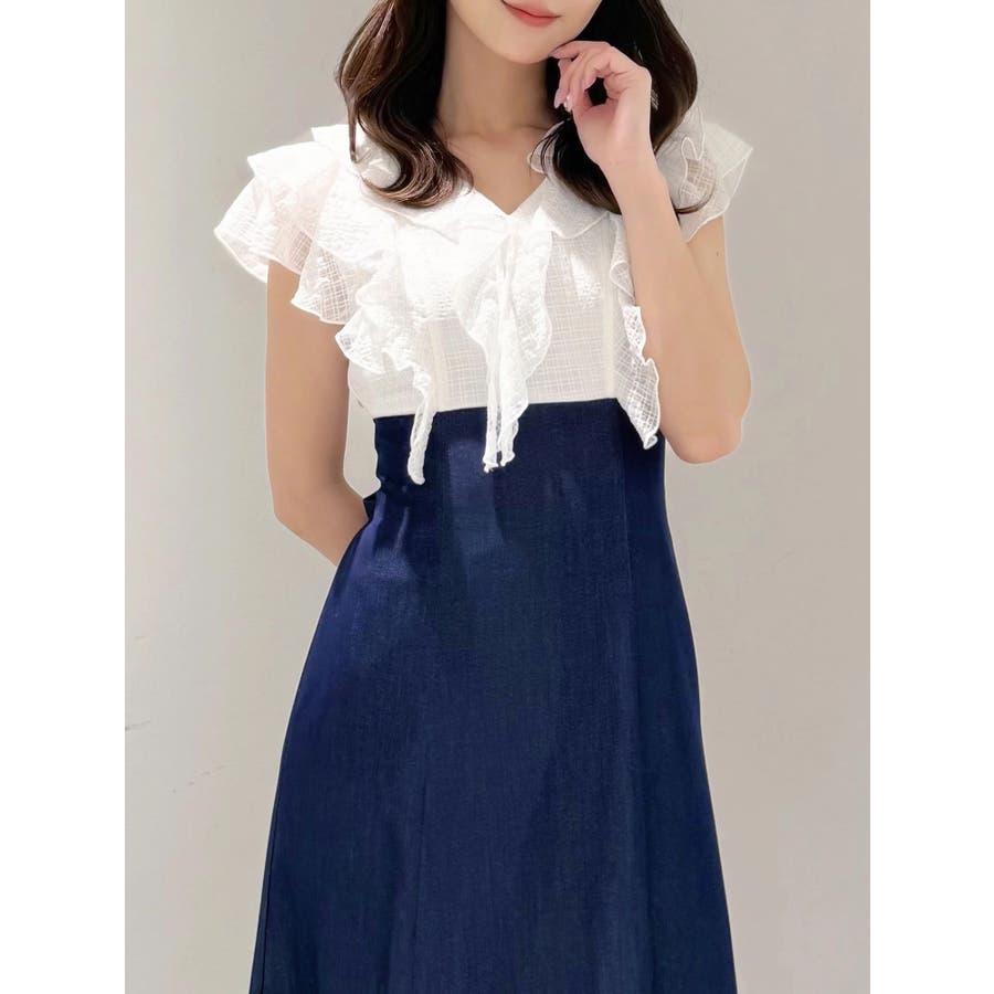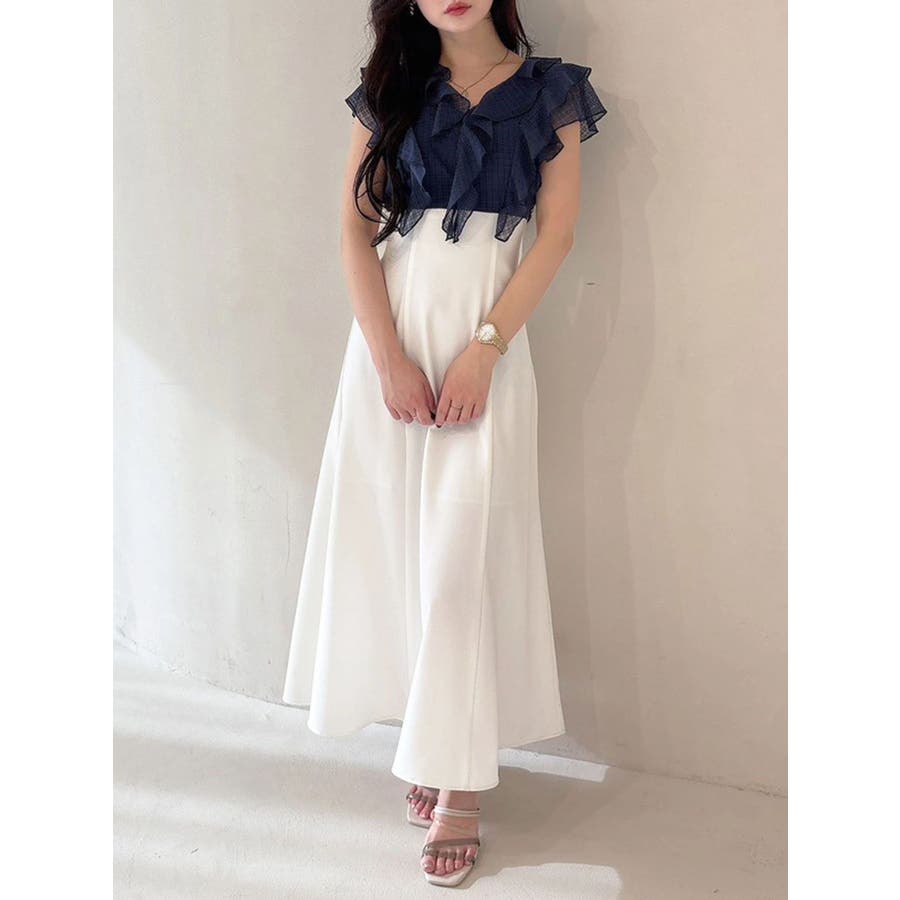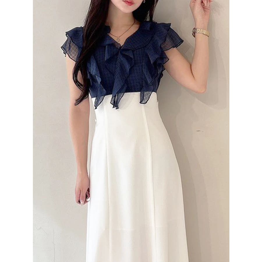 2WAYラッフルブラウスドッキングワンピース