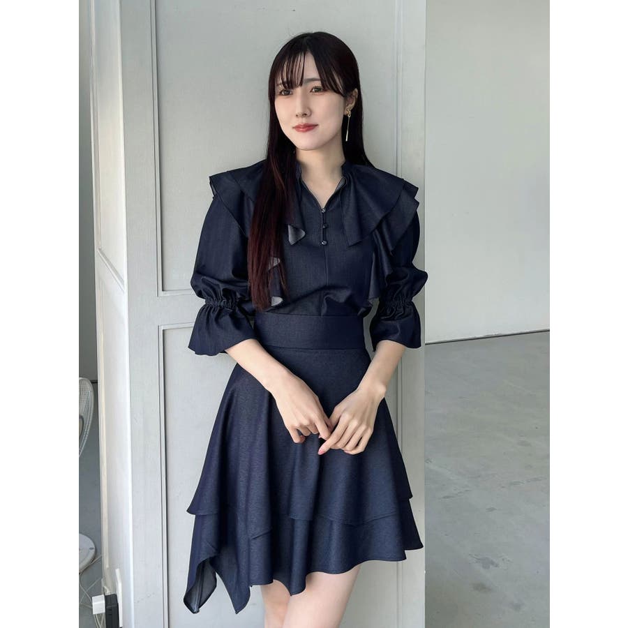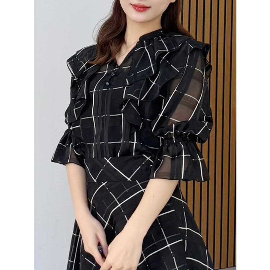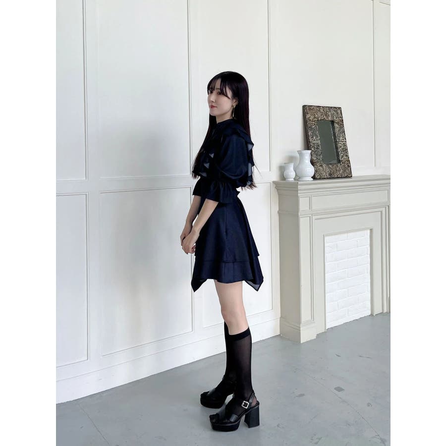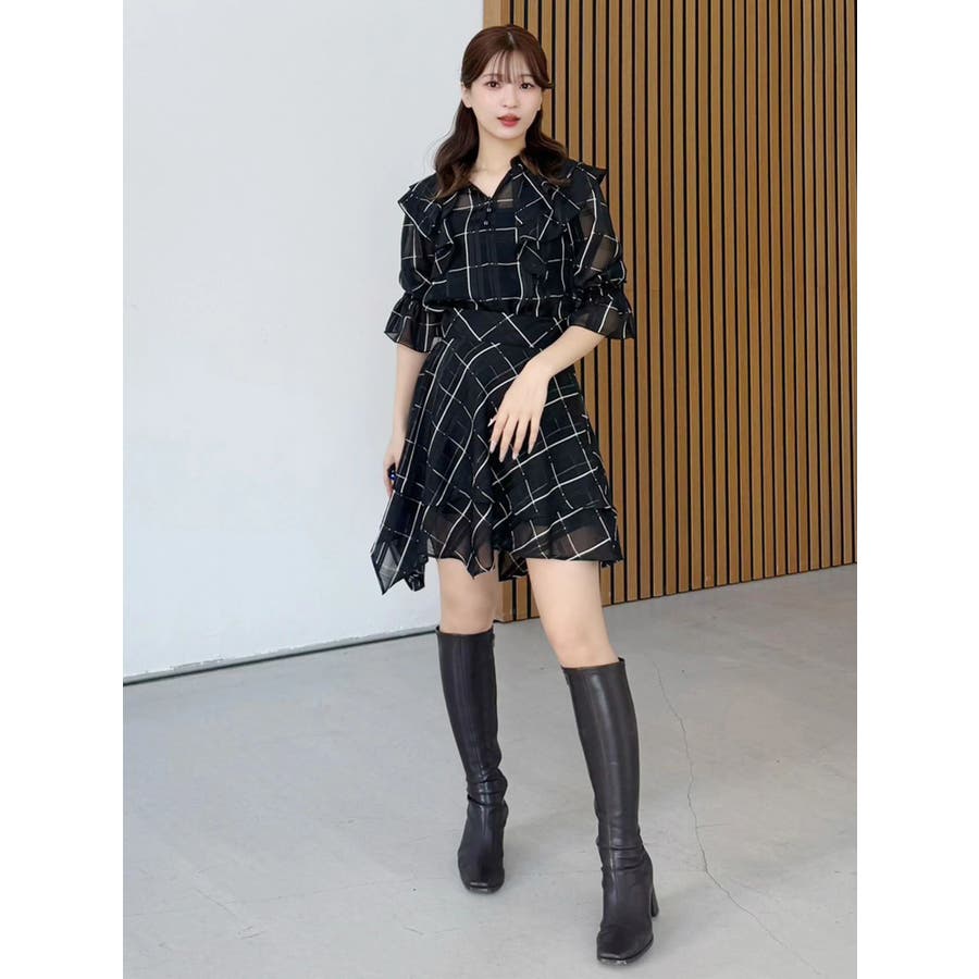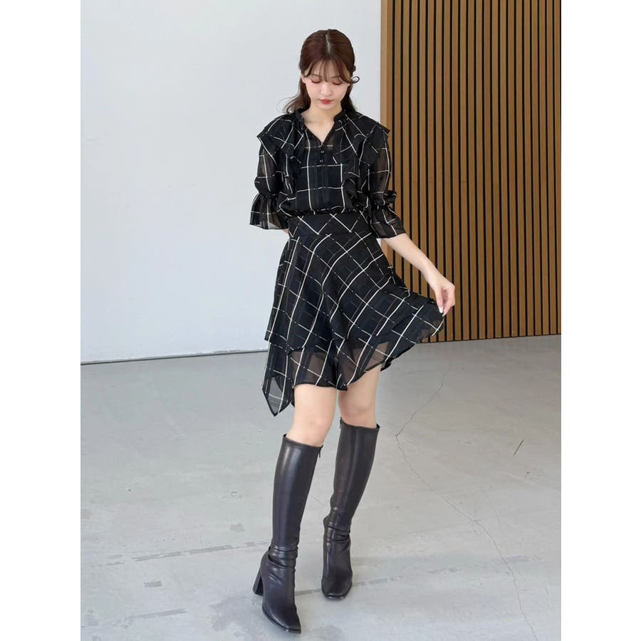 デコルテ周りのラッフルが春のコーディネートを格上げしてくれるブラウス。袖口はキャンディースリーブでゴムが入っており、上げて留めることができるので気温変化にも対応できます。 カラーによって素材を変えており、ブラックはシアーチェック、アイスはシャツ地のストライプ、インディゴはシャンブレーデニムです。 ▼スタイリング セットアップ着用可能なラッフルミニスカパンと合わせて、ミニワンピース見えコーデがおすすめ。 インディゴは、ストレッチマーメイドスカートのインディゴと合わせればロングワンピース見えにも。 足元はロングブーツやメッシュブーツで春の気分を高めたスタイリングに◎セットアップ以外にも、スカートやパンツとの合わせは抜群です ※着用画像は全てサンプルです。 ※ブラックのみインナーキャミが付きます。※セットアップ着用可のスカートは、アイスブルーのお作りがございません。