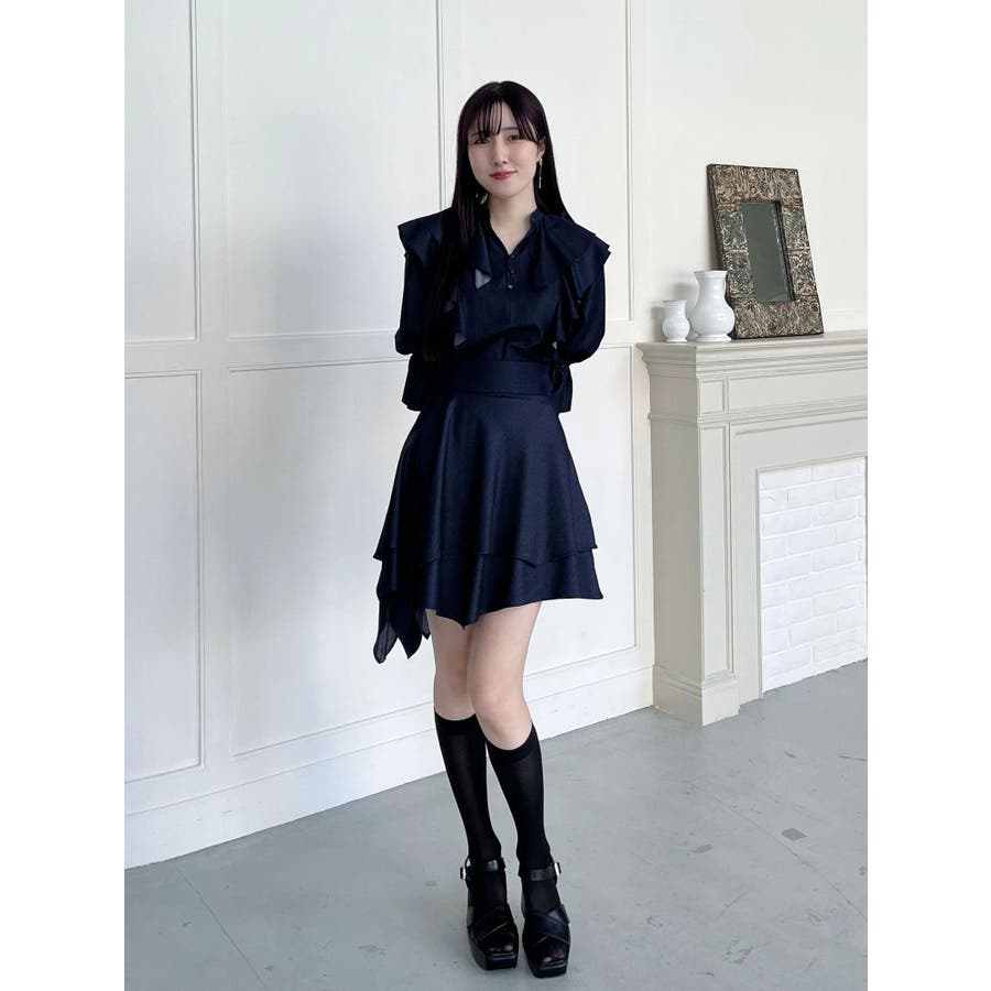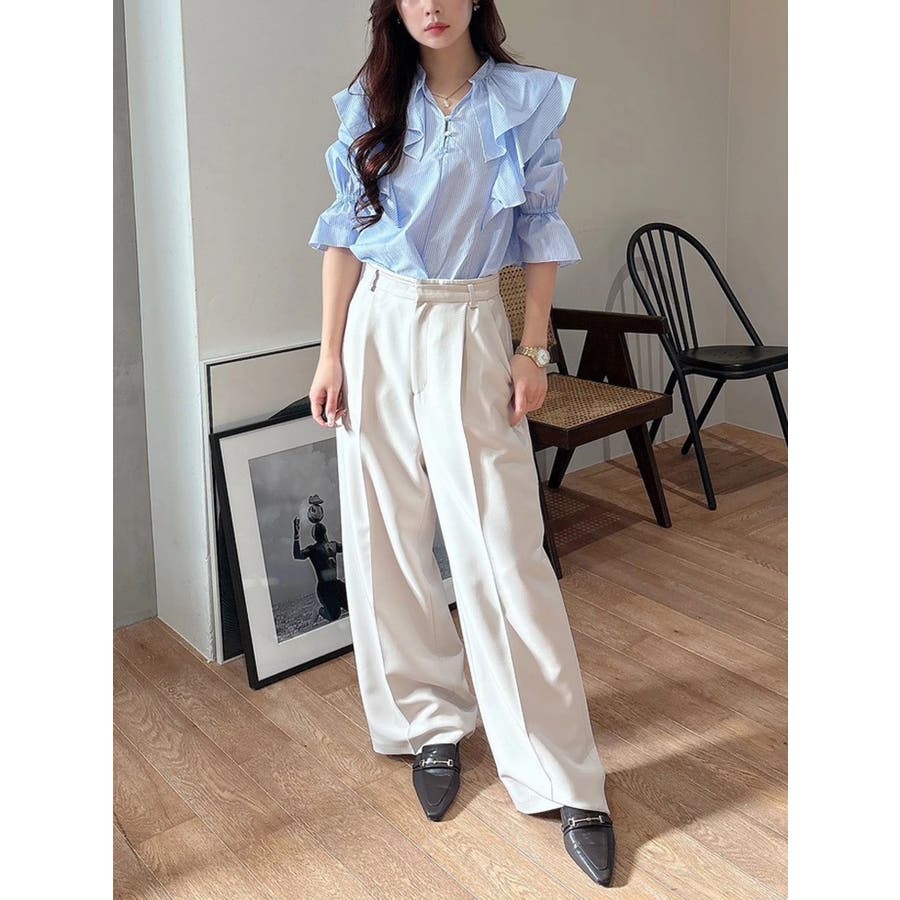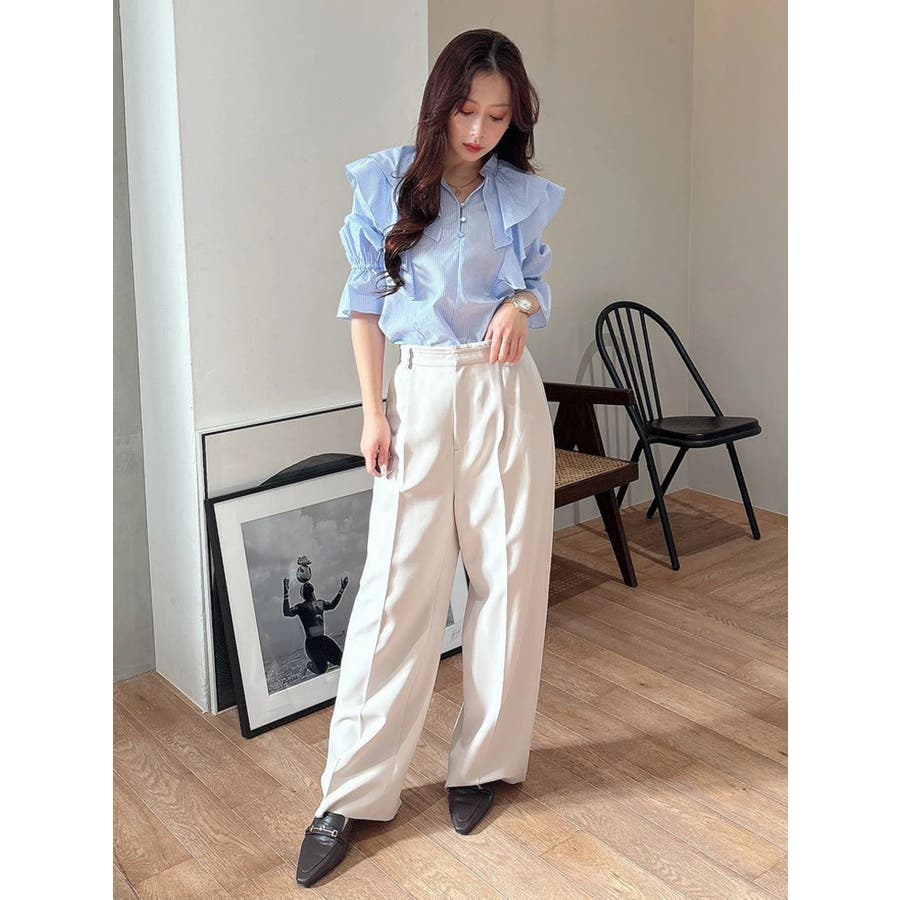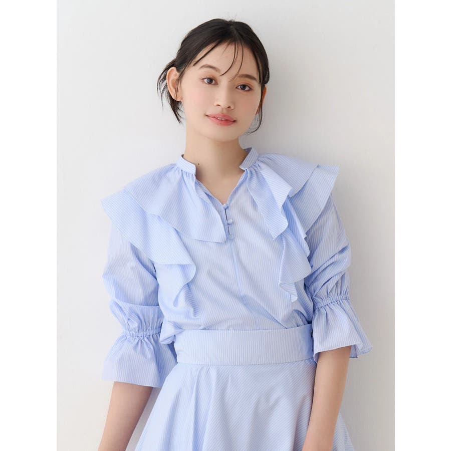 【セットアップ着用可】ラッフルシャツブラウス