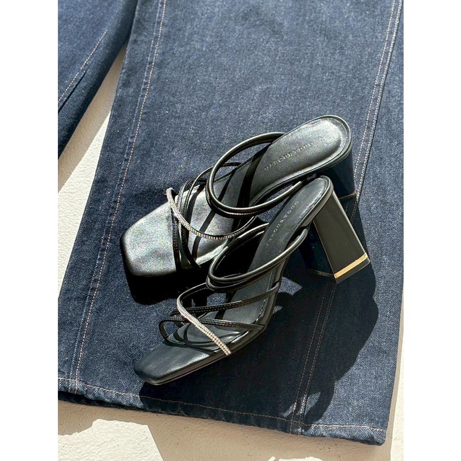 繊細な細ストラップに贅沢なビジューを走らせた、ジュエリー感覚で履ける華やかな一足。スクエアトゥのシャープさとチャンキーヒールの安定感を兼ね備え、デイリーからお呼ばれまで幅広く活躍します。ミニワンピースに合わせてレディに仕上げるのはもちろん、デニムスタイルのハズしとしても◎。初夏の陽射しに映えるビジューが、歩くたびに足元を華やかに彩ります。※画像はすべてサンプルです。