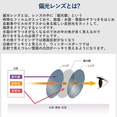 偏光レンズとは、レンズの中に「偏光膜」という特殊なフィルムが入っており、