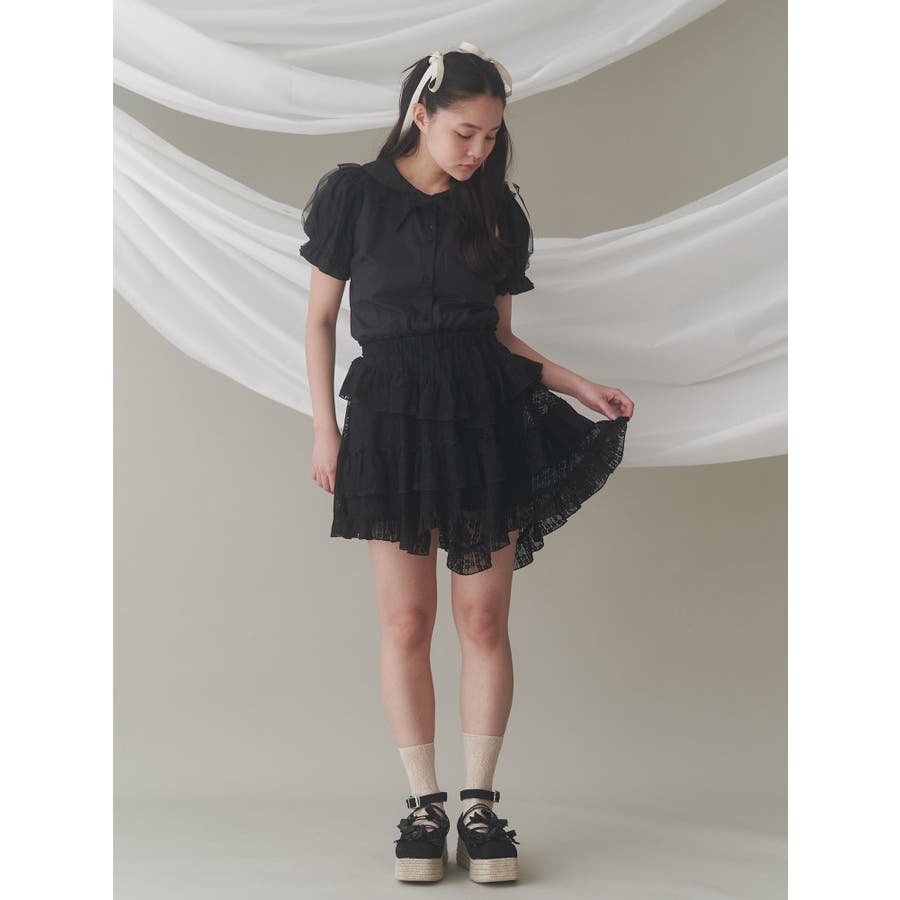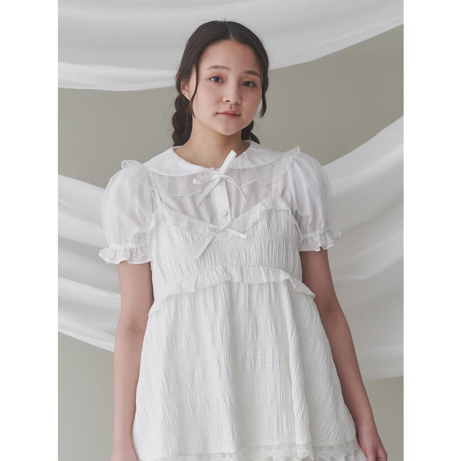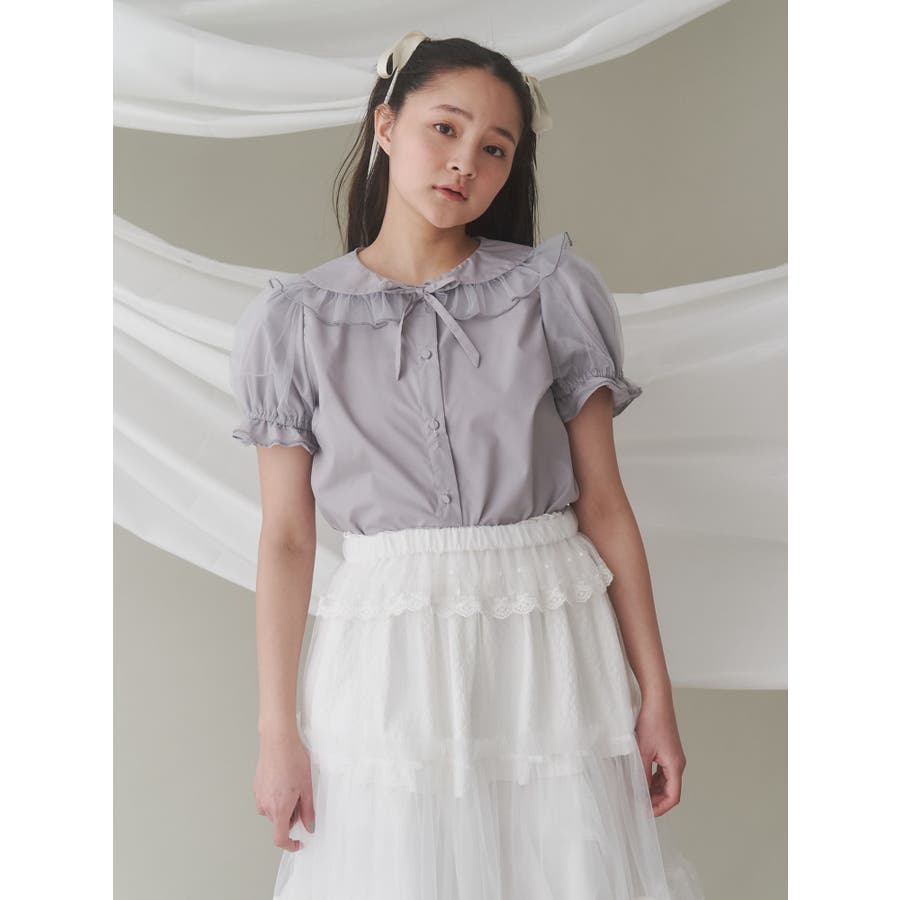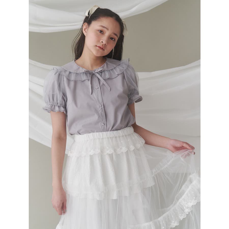 チュールパフブラウス