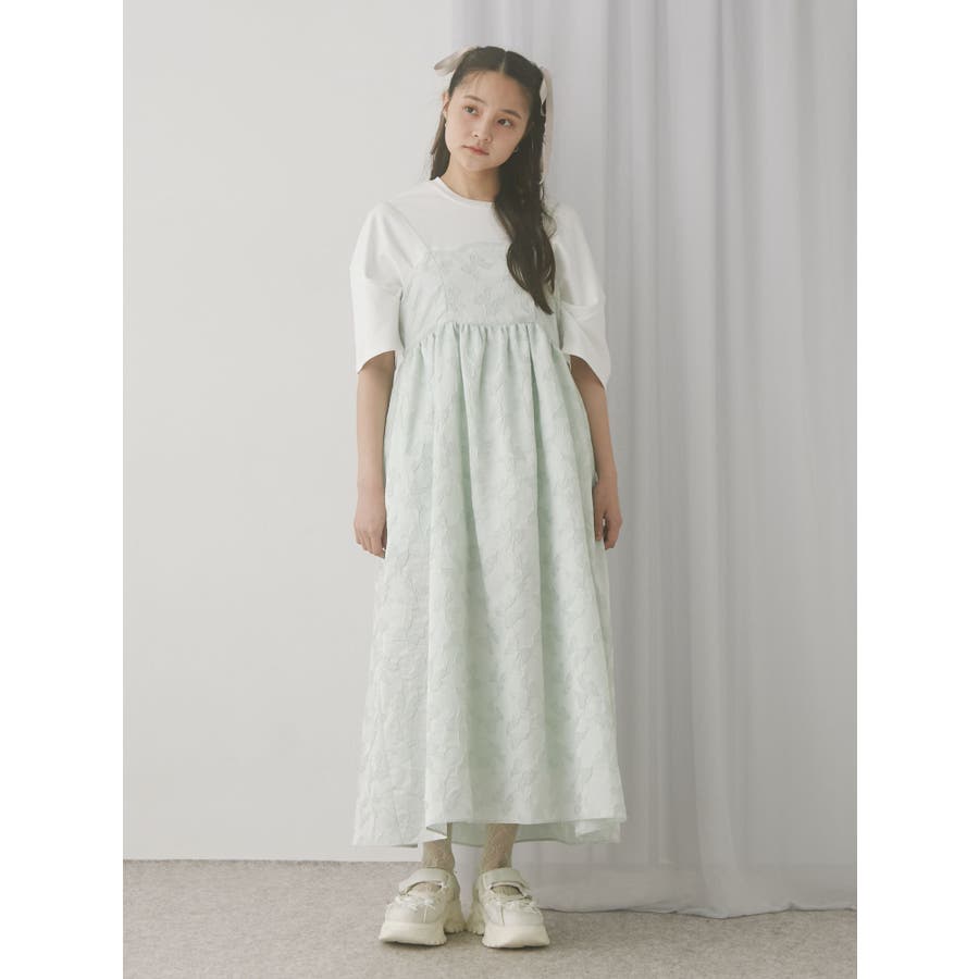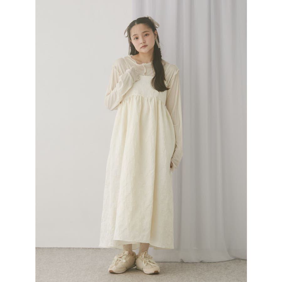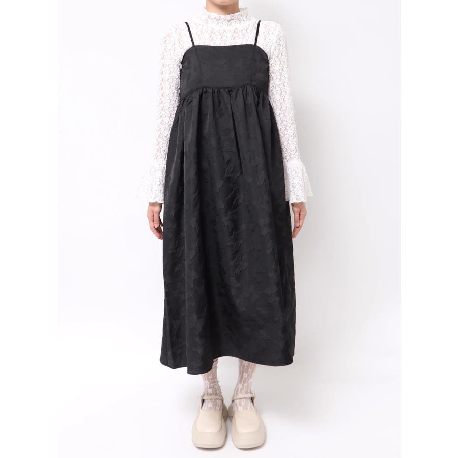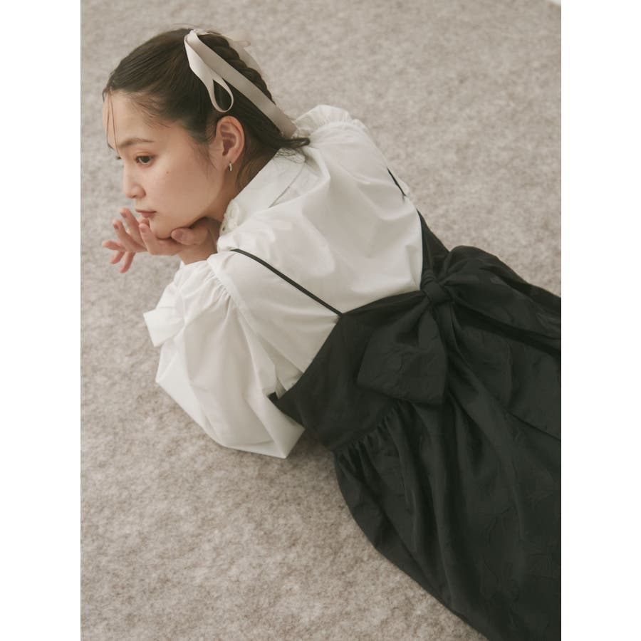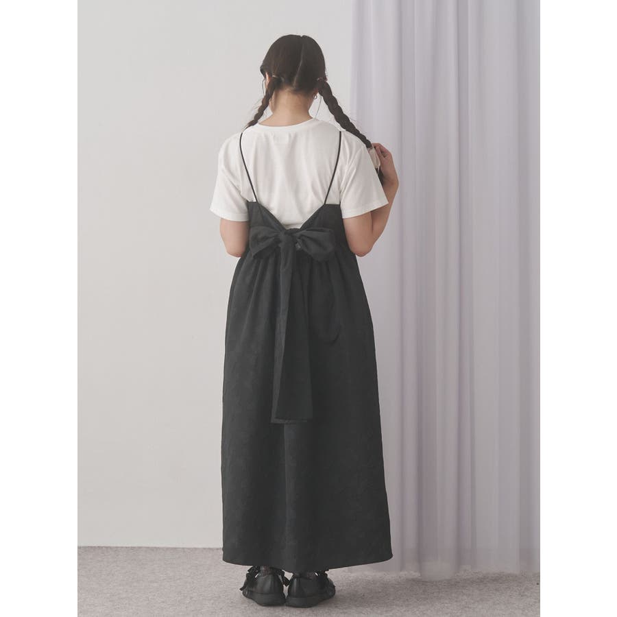 バックリボンジャガードキャミワンピース