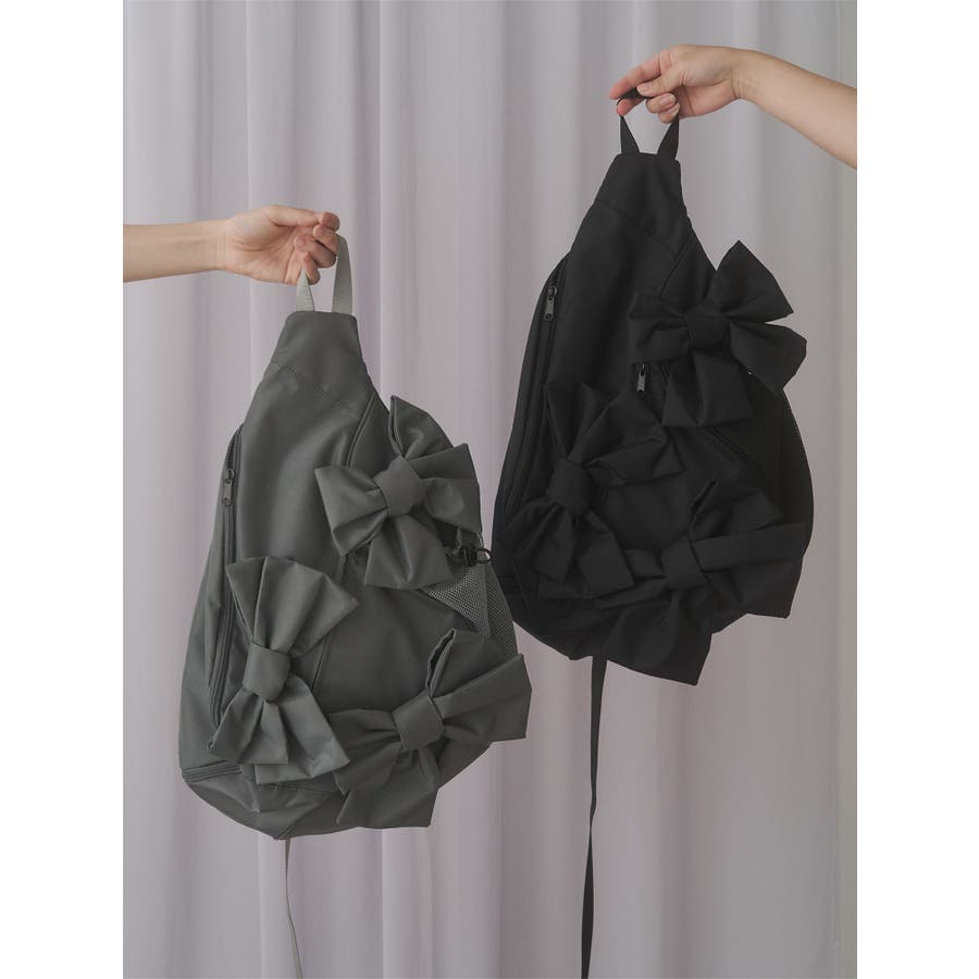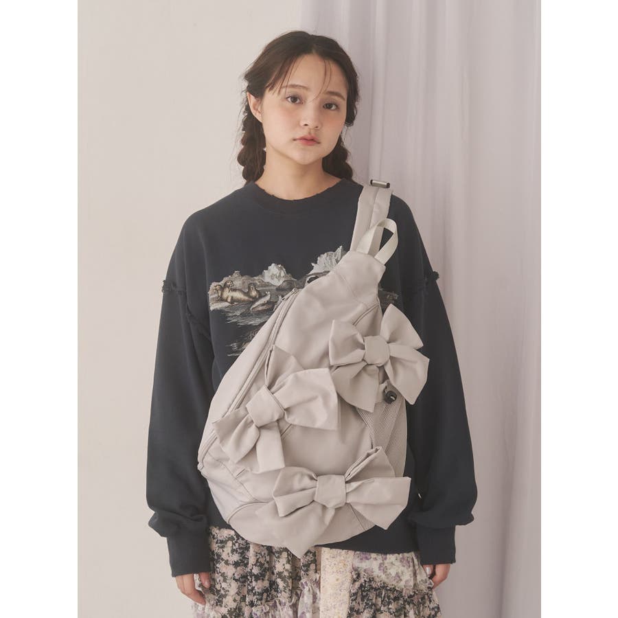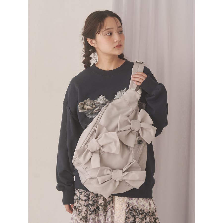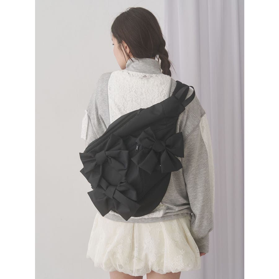\ 人気No.1バッグ!!! /スポーティーなスリングバッグも大きなリボンでガーリーに?お出かけにも、学校にも、ライブにも大活躍の予感・・・!■デザイン 大小さまざまなリボンをあしらった、大容量のスリングバッグ。 フロント部分のリボンは、アクセサリーのようにスタイリングのポイントになります。 バックパックとはまた違った、新鮮な雰囲気をプラスできるアイテムです。 ■サイズ感 荷物が多い日でも安心の大きめサイズです。 内ポケットやメッシュポケットもついていて、 機能性もばっちりな一点です。 ■スタイリング いつものスタイリングにさっと背負ってお出かけしていただけるアイテムです。 スポーティでトレンド感のある雰囲気をプラスすることができます!【商品のお気に入り登録】ハートをクリック! 完売カラーの再入荷や、ラスト1点の通知、セールの際の通知も受け取ることができます。
